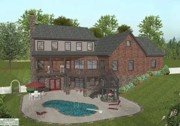 Outdoor living is enjoyed to the fullest with front and back porches and a roomy deck. We have featured a small pool in our rendering to help you plan your recreational space.