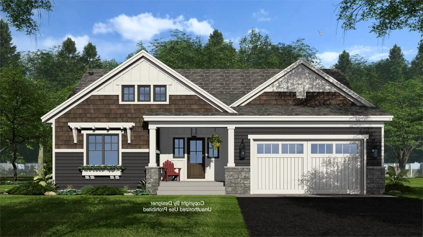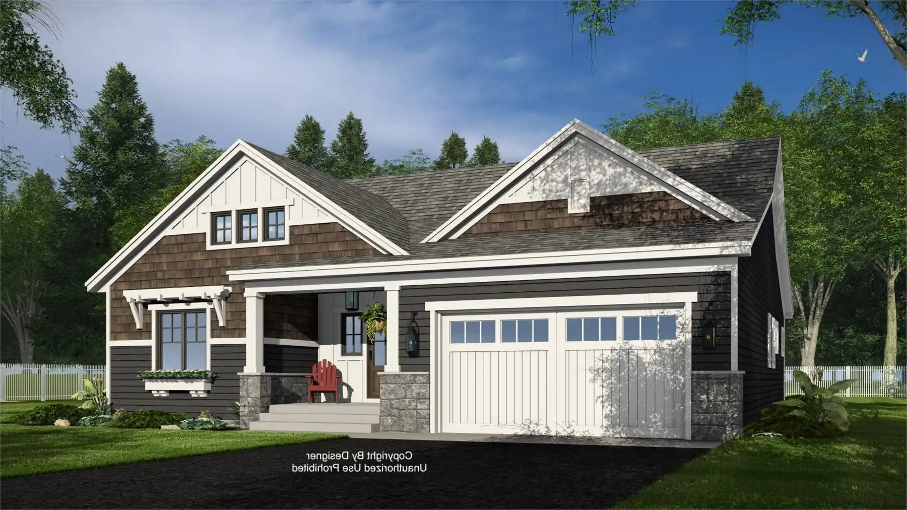House Plan 10332 delivers Craftsman style in a one-level layout families will love. It offers three bedrooms, two-and-a-half bathrooms, and a two-car garage, making it a wonderful choice for a neighborhood, too. The open living areas make a wonderful gathering place with an island kitchen and a cozy great room with a fireplace. The powder room is nearby for convenience. The bedrooms are found on the other side of the house, with the primary suite in back and the secondary bedrooms with their hall bath off the foyer.