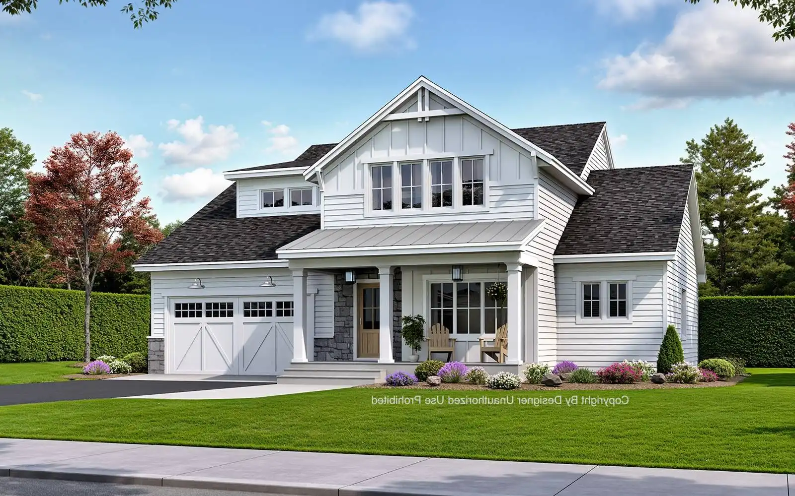 House Plan 10335 is a 2,768 sq. ft. modern farmhouse that blends classic charm with contemporary convenience. This two-story home features 4 spacious bedrooms and 3.5 bathrooms, including a Jack and Jill bathroom on the upper level for added functionality. The open-concept main floor seamlessly connects the great room, dining area, and kitchen, where a large island and walk-in pantry provide ample space for cooking and gathering. The primary suite, located on the main level, offers a private bath and generous walk-in closet, creating a relaxing retreat. Upstairs, a versatile loft adds extra living space, while a home office, mudroom, and laundry area enhance everyday practicality. With covered front and rear porches, House Plan 10335 is designed for both indoor comfort and outdoor enjoyment, making it a perfect fit for families who love open and inviting spaces.