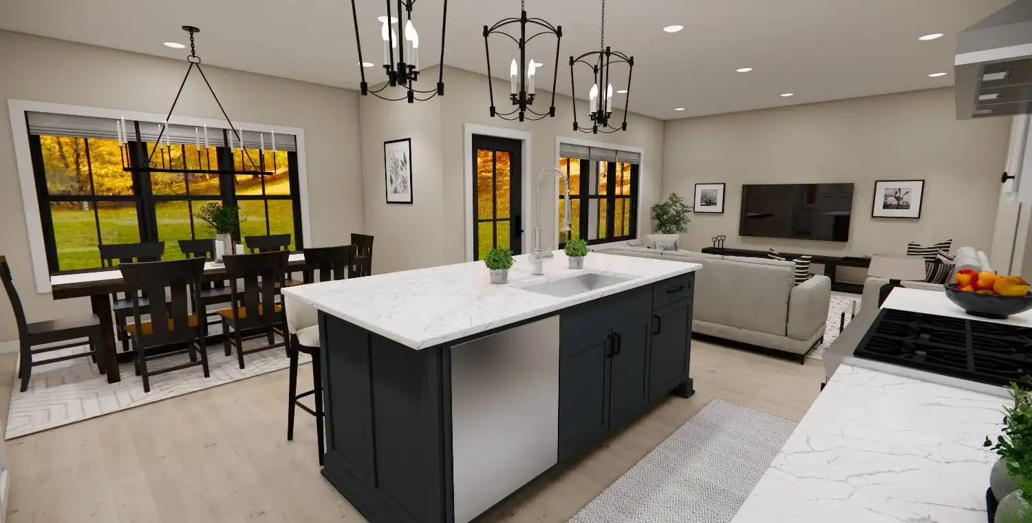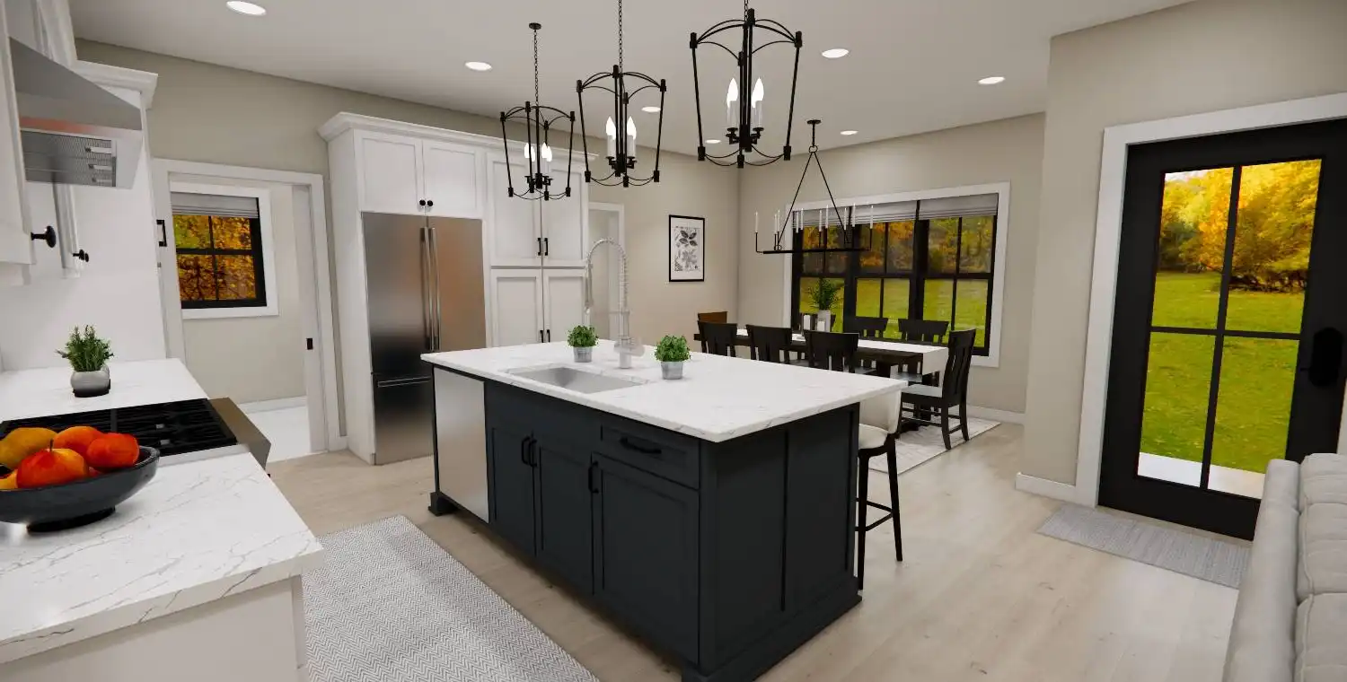 House Plan 10336 is a 2,768 sq. ft. two-story bungalow designed for modern living with a touch of classic charm. This spacious home includes 4 bedrooms and 3.5 bathrooms, offering a well-balanced layout for both privacy and connection. The main-level primary suite is a peaceful retreat, complete with a spa-like bath and generous walk-in closet. The open-concept great room, dining area, and kitchen create a seamless flow, featuring a large island and walk-in pantry—perfect for gathering with family and friends. A dedicated home office, mudroom, and welcoming front porch add both convenience and character. Upstairs, a flexible loft space joins three additional bedrooms and two full bathrooms, including a Jack and Jill bath. A covered rear porch and a 2-car garage complete the design, making House Plan 10336 a perfect choice for families looking for style, comfort, and functionality in one beautifully crafted home.