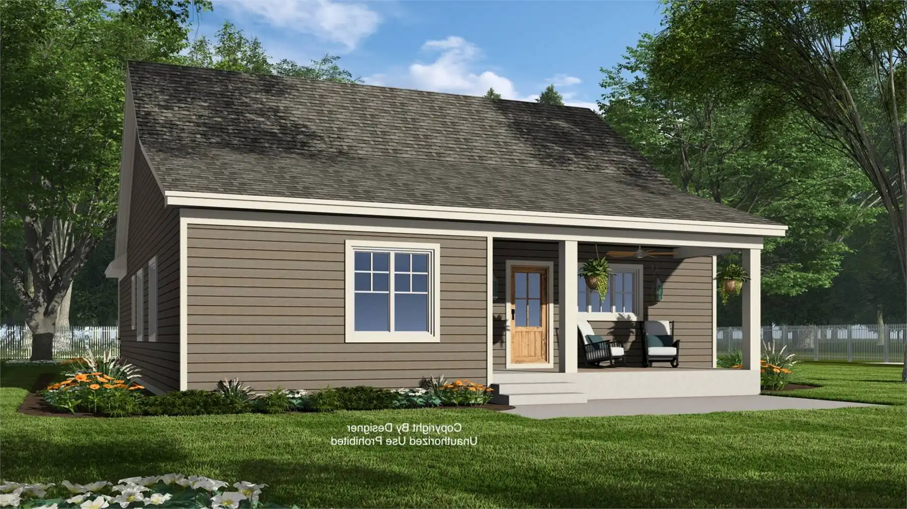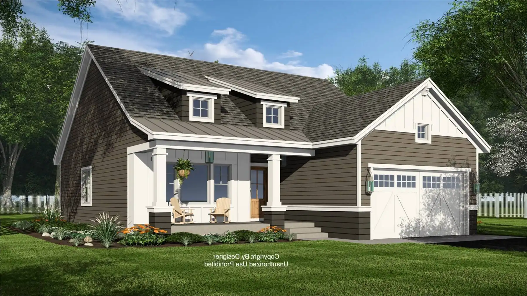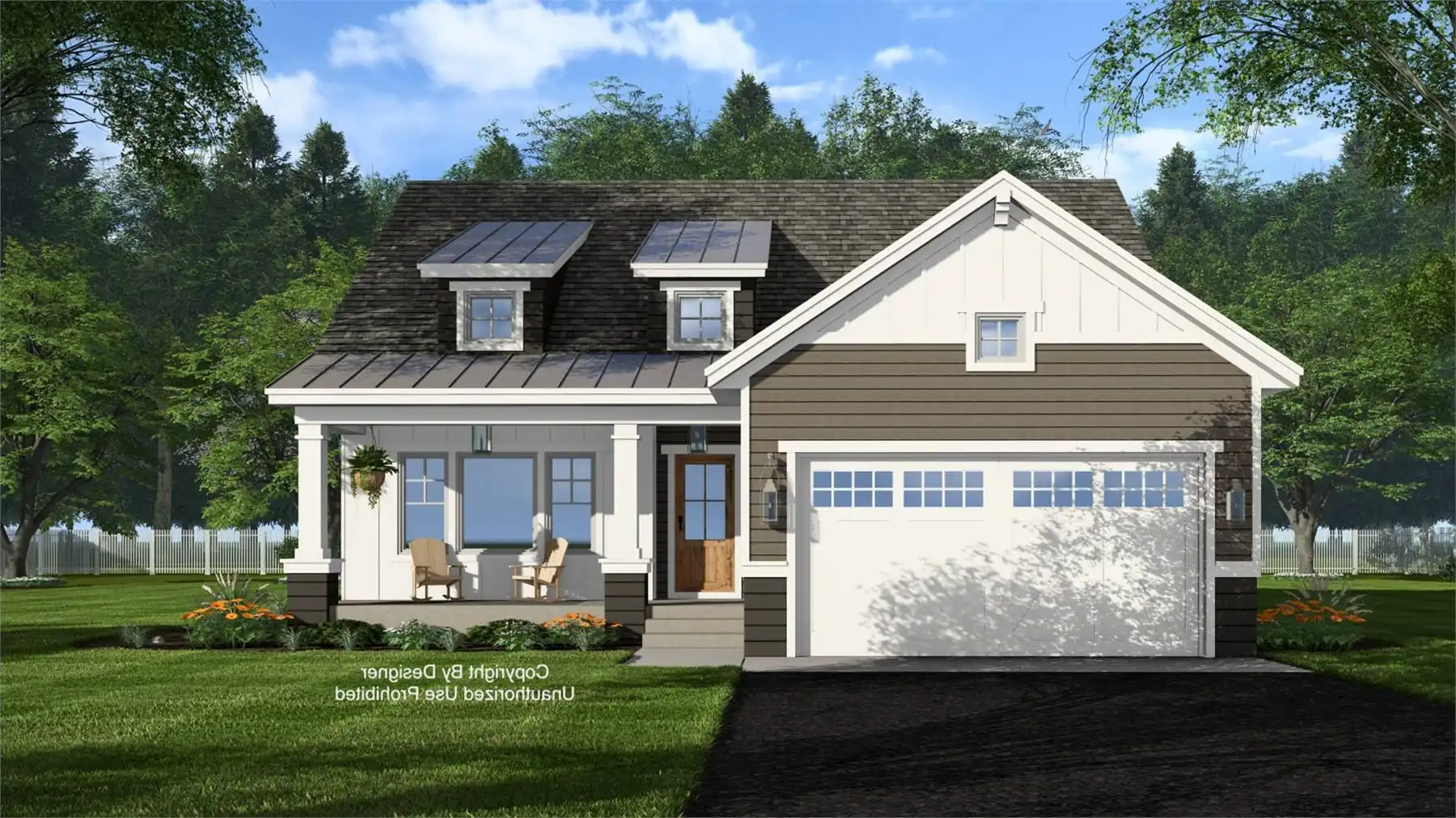 With its modest size and great curb appeal, House Plan 10349 makes an amazing home for families and neighborhood living! It offers 1,568 square feet on one story, complete with three bedrooms and two bathrooms in a split arrangement. You'll find the primary suite in the front hallway that also includes the mudroom coming in from the garage while the other bedrooms and a bathroom are in the back hallway. Totally open-concept living anchored by an island kitchen in back fills out the other side of the house!