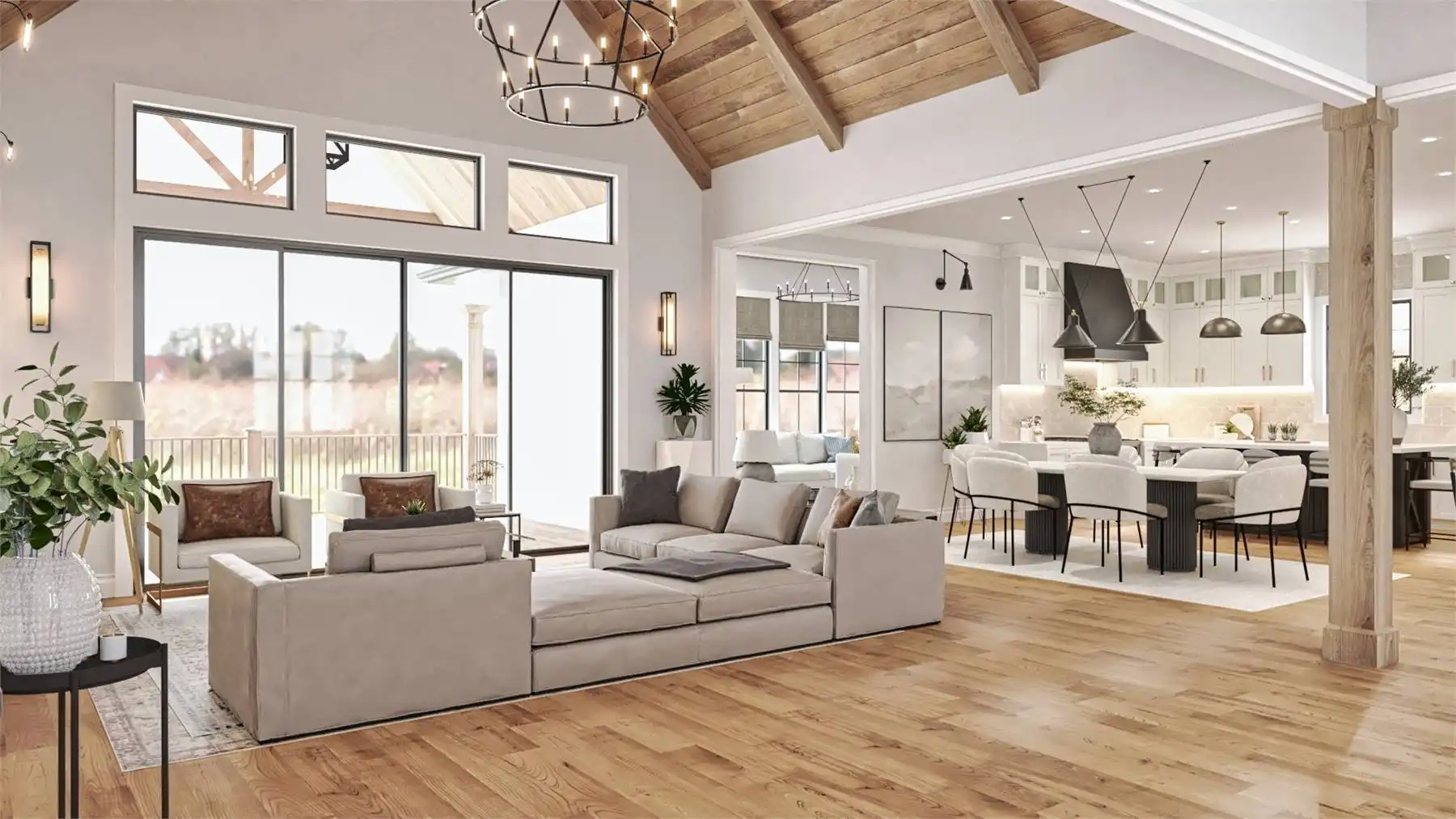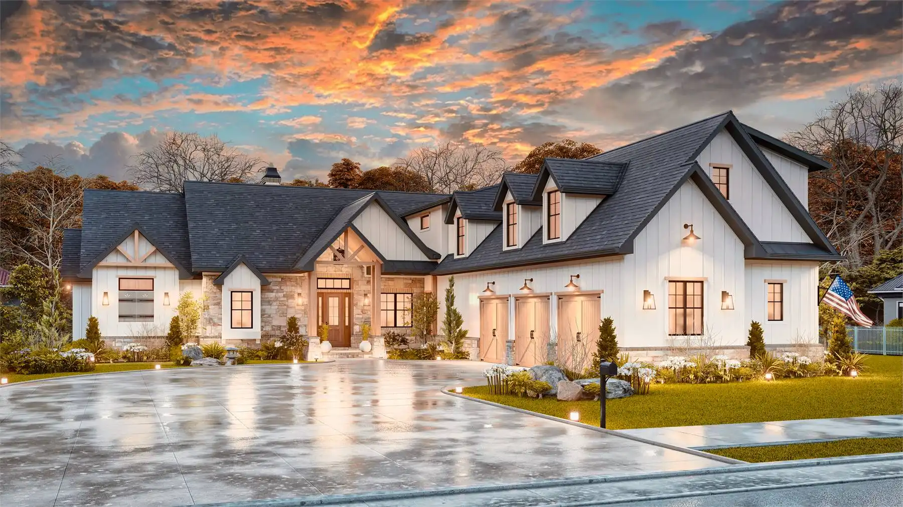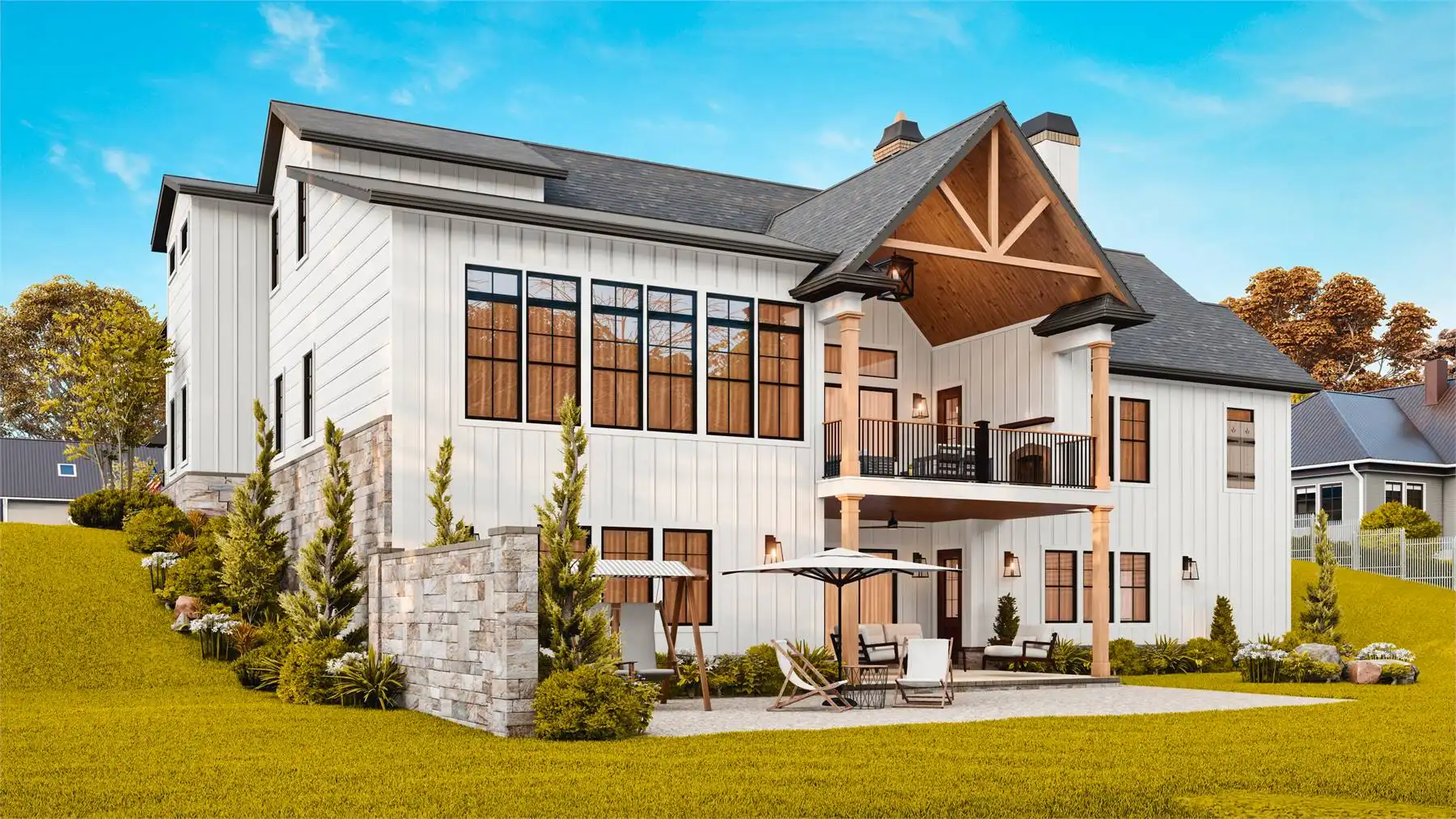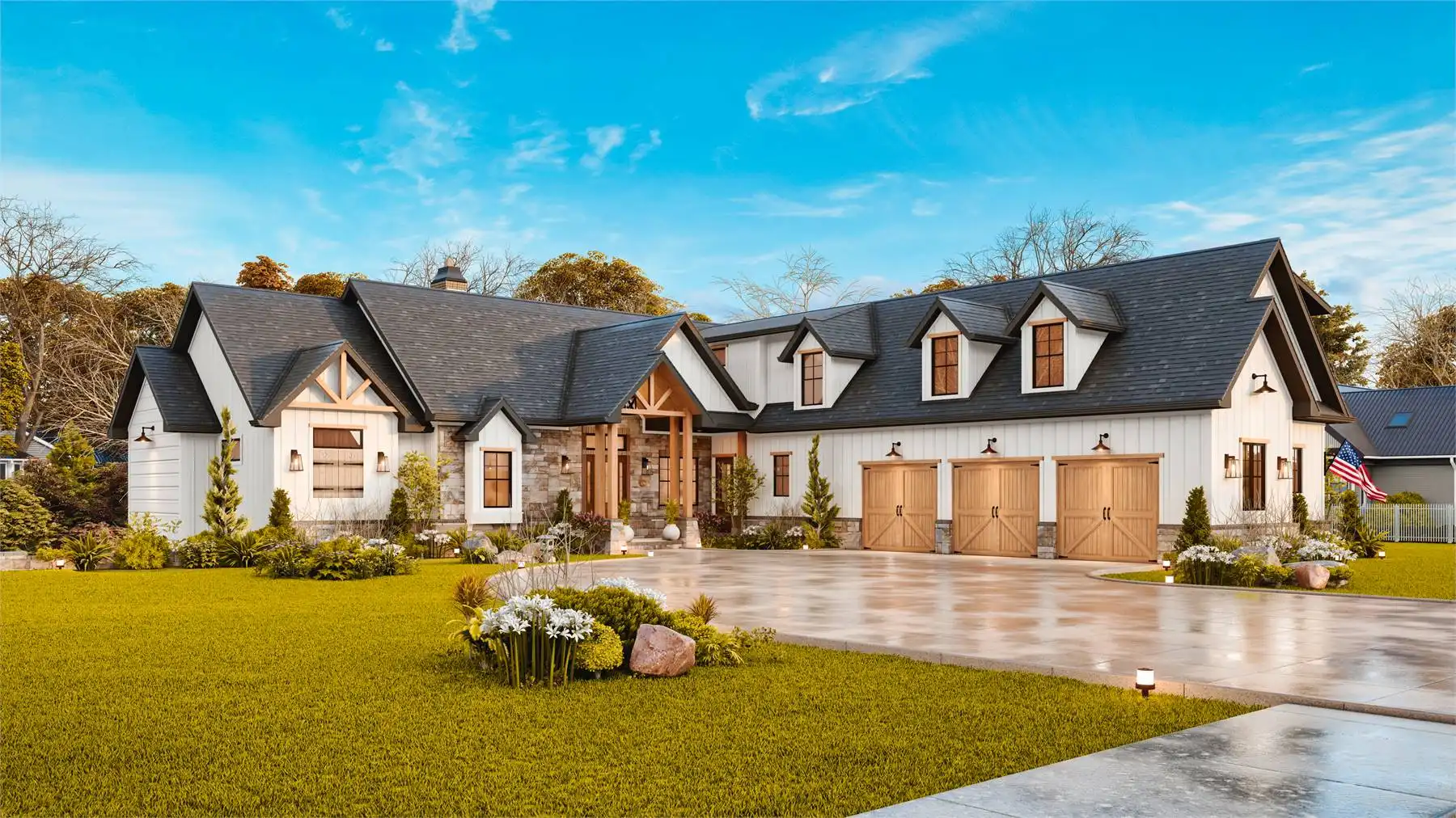 House Plan 10354 is a charming farmhouse that blends rustic appeal with modern comfort. The open-concept great room, warmed by a cozy fireplace, flows seamlessly into a gourmet kitchen with a large island and walk-in pantry—perfect for entertaining. The private owner’s suite features a spa-like bath and walk-in closet, while upstairs offers additional bedrooms and a versatile bonus space. A three-car garage and covered outdoor living areas complete this thoughtfully designed home, offering both style and functionality in a picturesque setting.