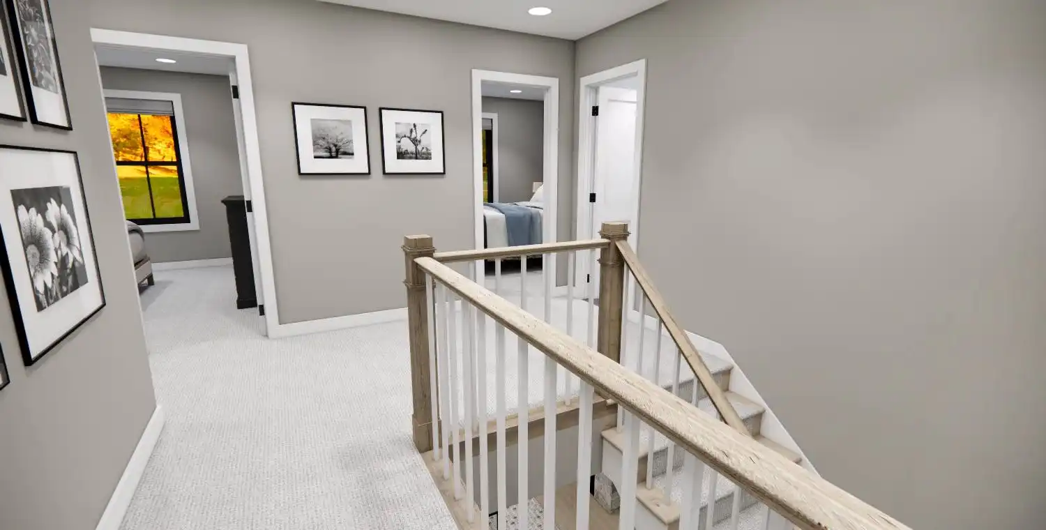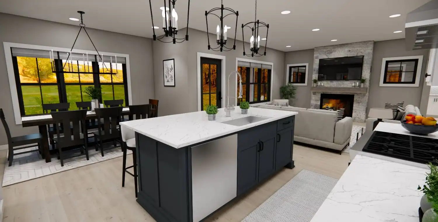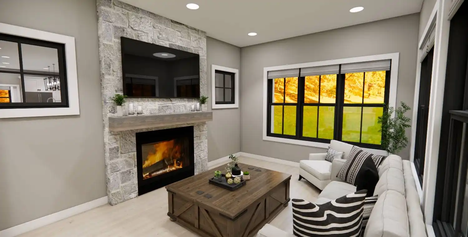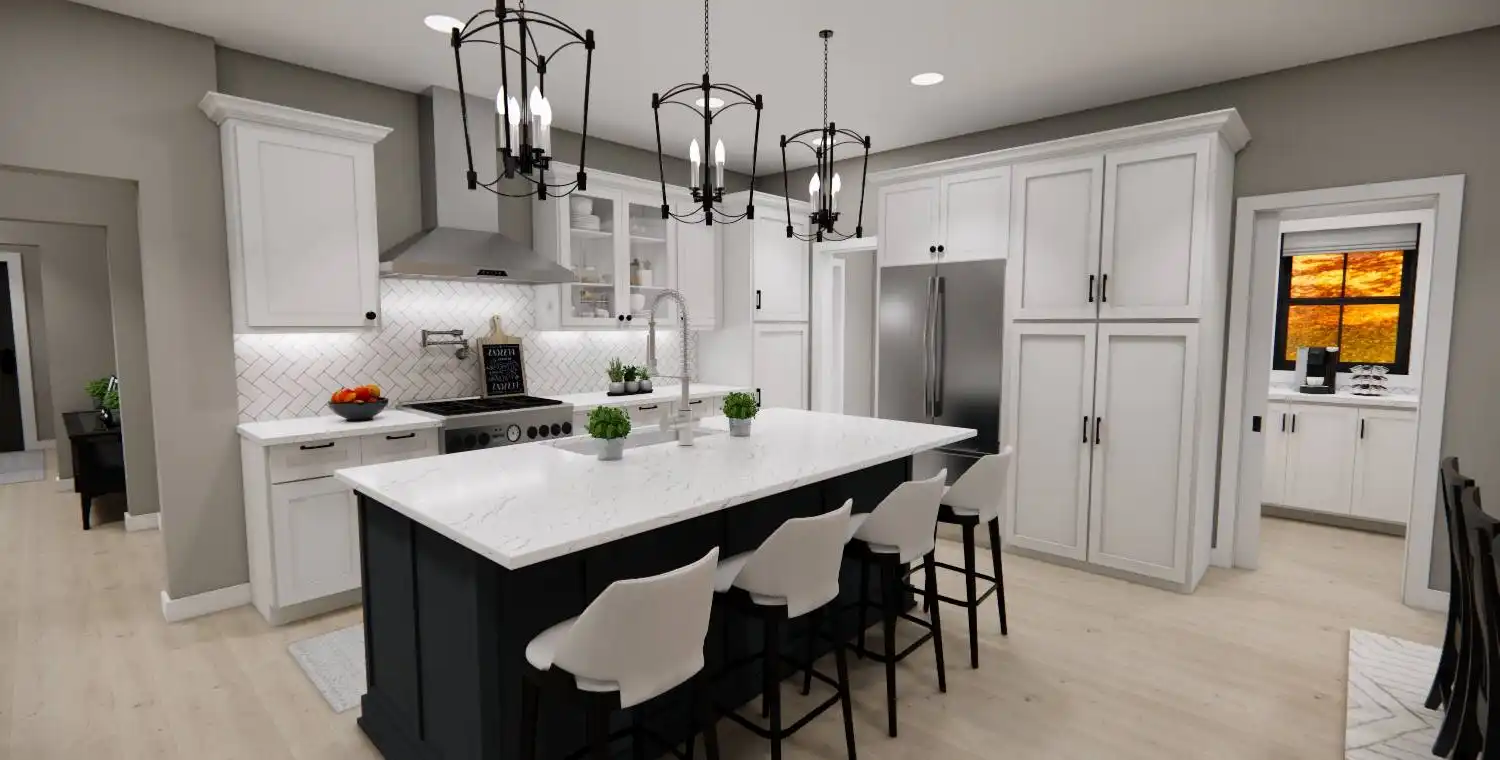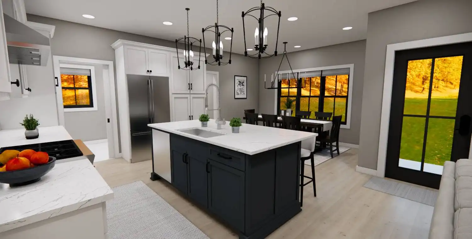 House Plan 10355 is a 2,748 sq. ft. modern bungalow that seamlessly blends style, comfort, and functionality. Designed with 4 bedrooms and 3.5 bathrooms, this two-story home provides ample space for families, entertaining, and everyday living. The main level’s open floor plan creates an effortless flow between the great room with a cozy fireplace, a sunlit dining area, and a gourmet kitchen featuring a large island and walk-in pantry. Thoughtful additions like a home office, stylish wet bar, and practical mudroom elevate the home’s convenience and charm. Upstairs, the primary suite offers a private retreat, complete with a spa-like bath and a spacious walk-in closet. Enjoy year-round outdoor living with covered front and rear porches, perfect for relaxation and entertaining. With a modern design and timeless appeal, House Plan 10355 is the perfect home for those who appreciate both beauty and practicality