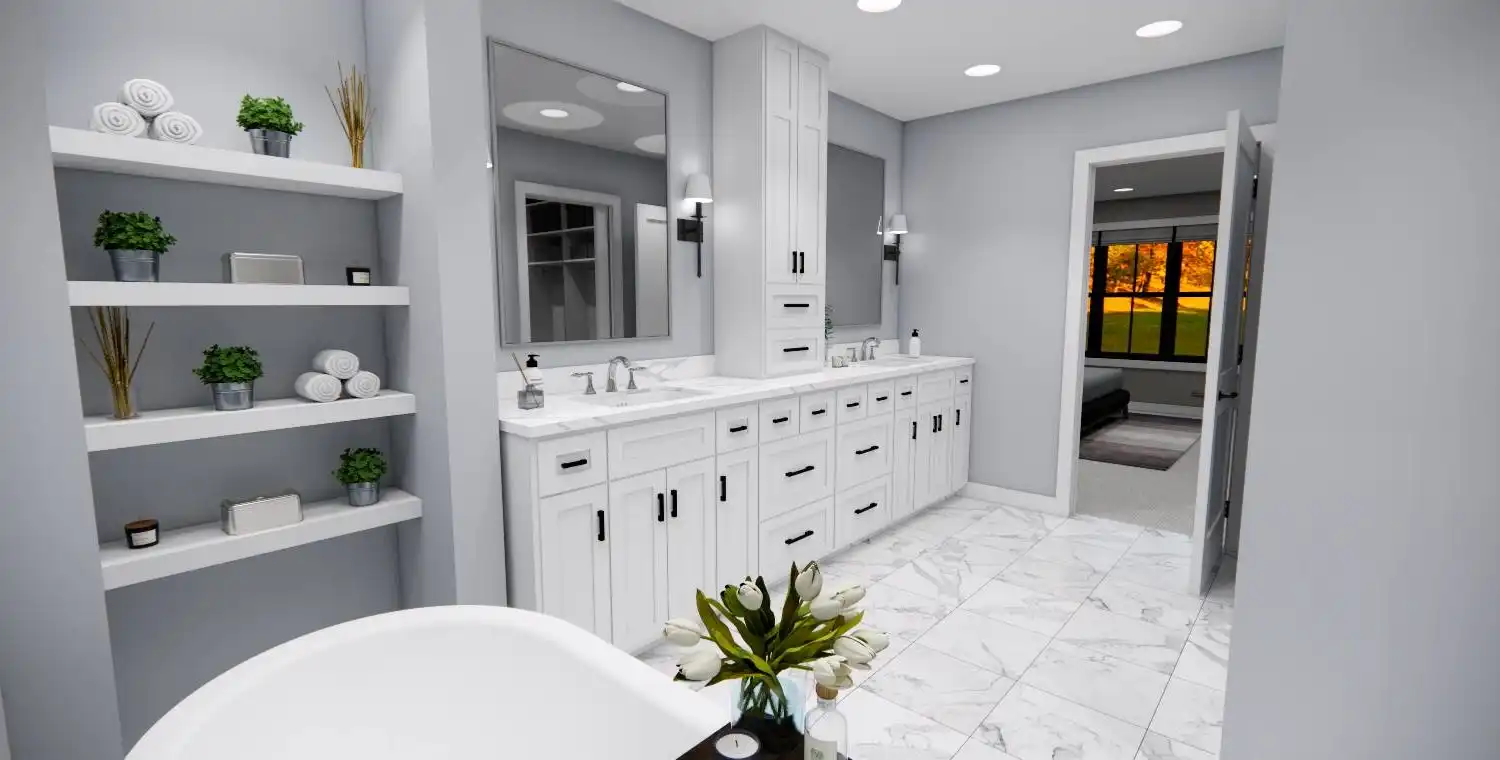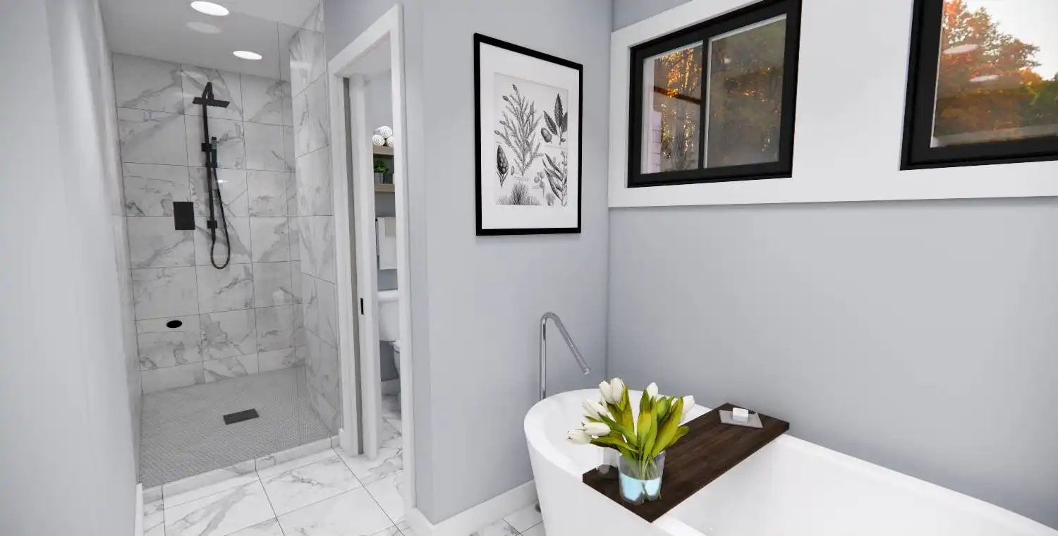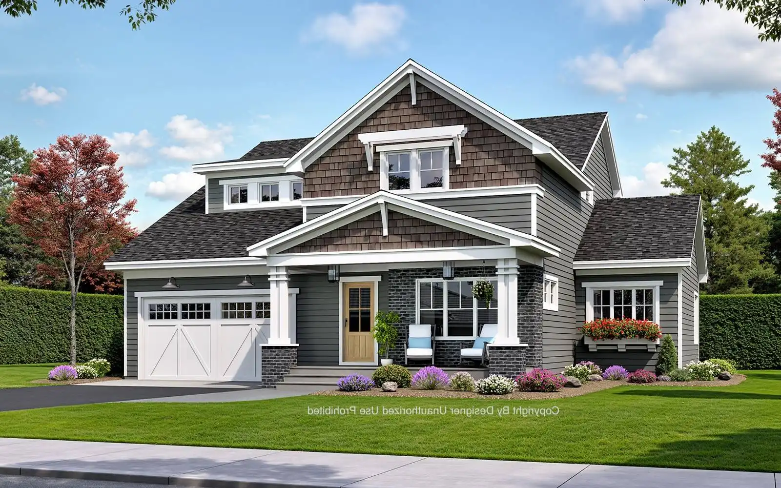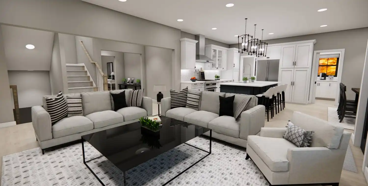 House Plan 10355 is a 2,748 sq. ft. modern bungalow that seamlessly blends style, comfort, and functionality. Designed with 4 bedrooms and 3.5 bathrooms, this two-story home provides ample space for families, entertaining, and everyday living. The main level’s open floor plan creates an effortless flow between the great room with a cozy fireplace, a sunlit dining area, and a gourmet kitchen featuring a large island and walk-in pantry. Thoughtful additions like a home office, stylish wet bar, and practical mudroom elevate the home’s convenience and charm. Upstairs, the primary suite offers a private retreat, complete with a spa-like bath and a spacious walk-in closet. Enjoy year-round outdoor living with covered front and rear porches, perfect for relaxation and entertaining. With a modern design and timeless appeal, House Plan 10355 is the perfect home for those who appreciate both beauty and practicality