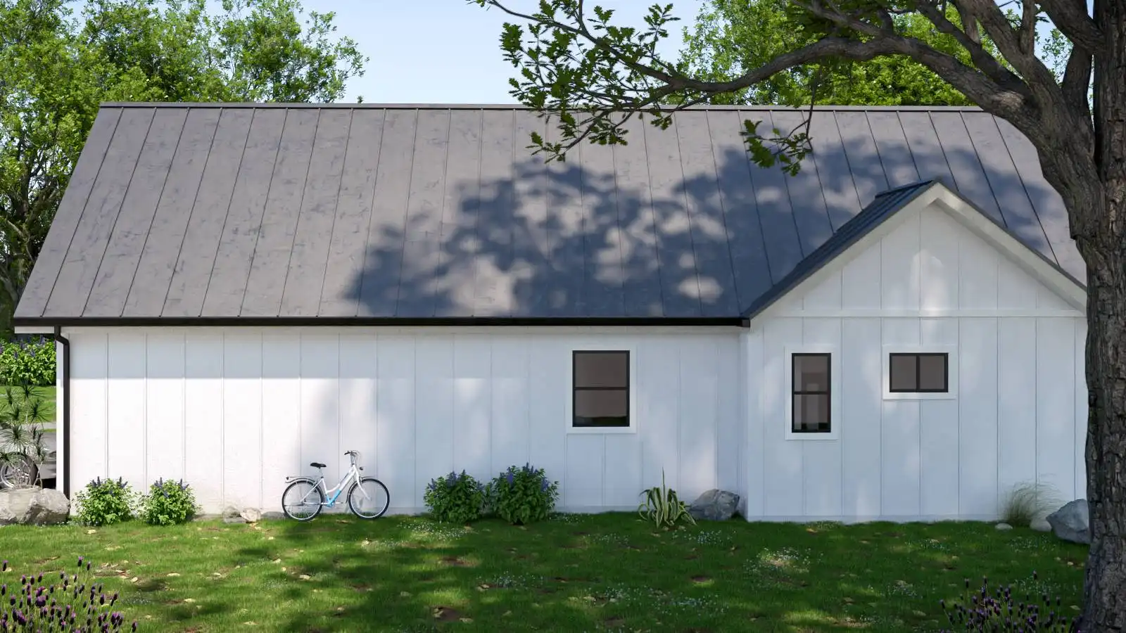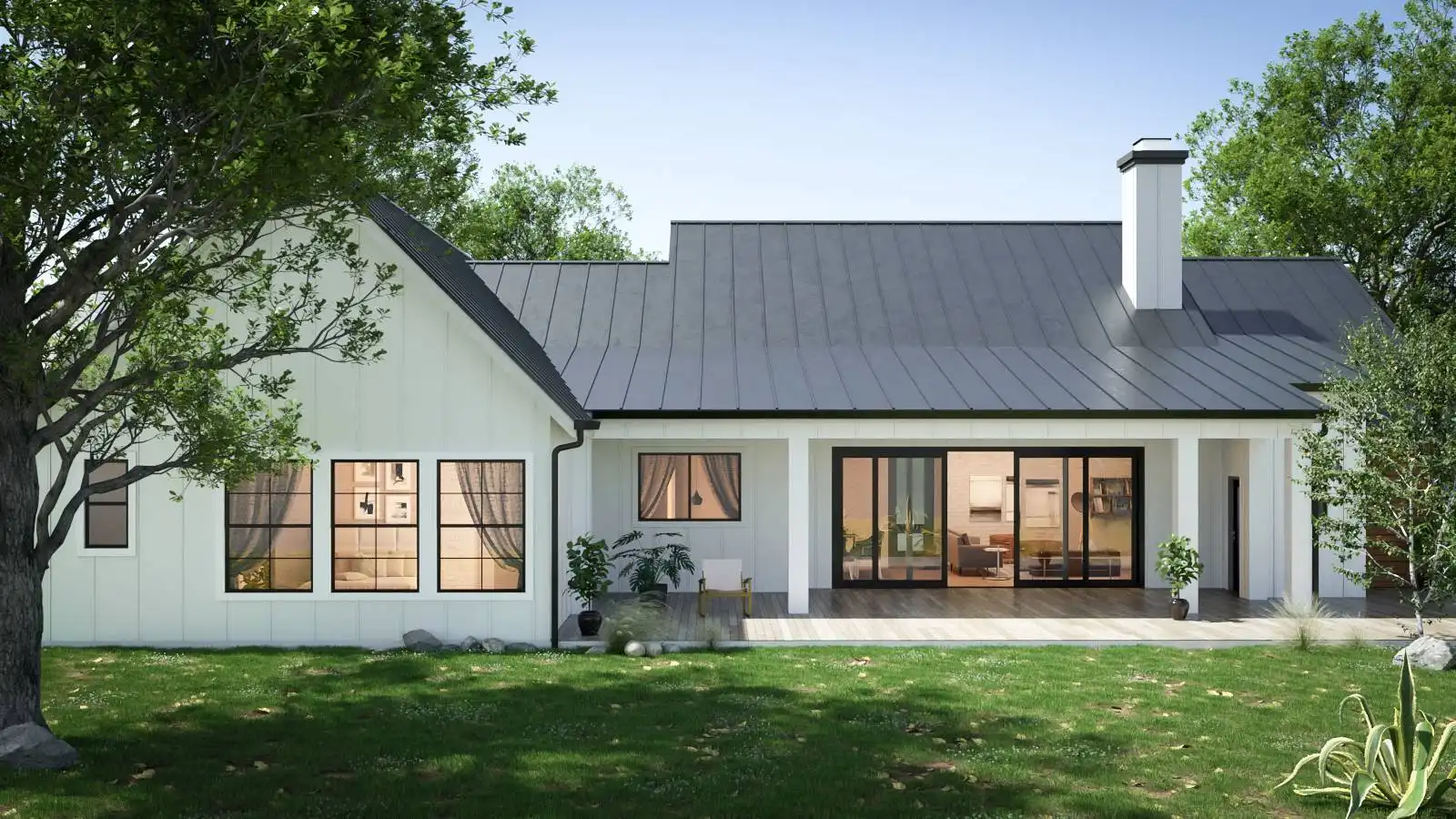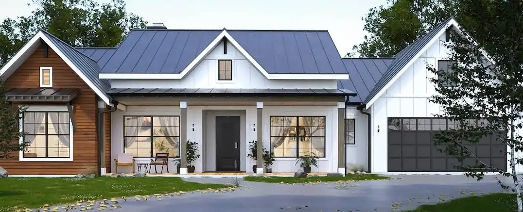 House Plan 10356 showcases a 2,508 sq. ft. modern farmhouse designed for both style and efficiency.This single-story residence includes 4 bedrooms and 2.5 bathrooms, with a private primary suite offering a luxurious bathroom and spacious walk-in closet.The central living area features a generous great room with a cozy fireplace, seamlessly connecting to the dining space and kitchen, fostering an open and welcoming environment.The kitchen boasts a large island and a walk-in pantry, enhancing its functionality.The split-bedroom layout ensures privacy, with three additional bedrooms sharing a well-appointed bathroom on the opposite side of the home.Additional amenities include a dedicated home office and a spacious 2-car garage, accommodating various storage and project needs.With its modern farmhouse charm and thoughtful design, House Plan 10356 is ideal for those seeking a harmonious blend of comfort and functionality.