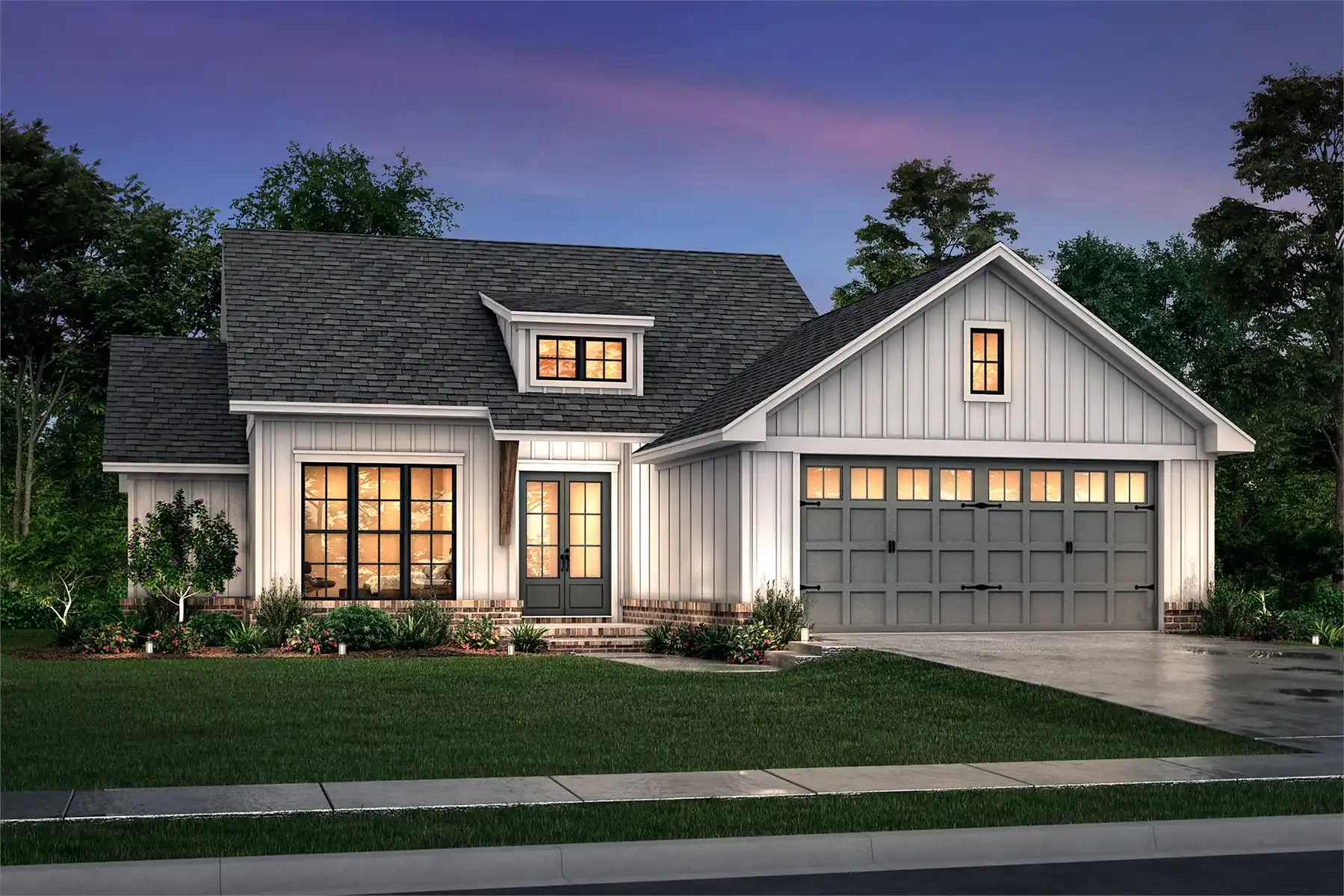 House Plan 10364 is a perfectly sized country ranch for a family on a budget. It offers 1,493 square feet, three bedrooms, two bathrooms, and a two-car garage. Inside, a formal foyer welcomes you in and ushers you to the living spaces, complete with an island kitchen, dining nook, and living area with a beamed ceiling above. Through the mudroom, you'll find the walk-in pantry, laundry room, and private primary suite with a four-piece bath. Off the living area, there's a hallway with the secondary bedrooms and a hall bath to share. There's plenty of privacy in this home despite its smaller size!