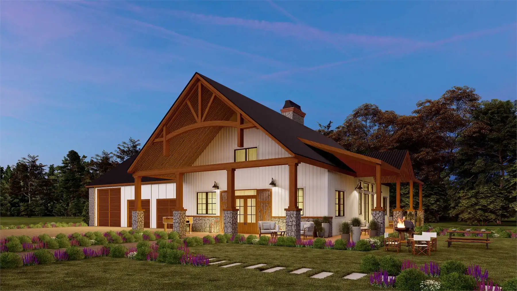 House Plan 10367 is a 2,717-square-foot, two-story barndominium designed for modern living with a rustic touch. The main floor features a spacious open-concept great room, dining area, and kitchen, creating a seamless flow for everyday living and entertaining. It includes two bedrooms, one being a private primary suite with an ensuite bath, as well as a dedicated home office for added versatility. Upstairs, a loft bedroom, an additional full bedroom, and an optional attic space provide room for expansion or storage. A massive three-car garage with front and rear access offers ample space for vehicles, equipment, and workshop needs. Extending the home’s charm, a full-length covered porch enhances outdoor living, making this plan a perfect balance of style, function, and comfort.
