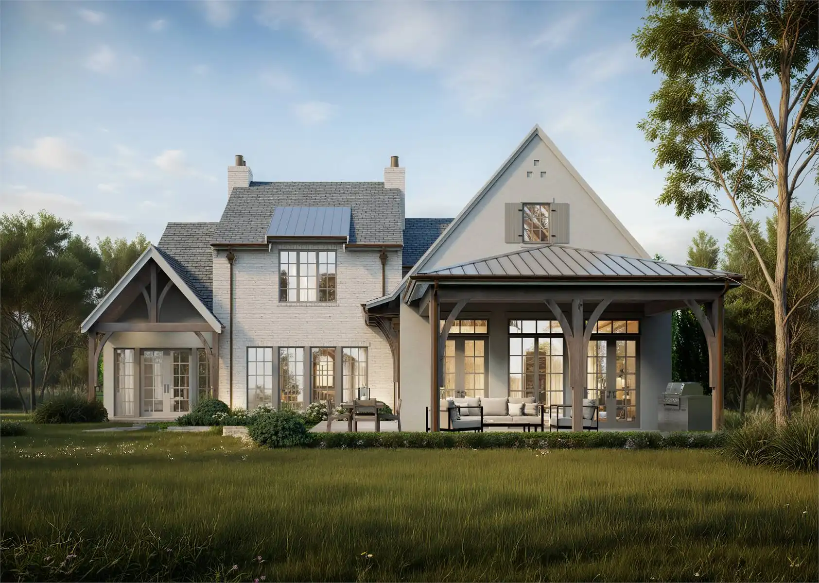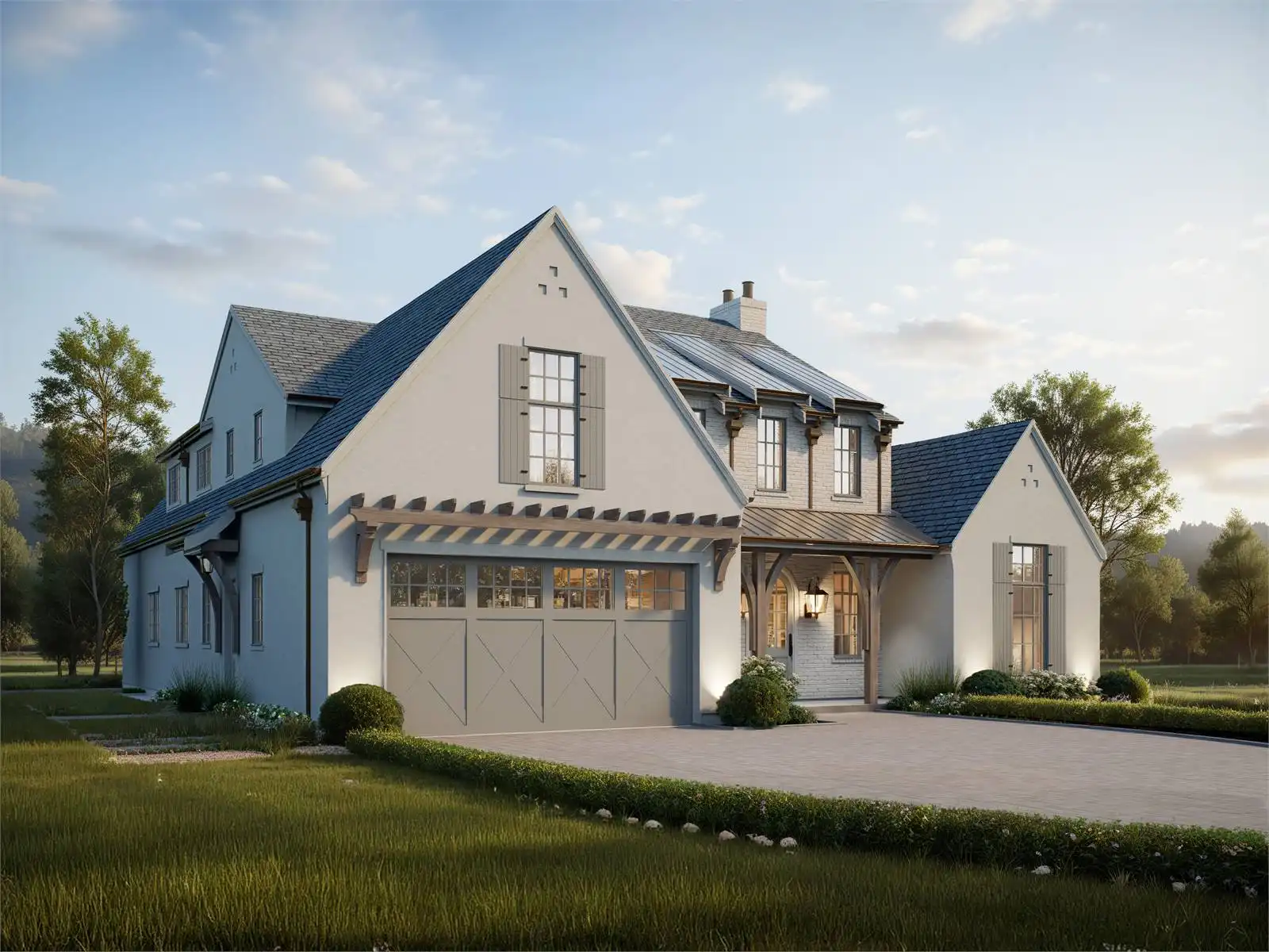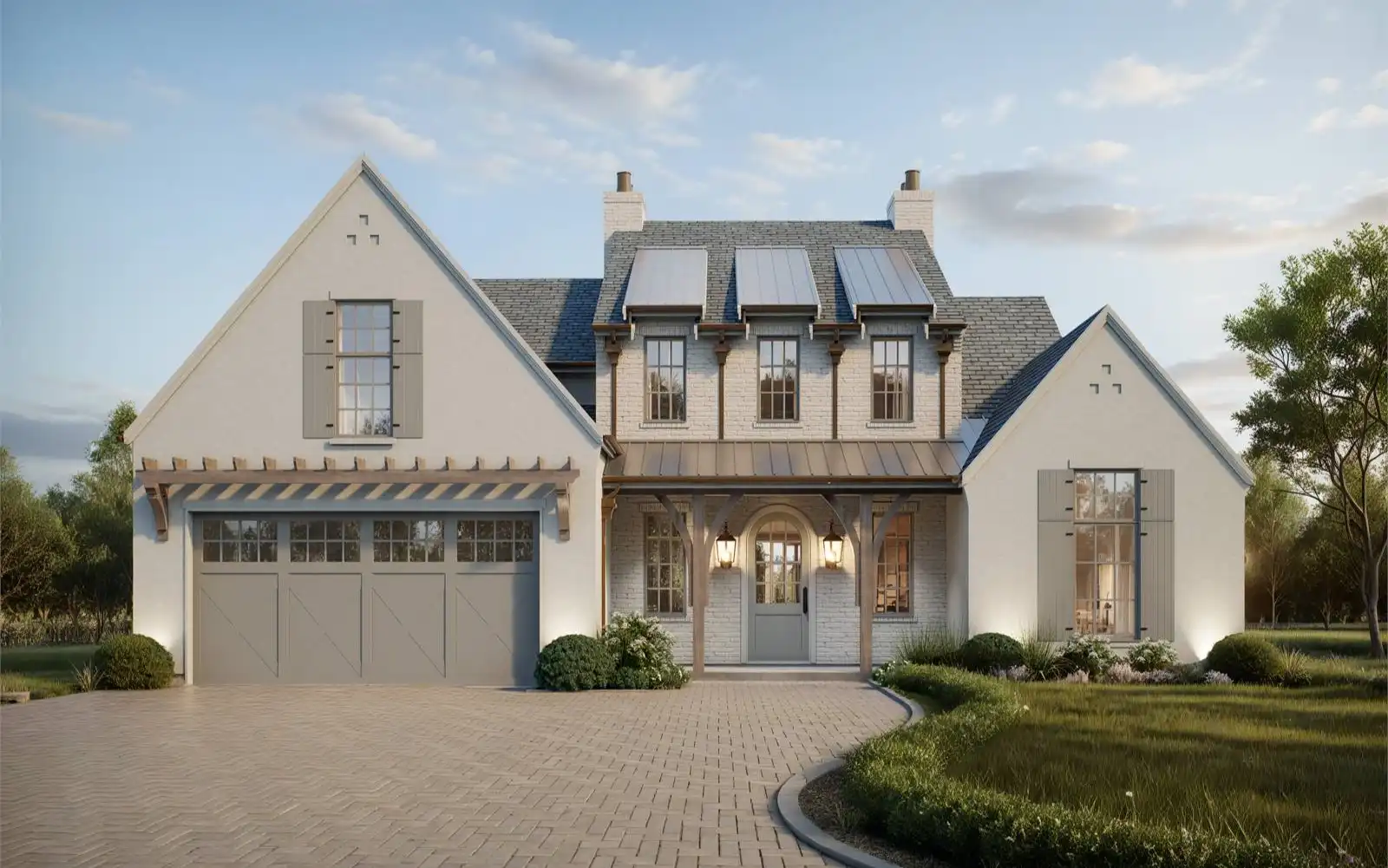 House Plan 10372 is a stunning two-story modern farmhouse offering 3,512 square feet of beautifully designed living space. The main floor boasts soaring vaulted ceilings, an open-concept L-shaped kitchen with a spacious dining peninsula and formal dining area, and a great room that flows seamlessly to a wraparound rear porch with an outdoor kitchen—perfect for entertaining. The luxurious primary suite features a spa-like ensuite and a generous walk-in closet, while the upper level includes two bedrooms, a loft, and a versatile bonus room. An optional 2,329-square-foot lower level enhances the home’s functionality with a games area, TV lounge, home gym, rec room, storage or flex space, and an additional bedroom with a full bath. A two-car front garage completes this exceptional design, blending modern elegance with the warmth of farmhouse living.