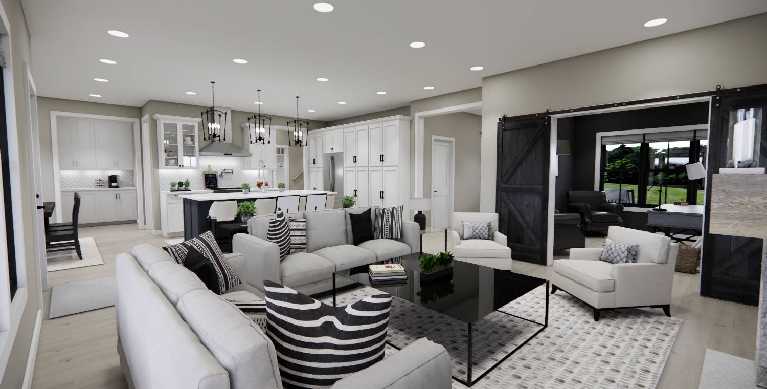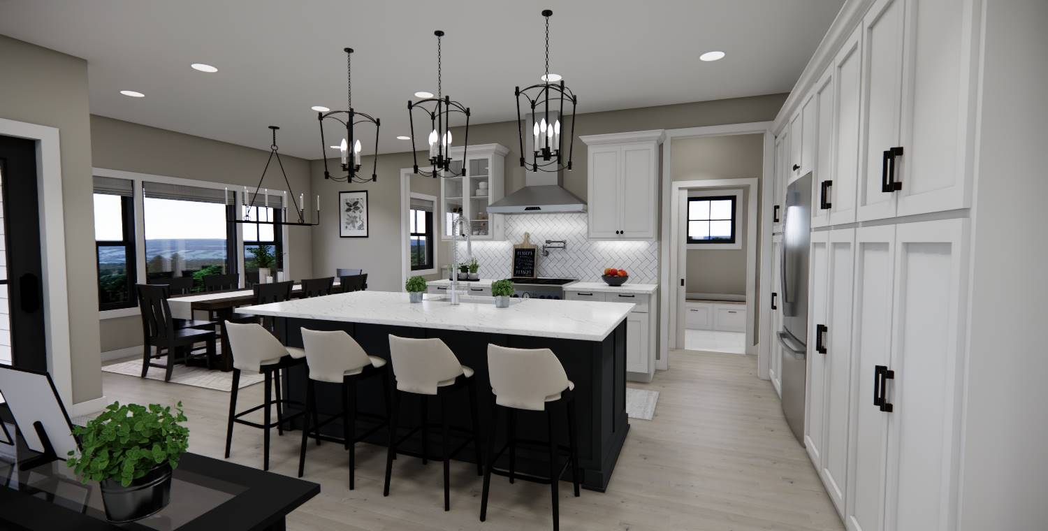 House Plan 10377 is a 2,216 sq. ft. modern farmhouse designed with both style and functionality in mind. This two-story home features 3 bedrooms and 2.5 bathrooms, including a primary suite on the second floor, complete with a spa-like en-suite bath and a spacious walk-in closet. The main floor’s open layout seamlessly connects the great room with a cozy fireplace, a gourmet kitchen with a large island and prep kitchen, and a bright dining area that opens to the rear porch—perfect for hosting or everyday relaxation. Thoughtful design elements include a dedicated home office, a convenient mudroom with laundry space, and a welcoming front porch. Upstairs, two additional bedrooms share a full bath, while a versatile loft provides extra space for a lounge, playroom, or study. With expansive covered front and rear porches, House Plan 10377 is the ideal blend of classic farmhouse aesthetics and modern convenience.