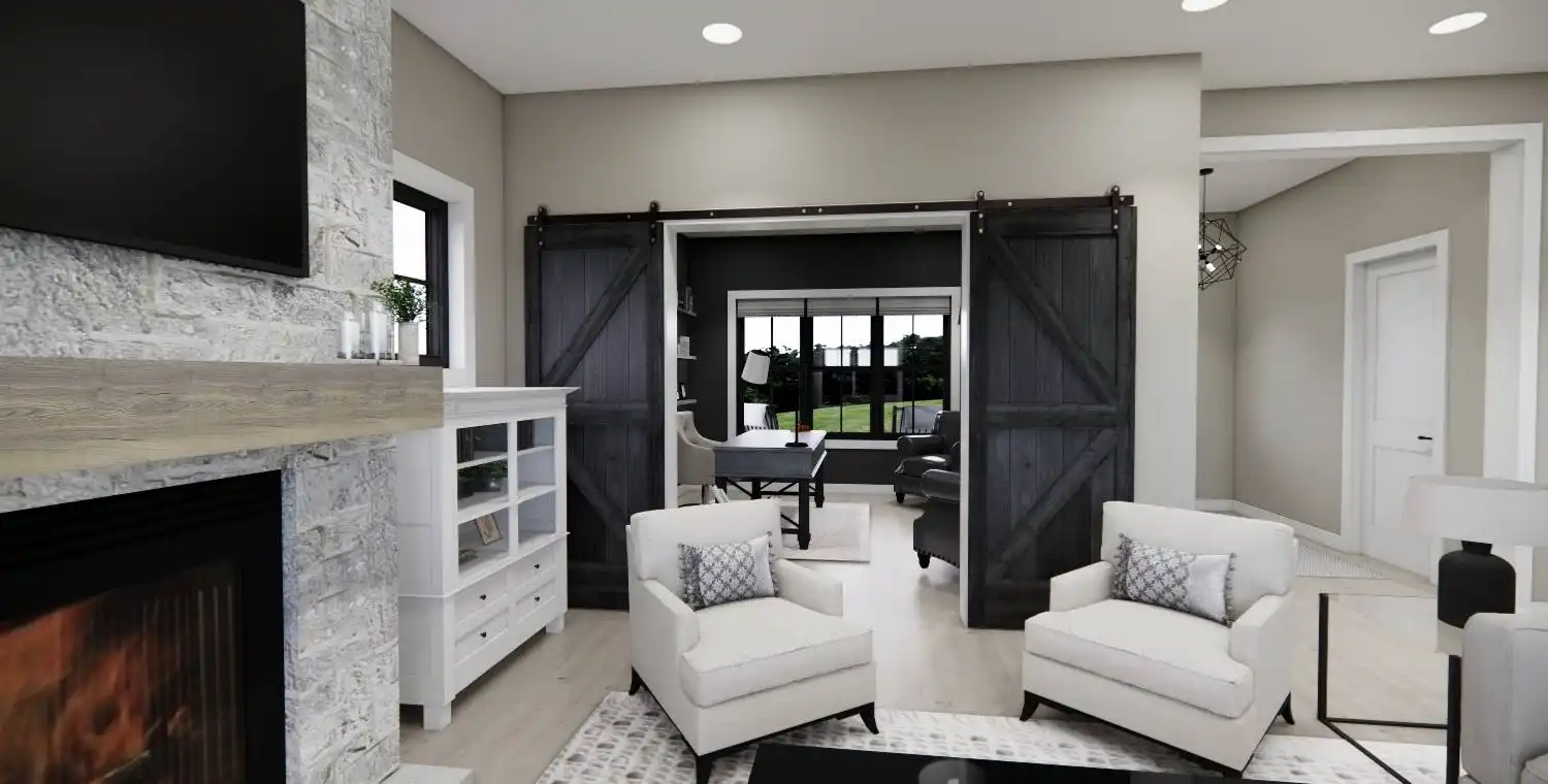 House Plan 10377 is a 2,216 sq. ft. modern farmhouse designed with both style and functionality in mind. This two-story home features 3 bedrooms and 2.5 bathrooms, including a primary suite on the second floor, complete with a spa-like en-suite bath and a spacious walk-in closet. The main floor’s open layout seamlessly connects the great room with a cozy fireplace, a gourmet kitchen with a large island and prep kitchen, and a bright dining area that opens to the rear porch—perfect for hosting or everyday relaxation. Thoughtful design elements include a dedicated home office, a convenient mudroom with laundry space, and a welcoming front porch. Upstairs, two additional bedrooms share a full bath, while a versatile loft provides extra space for a lounge, playroom, or study. With expansive covered front and rear porches, House Plan 10377 is the ideal blend of classic farmhouse aesthetics and modern convenience.