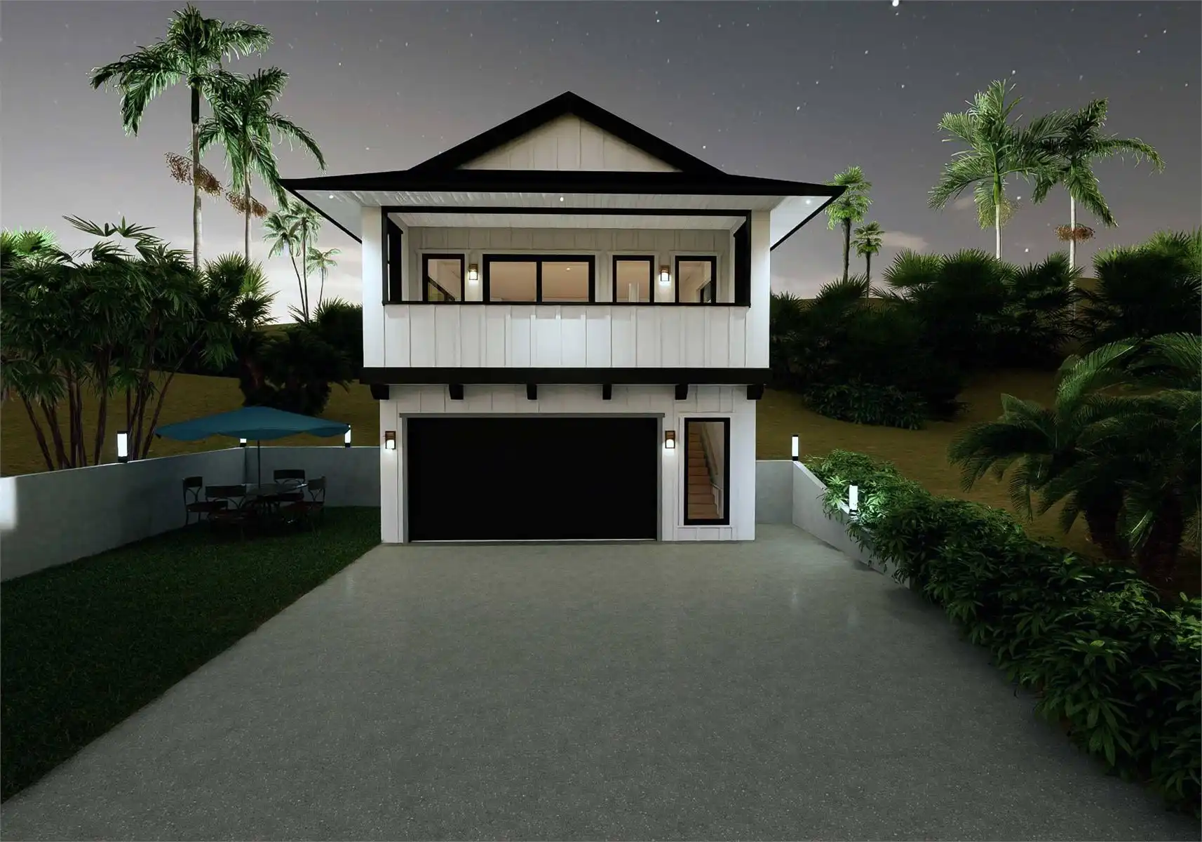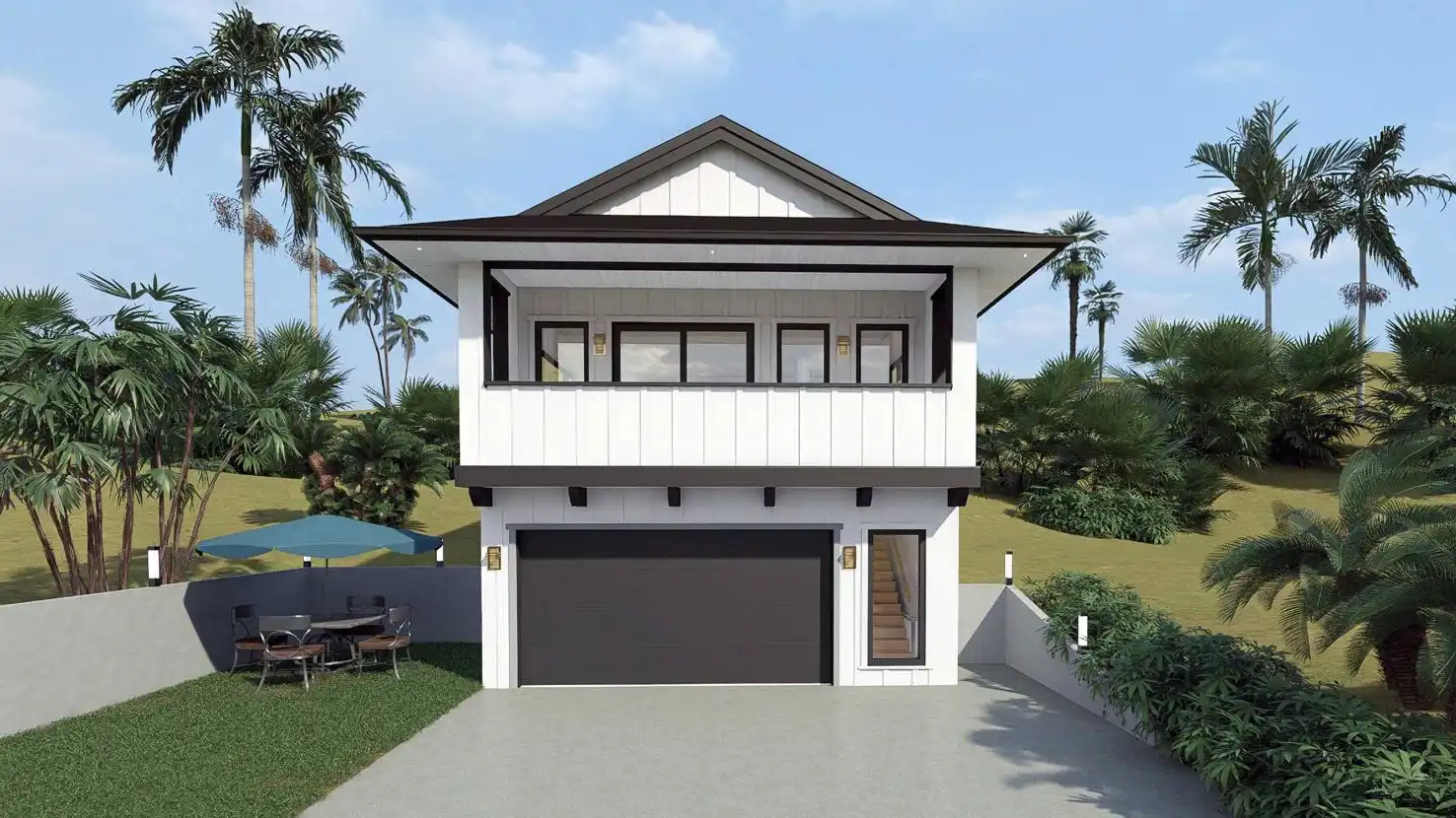 House Plan 10381 makes a wonderfully private getaway with 1,152 square feet boosted over a two-car garage. It offers one bedroom and one bathroom in back to create a comfortable suite while the open-concept living sits in front. The great room connects to the front deck to help you take in views!
