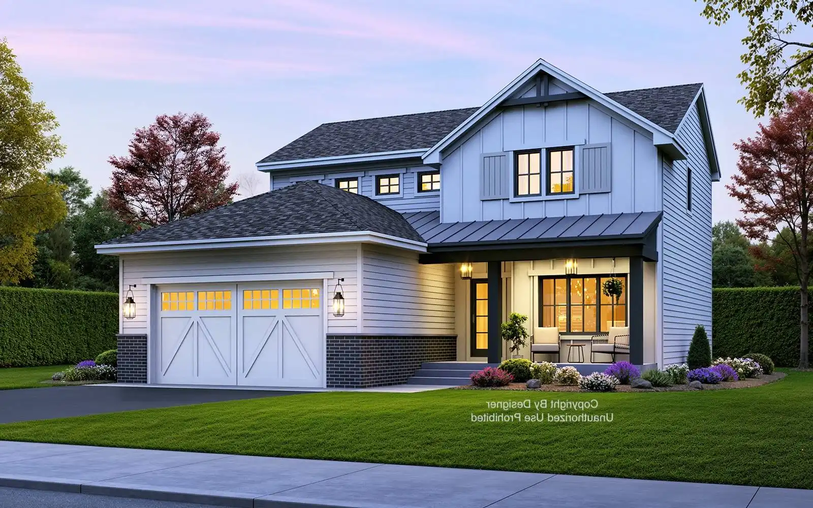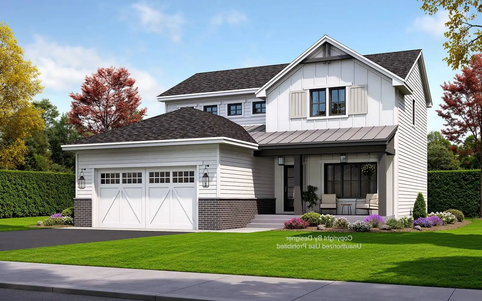 House Plan 10386 is a meticulously crafted 2,132 sq. ft. modern farmhouse that blends timeless design with contemporary amenities. This two-story layout includes 3 comfortable bedrooms and 3.5 bathrooms, with the primary suite situated on the upper level, featuring a walk-in closet and private bath for a serene retreat. The open-concept main floor seamlessly integrates the great room, dining area, and a state-of-the-art kitchen equipped with a prep kitchen and walk-in pantry, facilitating effortless entertaining and daily living. Additional features include a dedicated home office/study, a mudroom with laundry facilities, and an inviting front porch that enhances the home's curb appeal. Upstairs, two additional bedrooms, each with its own attached bathroom, offer privacy and convenience for family members or guests. With covered front and rear porches, House Plan 10386 provides abundant outdoor living spaces, making it a perfect choice for those seeking a harmonious blend of style and comfort.