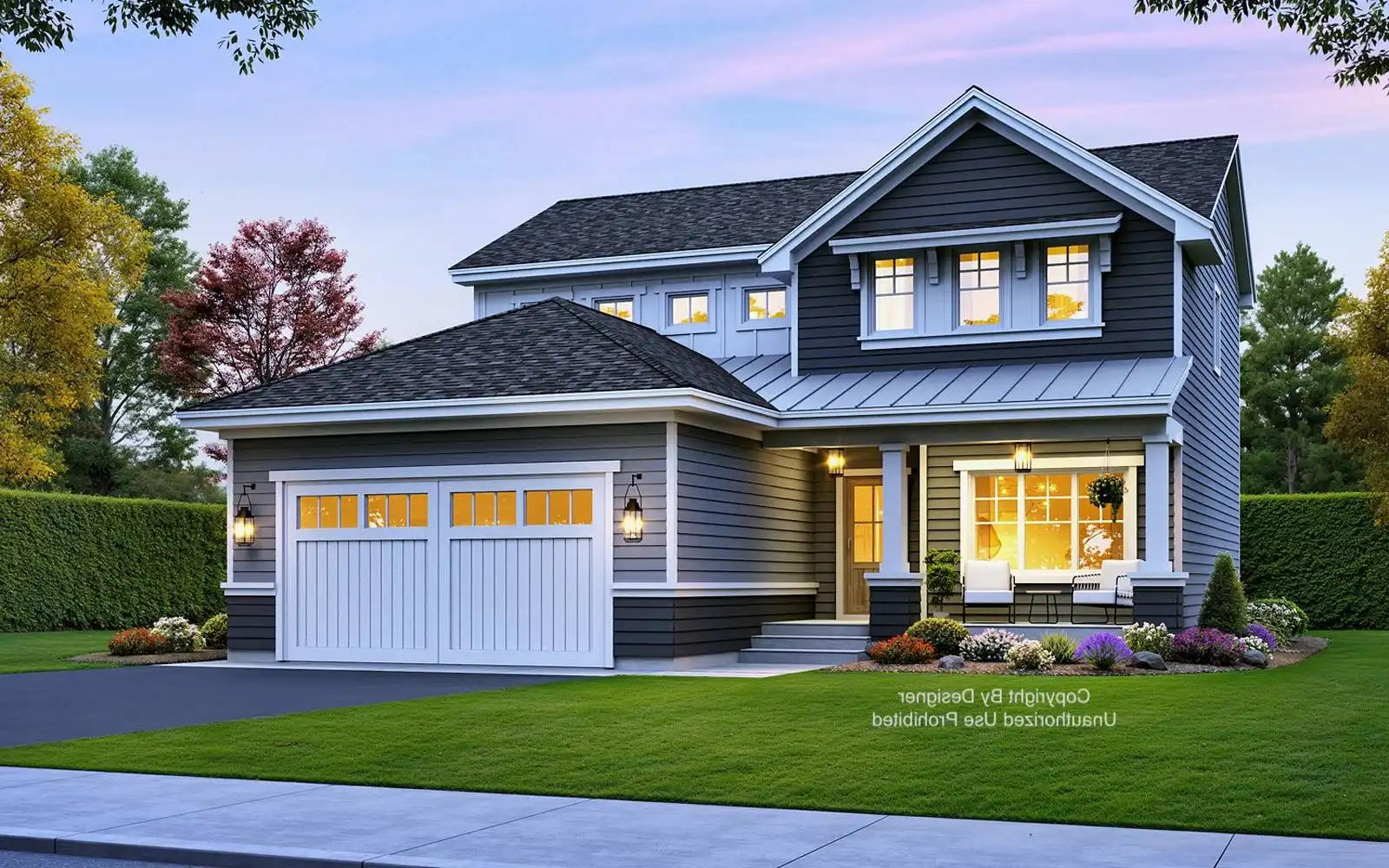 House Plan 10395 is a meticulously crafted 2,132 sq. ft. modern Craftsman home that combines timeless design with contemporary amenities. This two-story layout includes 3 generous bedrooms and 3.5 bathrooms, with the primary suite situated on the upper level, featuring a walk-in closet and private bath for a serene retreat. The open-concept main floor seamlessly integrates the great room with a cozy fireplace, a gourmet kitchen equipped with a large island, prep kitchen, and walk-in pantry, and a dining area that opens onto the rear porch—ideal for gatherings. Additional features include a dedicated home office/study, a mudroom with laundry facilities, and an inviting front porch that enhances curb appeal. Upstairs, two additional bedrooms, each with its own bathroom, and a conveniently located laundry room provide comfort and convenience for family members or guests. With its covered front and rear porches, House Plan 10395 offers abundant outdoor living space, making it a perfect choice for those seeking a harmonious blend of style and comfort.
