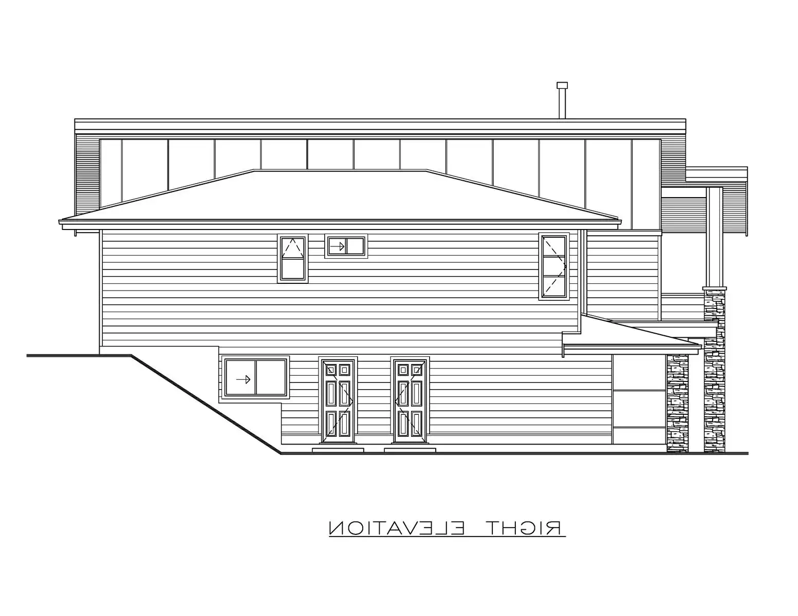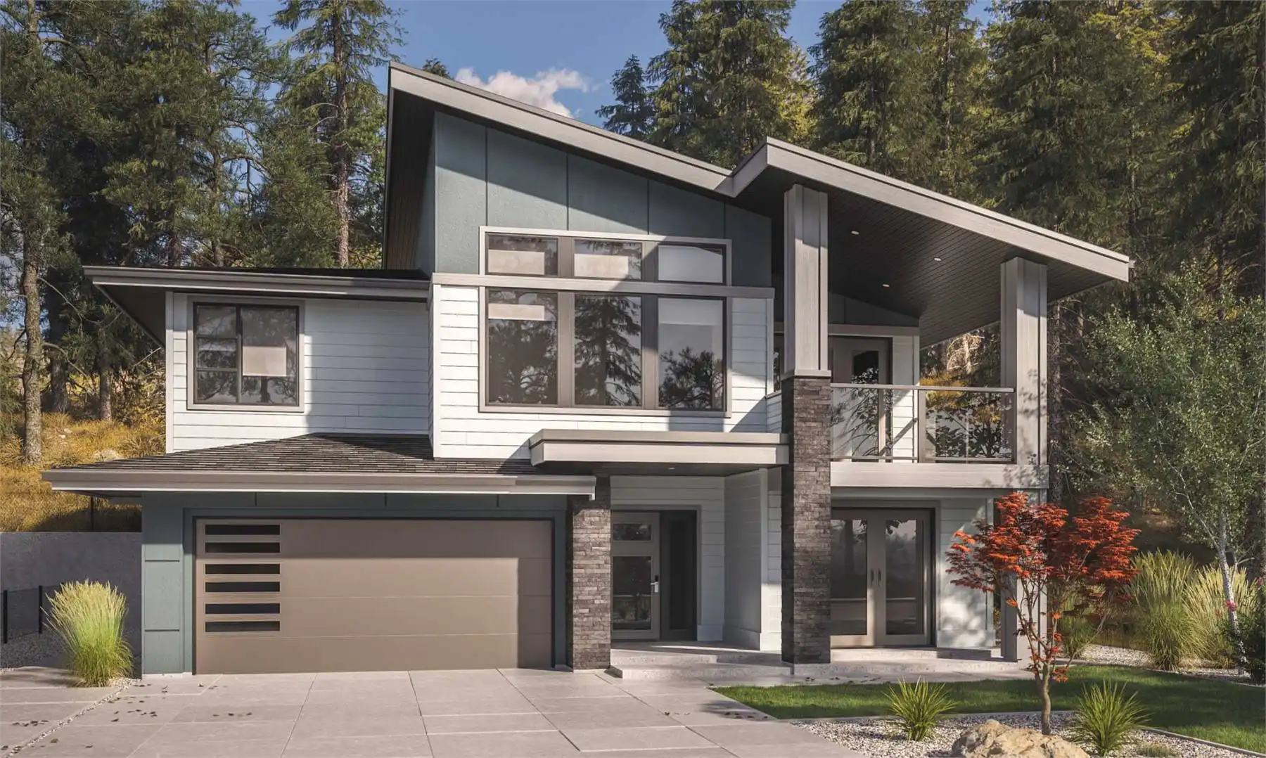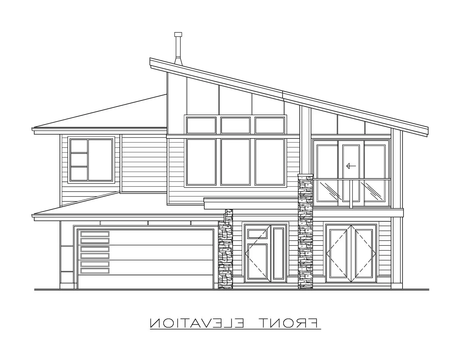 House Plan 10401 is a modern two-story design with 1,853 square feet of smart, flexible living space. The ground floor offers the option for a future secondary suite complete with its own kitchen, full bath, bedroom, and flex room—perfect for rental income or multigenerational living. The main living area is located upstairs and includes three bedrooms, an open-concept kitchen and dining area with a large island and L-shaped layout, a separate great room with a fireplace, and both front and rear covered outdoor spaces. A two-car garage rounds out this stylish and functional modern home.