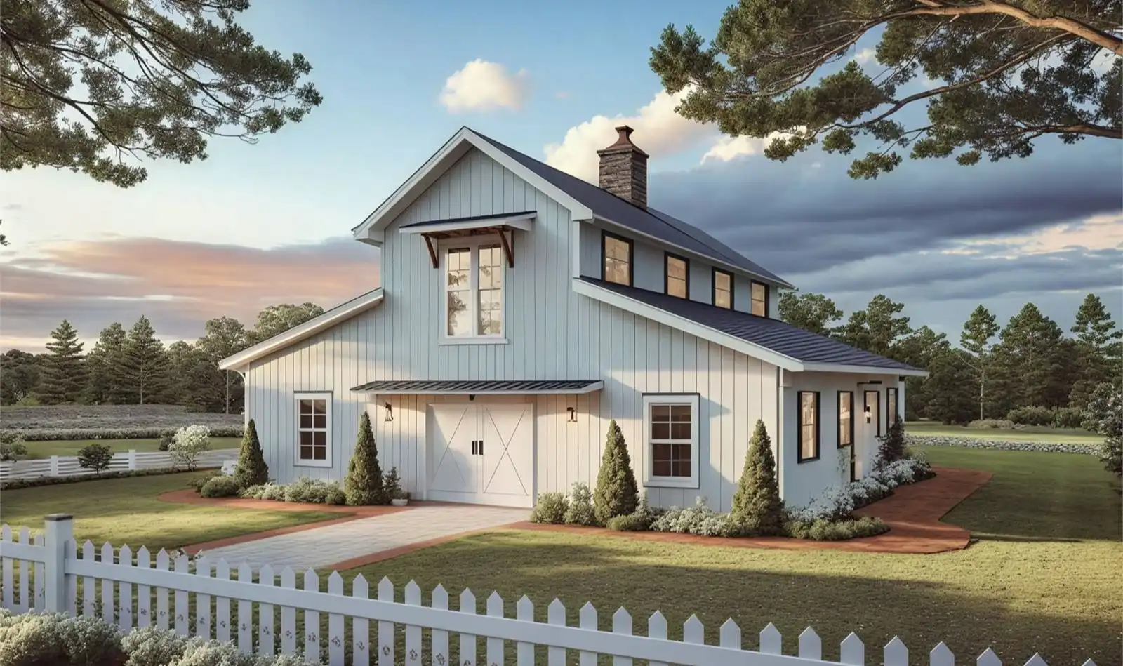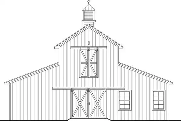 House Plan 10417 is a versatile barndominium-style design that seamlessly blends functional farm space with comfortable living quarters. With 1,612 square feet of working barn space and 741 square feet of living area, this plan is ideal for farm owners needing on-site accommodations for staff. The one-bedroom living space features a full bath, an eat-in kitchen, and a cozy living area, providing all the essentials for comfortable daily living. A drive-through tractor storage area divides the barn, offering easy equipment access and organization. On one side, you'll find two stalls, a tack/feed room, and dedicated hay storage, while an upper loft adds extra space for additional hay or equipment storage. Thoughtfully designed for efficiency and practicality, House Plan 10417 is the perfect solution for those looking to combine livability with the demands of farm life.