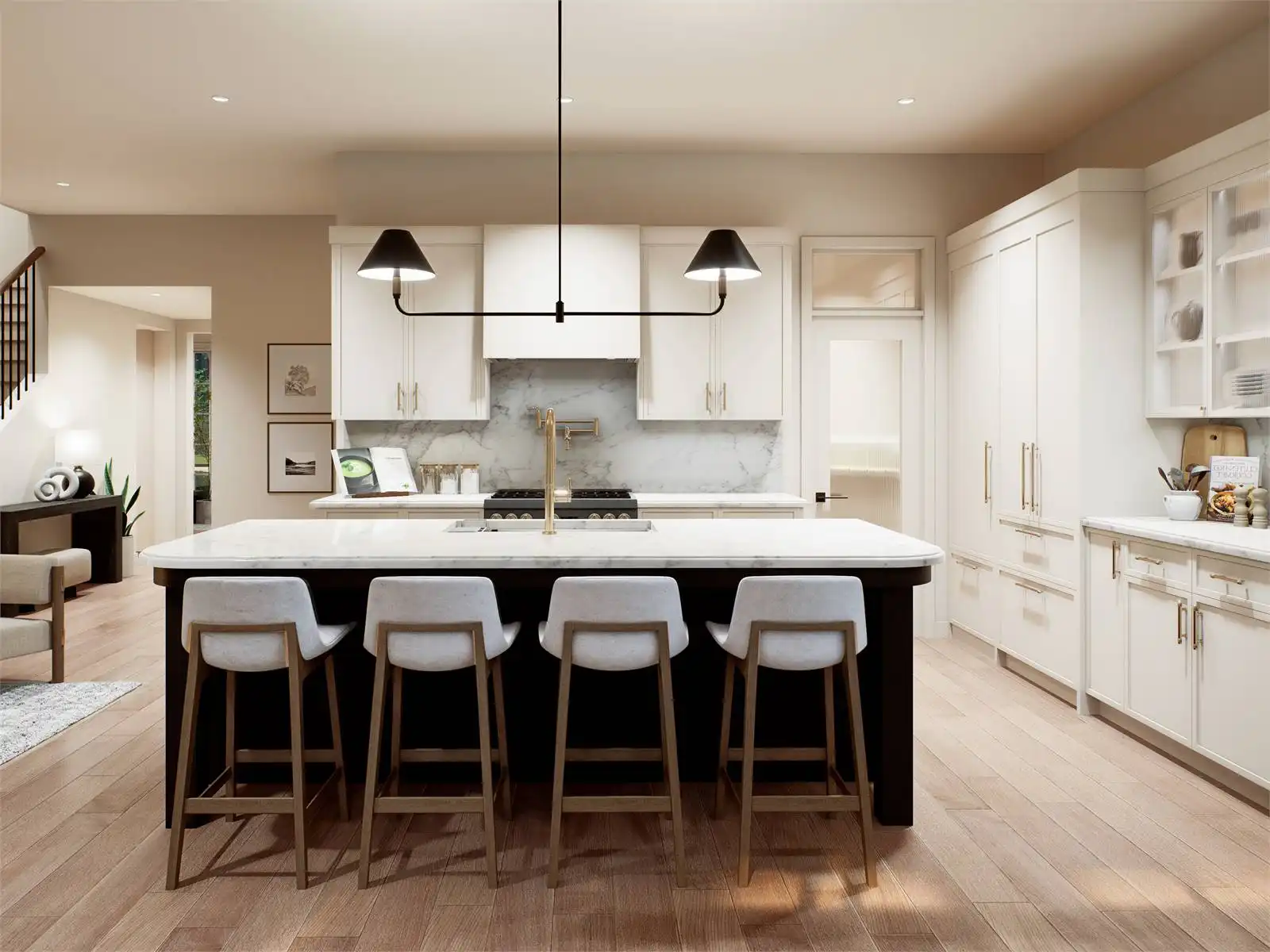 House Plan 10423 is a charming country-style home with 1,981 square feet across two stories and an optional lower level adding 926 square feet. A welcoming foyer opens to a bright great room with a cozy fireplace and direct access to outdoor living. The L-shaped kitchen features a large island with bar seating, a walk-in pantry, and flows into the airy dining room. Upstairs, the primary suite offers a vaulted ceiling, sitting area, and spa-like ensuite, along with two additional bedrooms and a versatile loft. The optional lower level can include a full suite with a kitchen, flex space, computer nook, bedroom, and full bath, making it perfect for guests or multi-generational living. Blending comfort and functionality, House Plan 10423 is a beautiful country retreat.