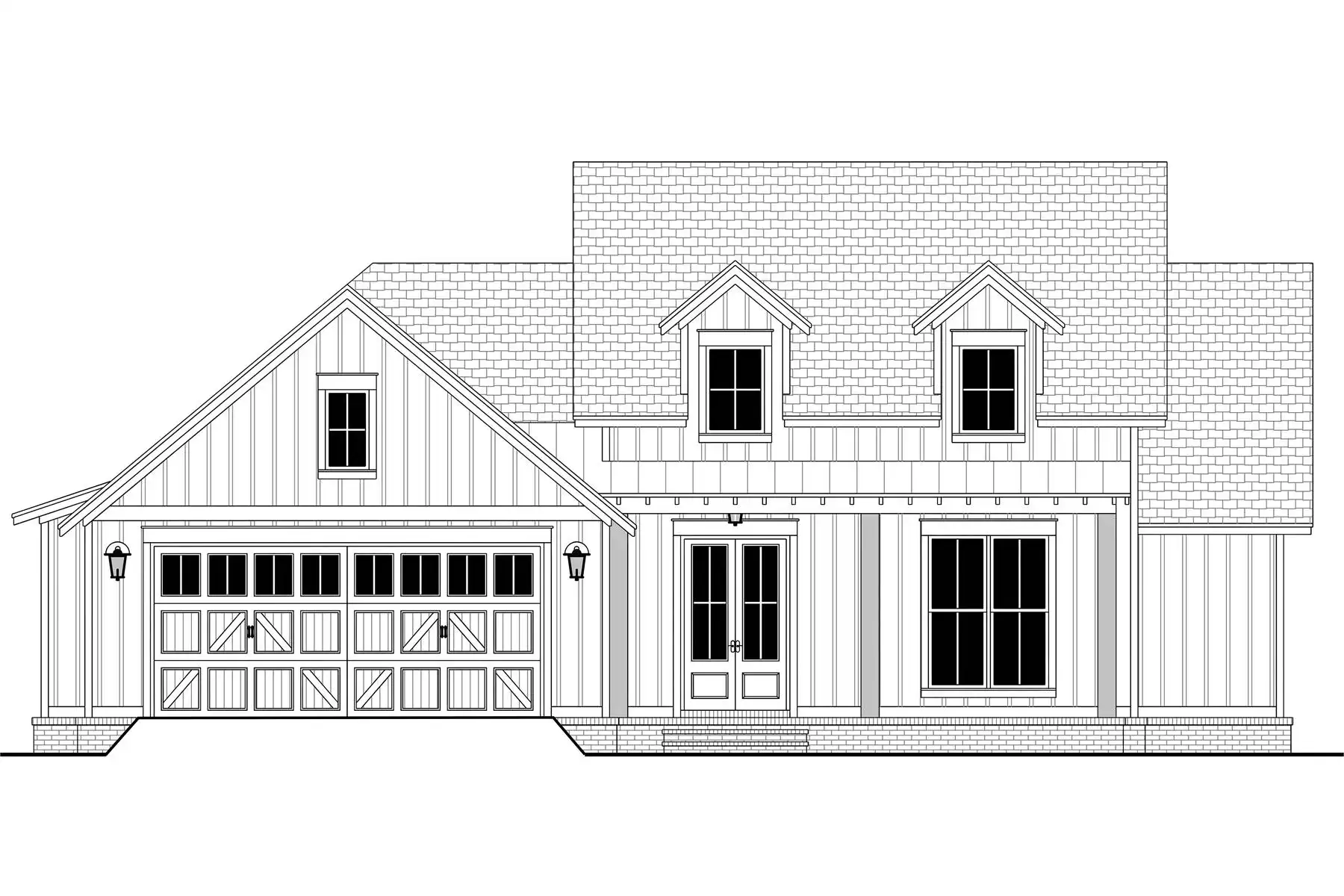 House Plan 10448 showcases a 1,756 sq. ft. contemporary farmhouse designed for both style and efficiency. This single-story home includes 3 bedrooms and 2 bathrooms, with a split-bedroom layout that ensures privacy for the primary suite. The primary suite boasts a tray ceiling, dual vanities, an oversized walk-in shower, and a generous walk-in closet. The central living area features a vaulted great room that seamlessly connects to the kitchen and dining space, fostering an open and welcoming environment. A versatile multi-purpose pantry, situated near the garage entry, functions as a pantry, mudroom, and workspace, adding to the home's practicality. Expansive front and rear porches extend the living space outdoors, offering perfect spots for relaxation and gatherings. With its contemporary farmhouse aesthetics and thoughtful design, House Plan 10448 is ideal for those seeking a harmonious blend of comfort and functionality.?
