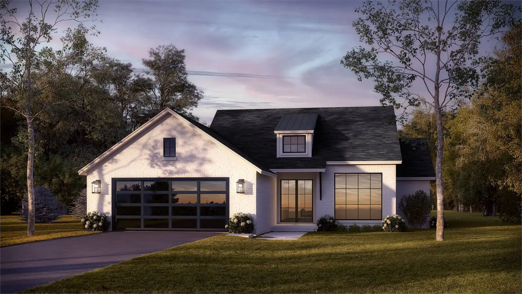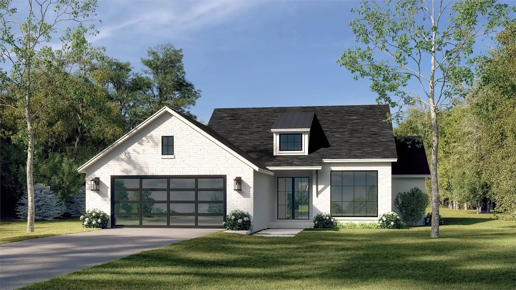 House Plan 10449 is a 1,775 sq. ft. modern farmhouse that blends style, efficiency, and everyday comfort. This single-story home offers 3 bedrooms and 2.5 bathrooms, with a split-bedroom layout providing privacy for the primary suite, which features dual vanities, a walk-in closet, a private toilet area, and a custom shower. The vaulted family room creates an inviting atmosphere, seamlessly flowing into the kitchen and dining area for effortless entertaining. Large rear-facing windows in the dining space frame scenic backyard views, while the collapsible living room wall enhances indoor-outdoor living. Thoughtful details include built-in lockers, a spacious walk-in pantry near the garage entry, and a discreet laundry room tucked away for convenience. With expansive covered porches in the front and back, House Plan 10449 is designed for those who appreciate modern farmhouse charm and practical functionality in a cozy yet open home.