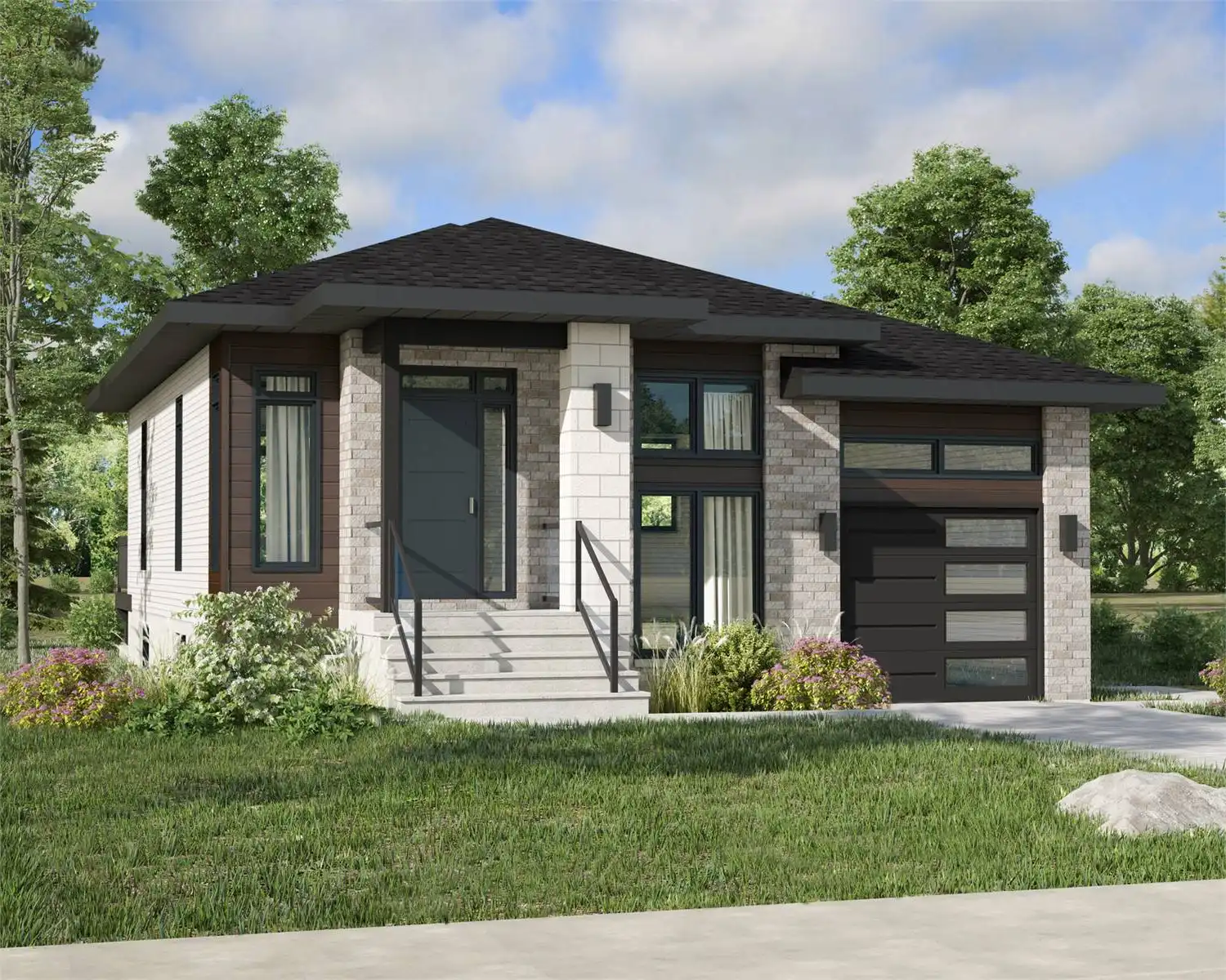 House Plan 10454 makes a wonderful affordable home for anybody with chic style! It offers 1,027 square feet with two bedrooms and one bathroom on one floor, plus a one-car garage is incorporated into its compact footprint. The floor plan places the living area in front, the dining area in back, and the island kitchen in-between for a layout that is open and defined. The bedrooms are in the back hallway along with the hall bathroom to share and the laundry closet.