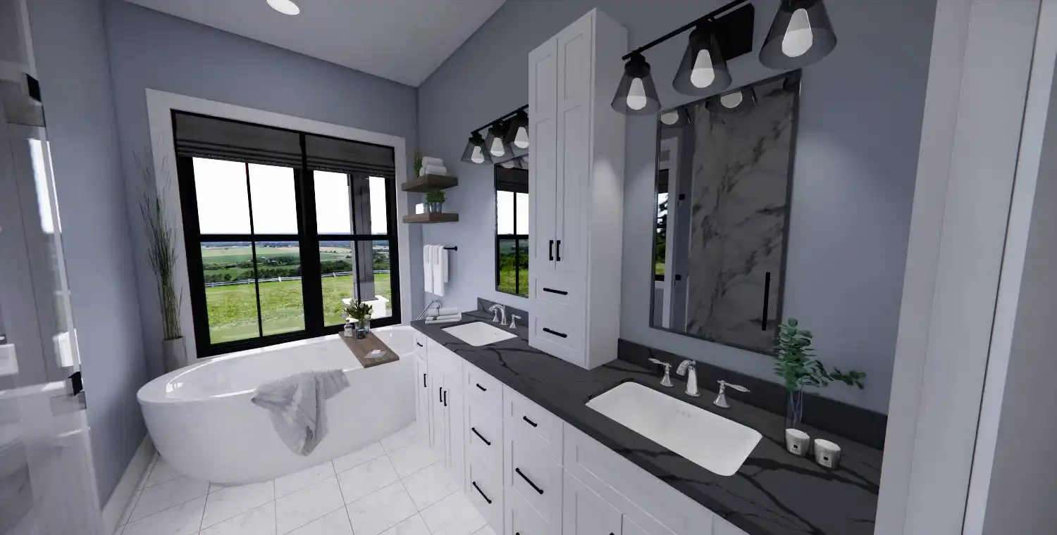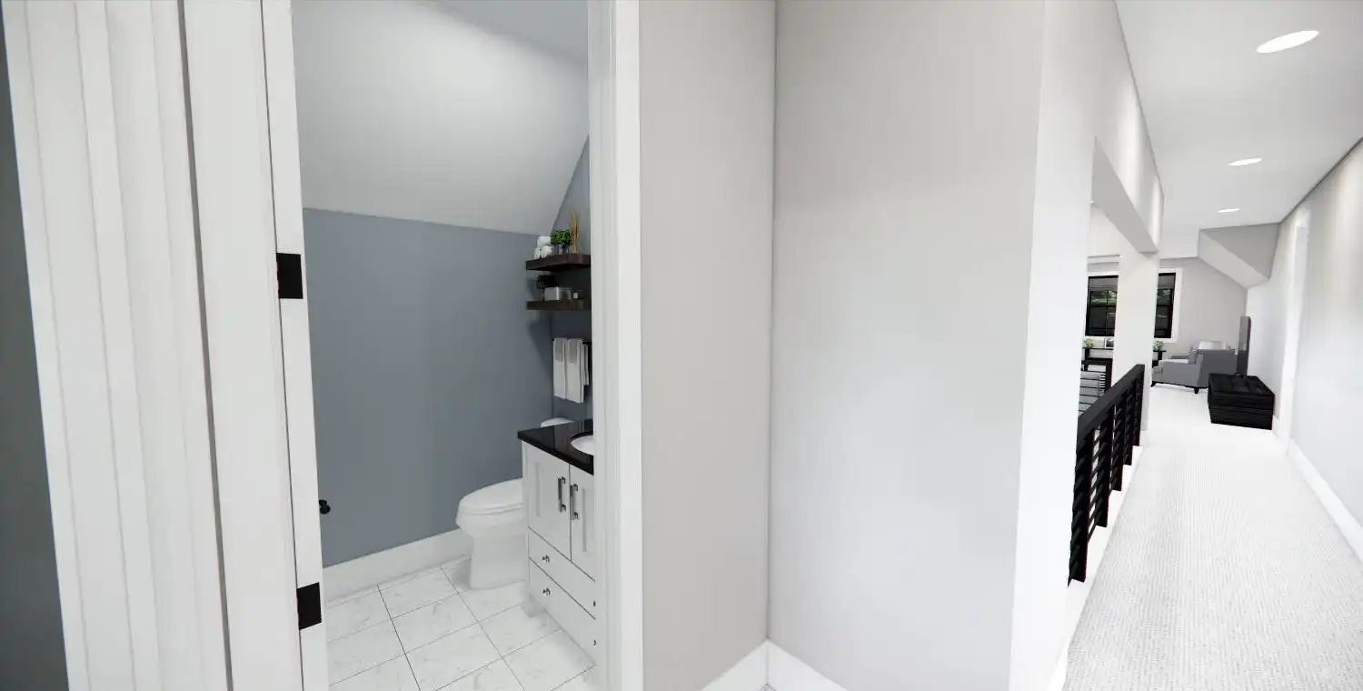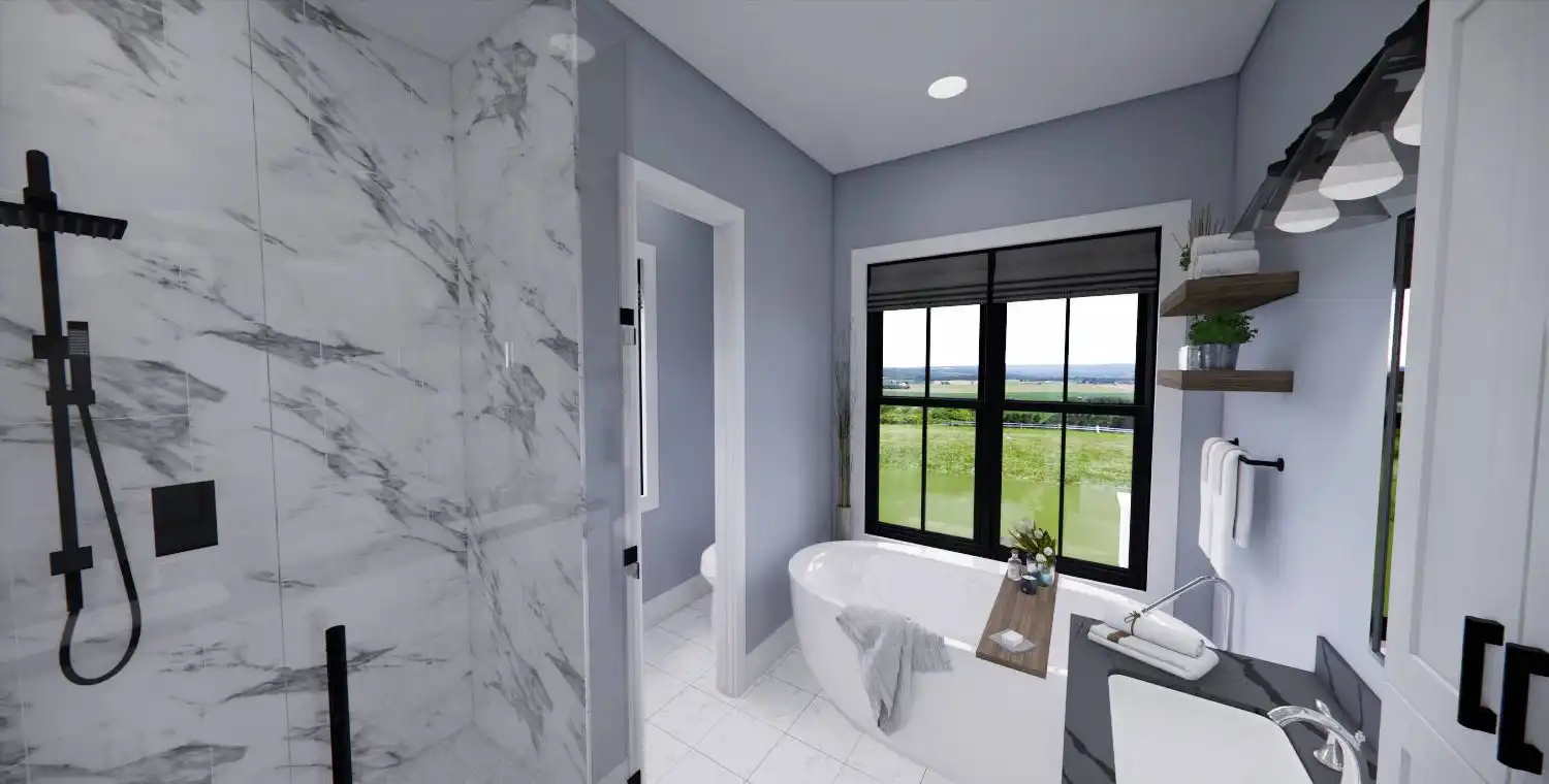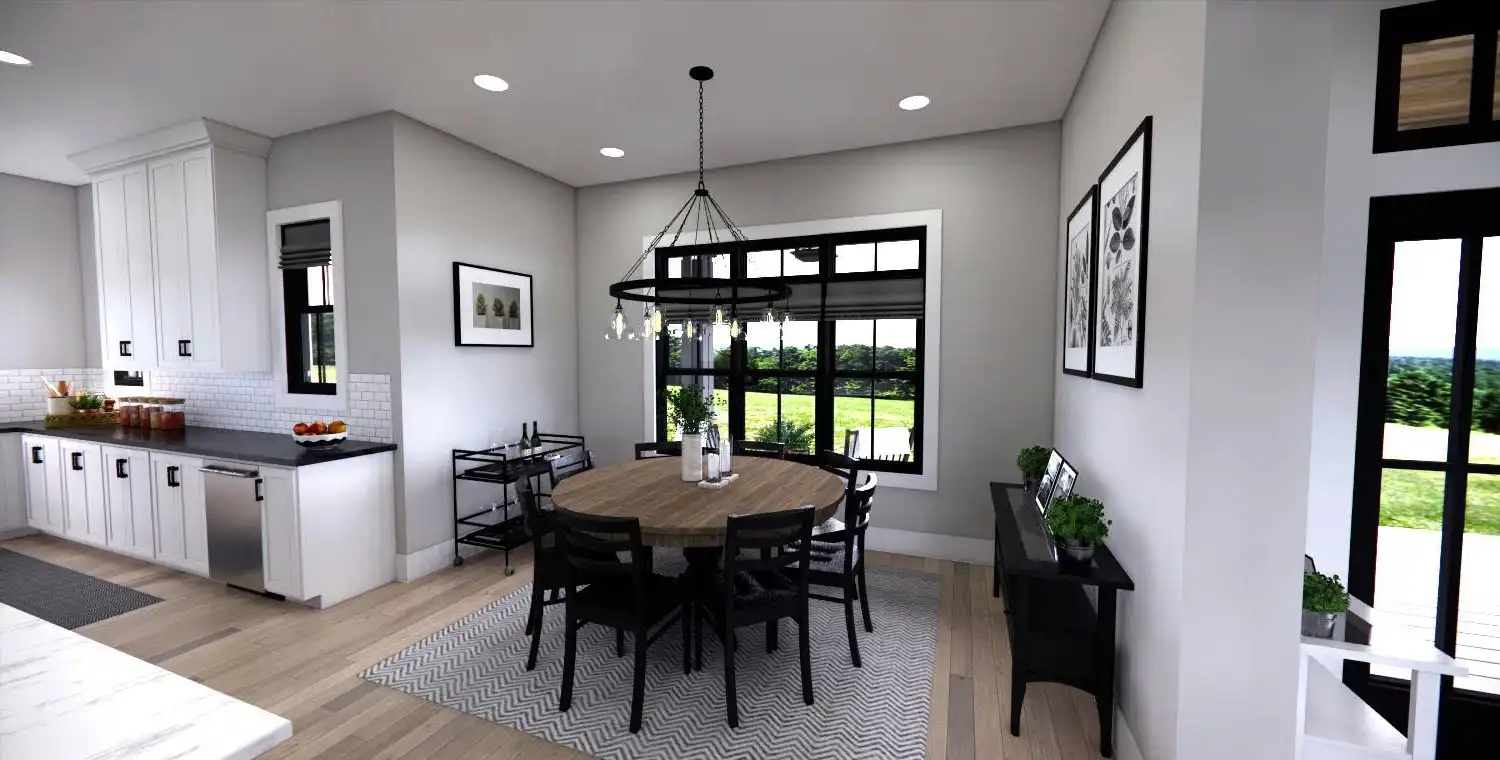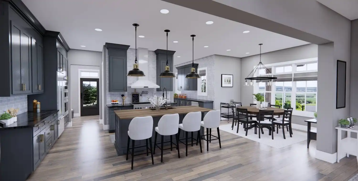 House Plan 10455 showcases a 3,482 sq. ft. contemporary farmhouse designed for both style and efficiency. This two-story home includes 4 bedrooms and 3.5 bathrooms, with a main-level master suite offering a luxurious bath and walk-in closet. The central living area features a two-story great room with a fireplace that seamlessly connects to the kitchen and dining space, fostering an open and welcoming environment. The kitchen is equipped with an island with seating for four, a walk-in pantry, and a prep kitchen, adding to its functionality. An expansive loft overlooks the great room below, providing additional living space. Expansive front and rear covered porches extend the living space outdoors, offering perfect spots for relaxation and gatherings. With its contemporary farmhouse aesthetics and thoughtful design, House Plan 10455 is ideal for those seeking a harmonious blend of comfort and functionality.