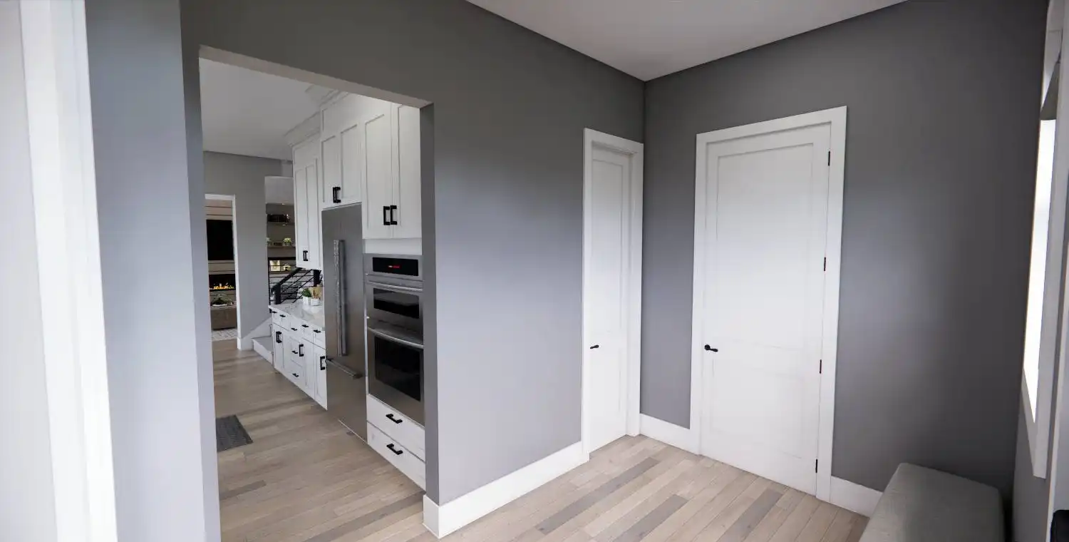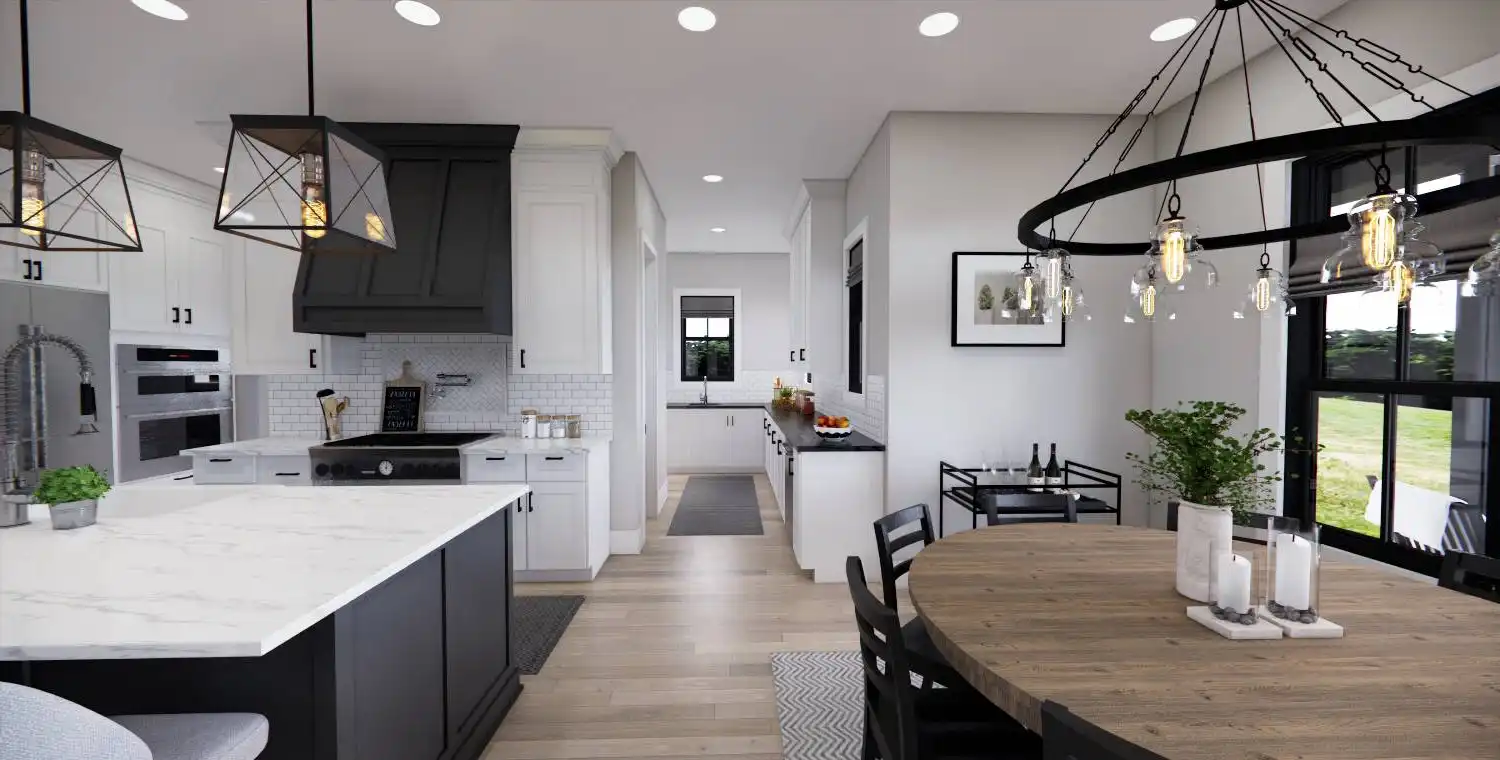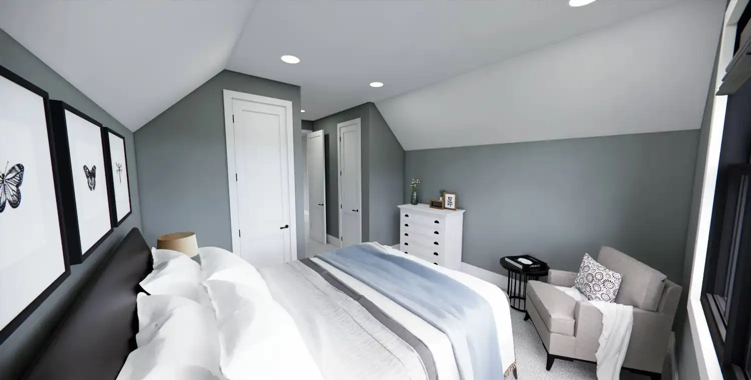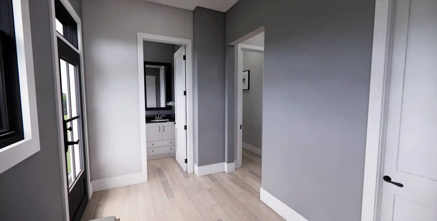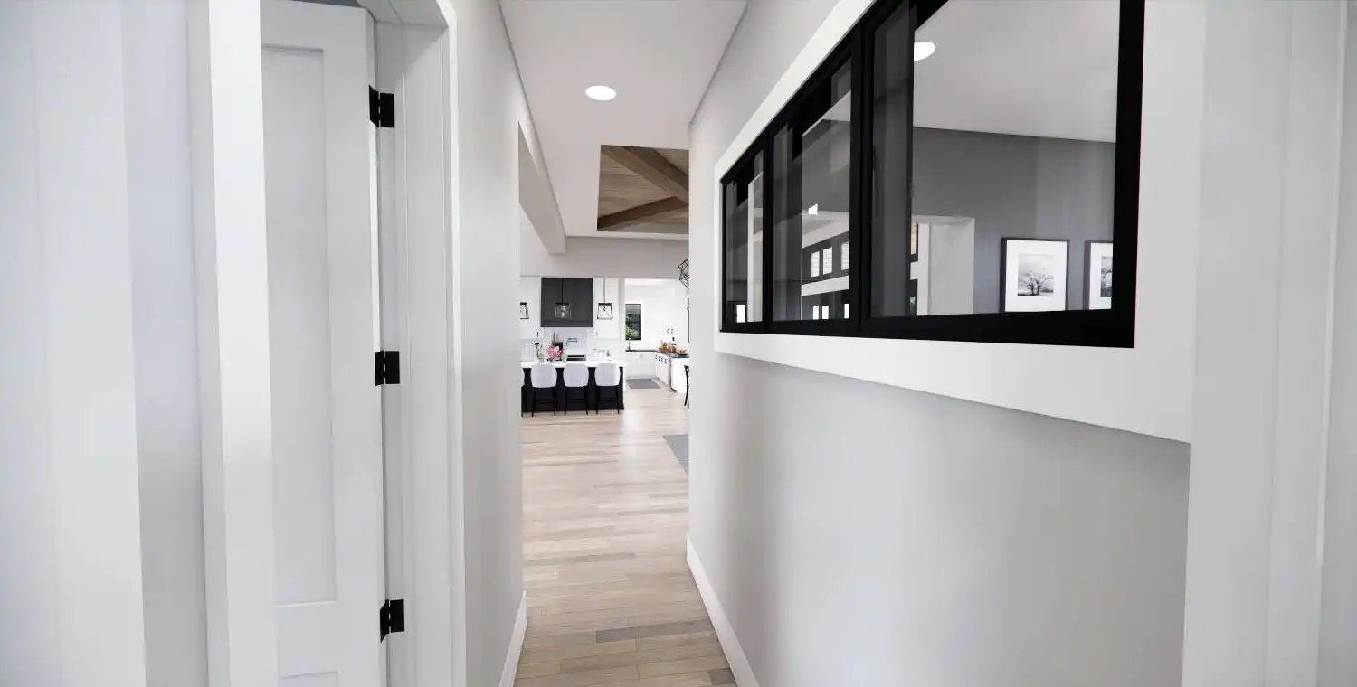 House Plan 10455 showcases a 3,482 sq. ft. contemporary farmhouse designed for both style and efficiency. This two-story home includes 4 bedrooms and 3.5 bathrooms, with a main-level master suite offering a luxurious bath and walk-in closet. The central living area features a two-story great room with a fireplace that seamlessly connects to the kitchen and dining space, fostering an open and welcoming environment. The kitchen is equipped with an island with seating for four, a walk-in pantry, and a prep kitchen, adding to its functionality. An expansive loft overlooks the great room below, providing additional living space. Expansive front and rear covered porches extend the living space outdoors, offering perfect spots for relaxation and gatherings. With its contemporary farmhouse aesthetics and thoughtful design, House Plan 10455 is ideal for those seeking a harmonious blend of comfort and functionality.