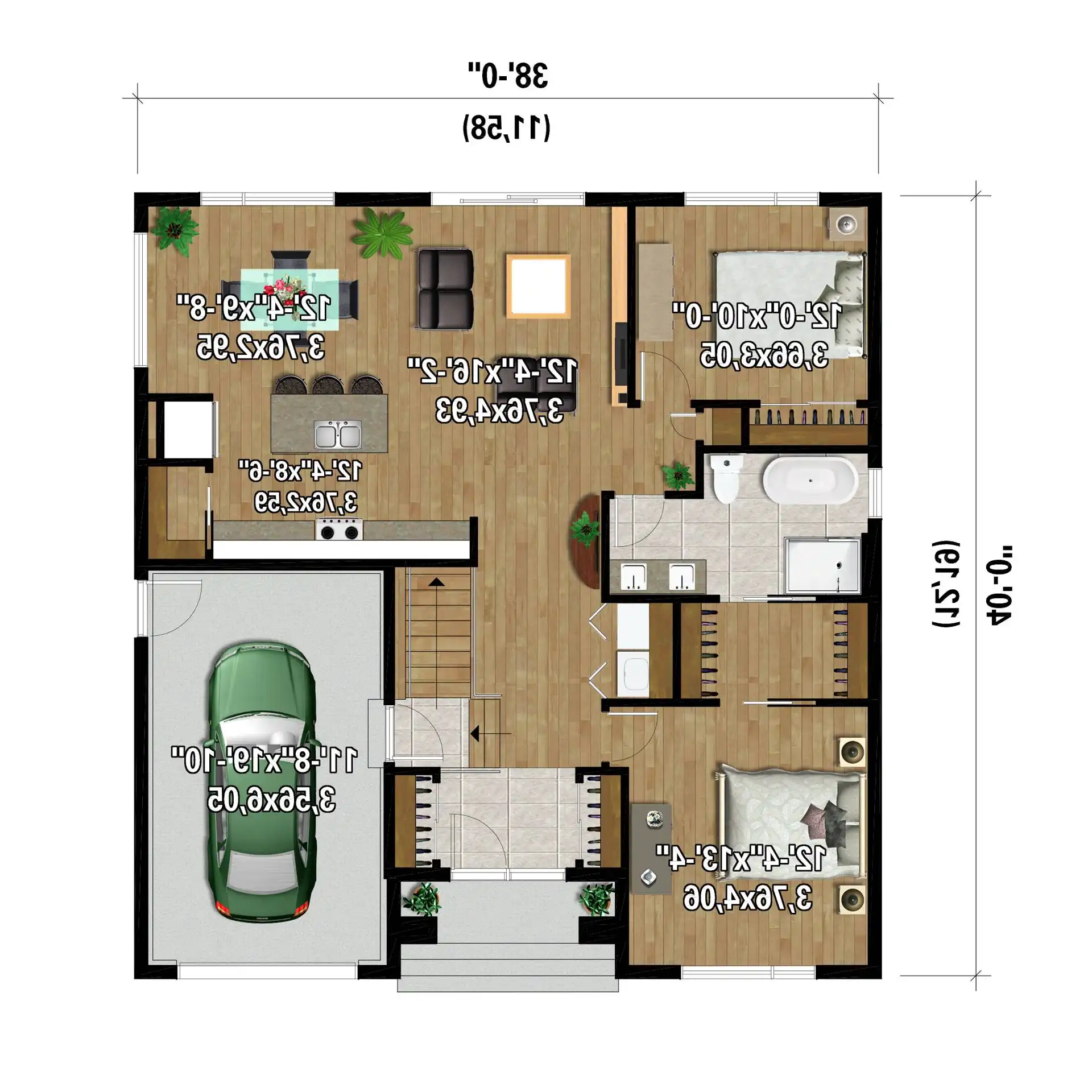 House Plan 10461 is a 1,196-square-foot contemporary ranch designed for practical, stylish living. This single-story layout features two bedrooms and one full bath with separate tub and shower spaces, conveniently connected by Jack-and-Jill doors. Ample storage includes large bedroom closets and a spacious front entry closet. The open-concept design seamlessly connects the kitchen, dining area, and living space, creating an inviting, airy feel. The kitchen offers a large island with bar seating for casual dining and easy meal prep. House Plan 10461 delivers a smart, efficient layout with modern comfort and convenience.