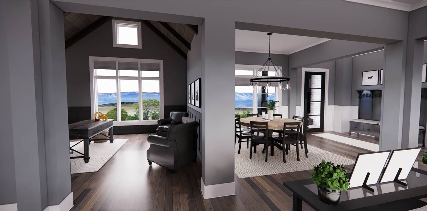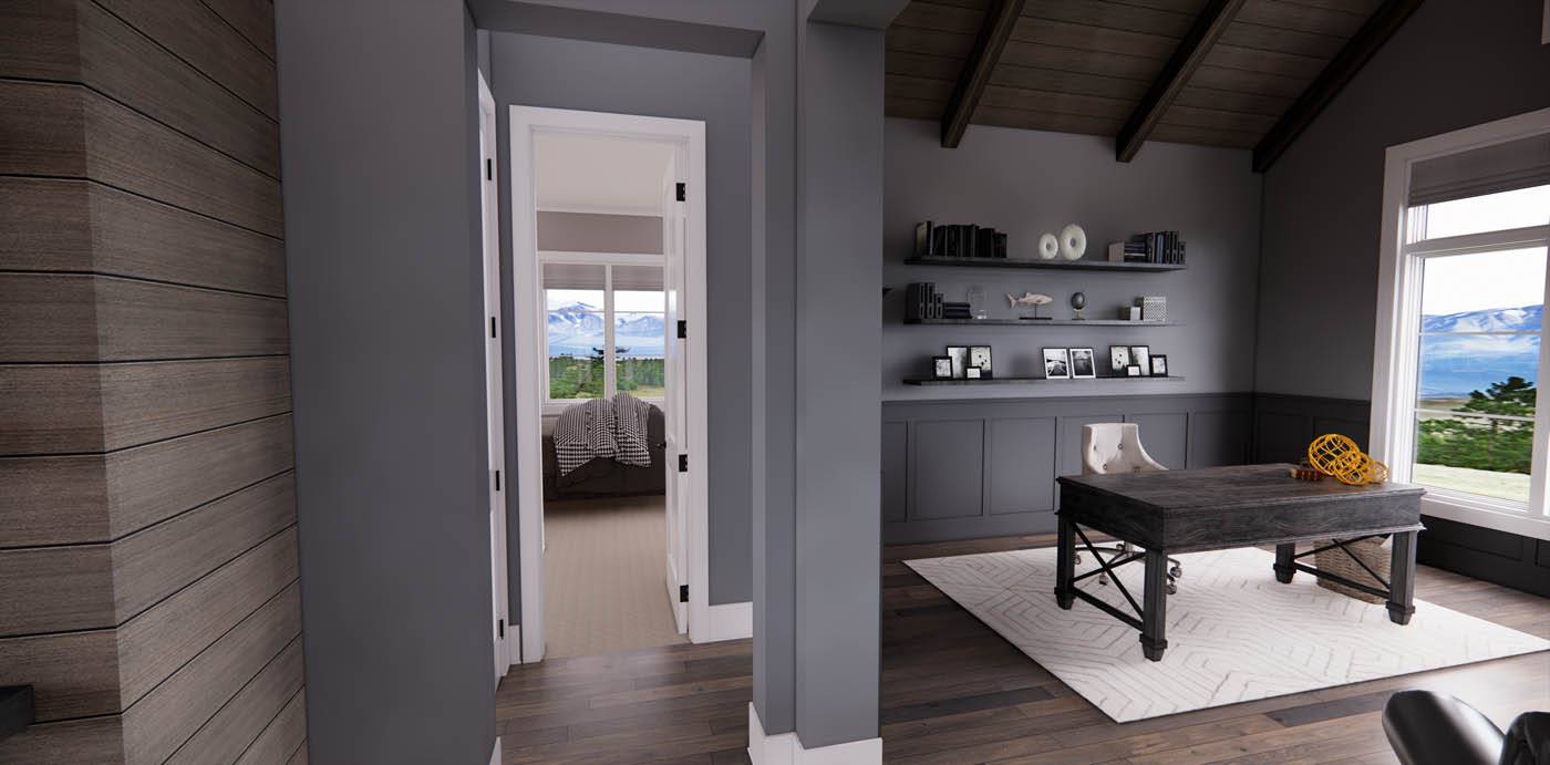 House Plan 10469 is a beautiful Modern Farmhouse with great curb appeal and a spacious, family-friendly layout. This 3,295 sq. ft. home features 5 bedrooms, 4.5 bathrooms, a 2-car garage, and a 287 sq. ft. bonus space on the upper level. The use of steel construction and wood accents adds rustic charm, while natural lighting and open sight lines provide a modern feel. The main level includes a convenient master suite and guest room, along with a prep kitchen, pantry, large center island with seating for six, walk-in closets in every bedroom, and a vaulted office. Perfect for gatherings, the great room with a built-in fireplace, semi-formal dining room, and covered rear porch—accessible from both the great room and master bedroom—create welcoming spaces for family and friends.