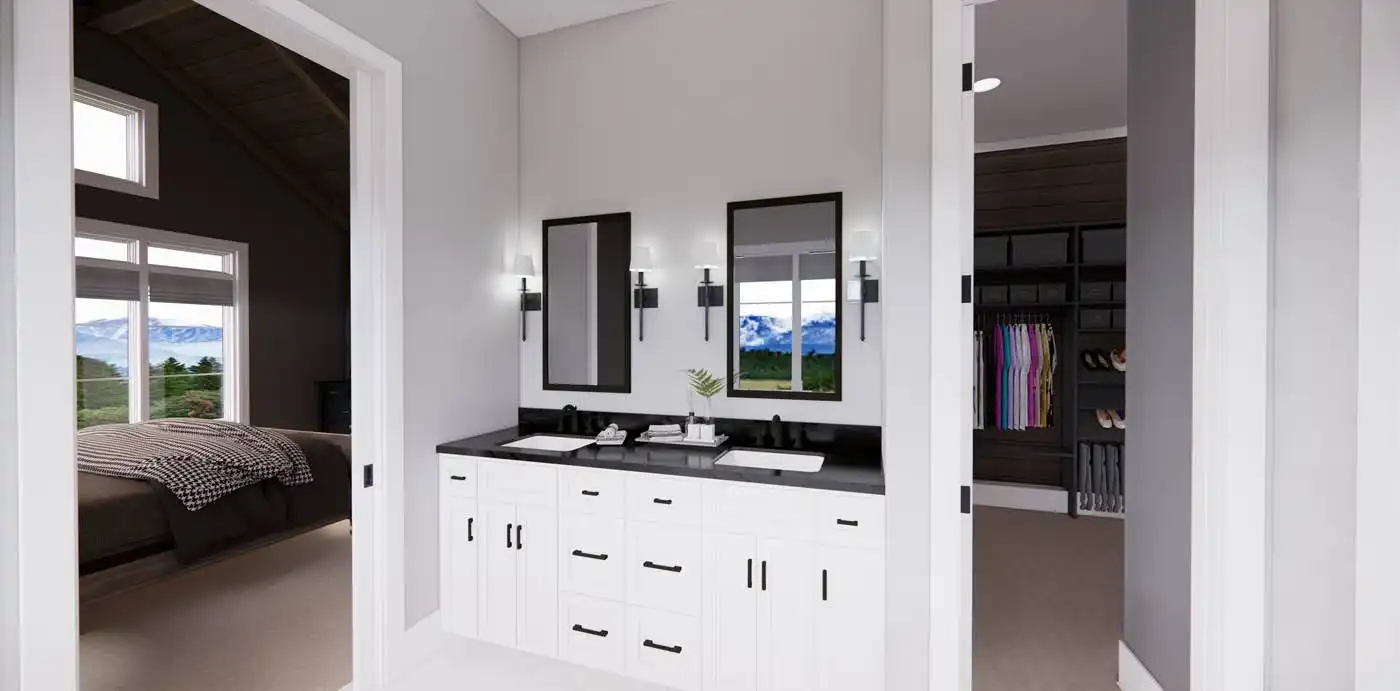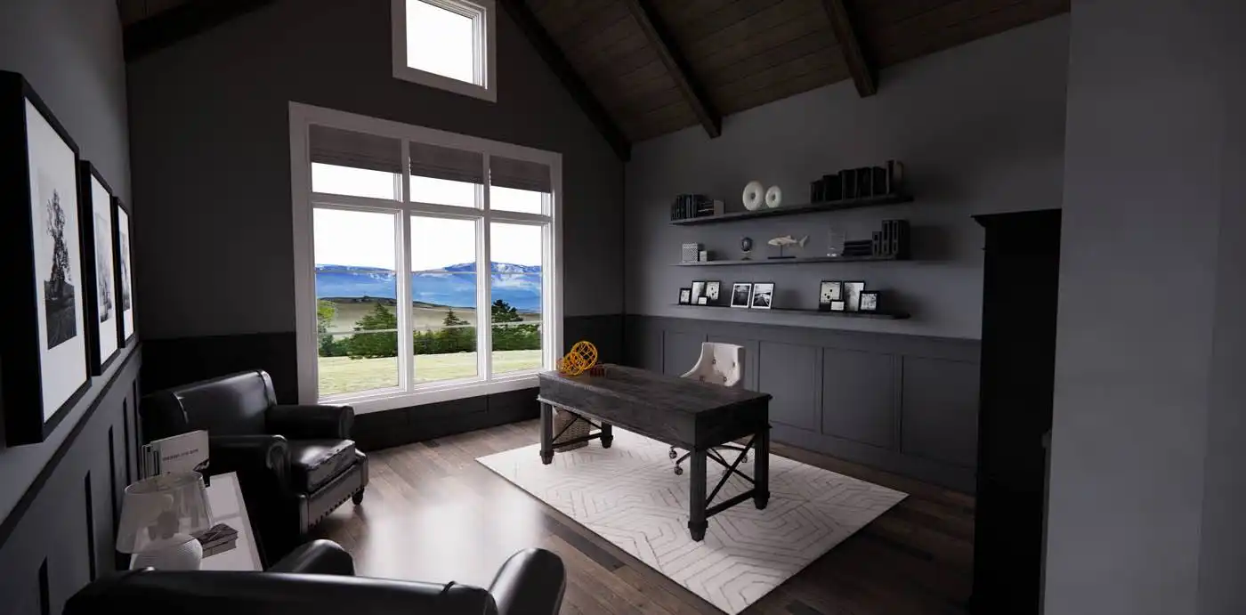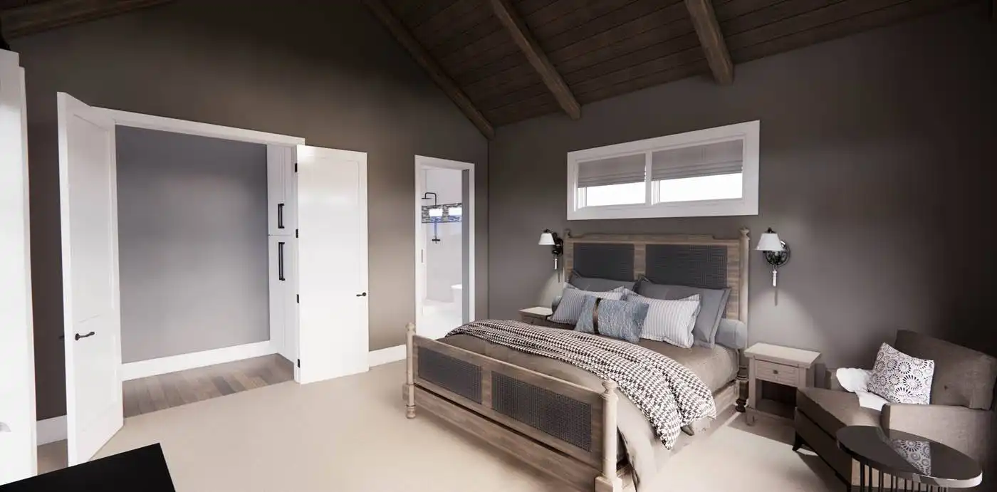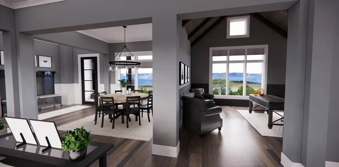 House Plan 10469 is a beautiful Modern Farmhouse with great curb appeal and a spacious, family-friendly layout. This 3,295 sq. ft. home features 5 bedrooms, 4.5 bathrooms, a 2-car garage, and a 287 sq. ft. bonus space on the upper level. The use of steel construction and wood accents adds rustic charm, while natural lighting and open sight lines provide a modern feel. The main level includes a convenient master suite and guest room, along with a prep kitchen, pantry, large center island with seating for six, walk-in closets in every bedroom, and a vaulted office. Perfect for gatherings, the great room with a built-in fireplace, semi-formal dining room, and covered rear porch—accessible from both the great room and master bedroom—create welcoming spaces for family and friends.