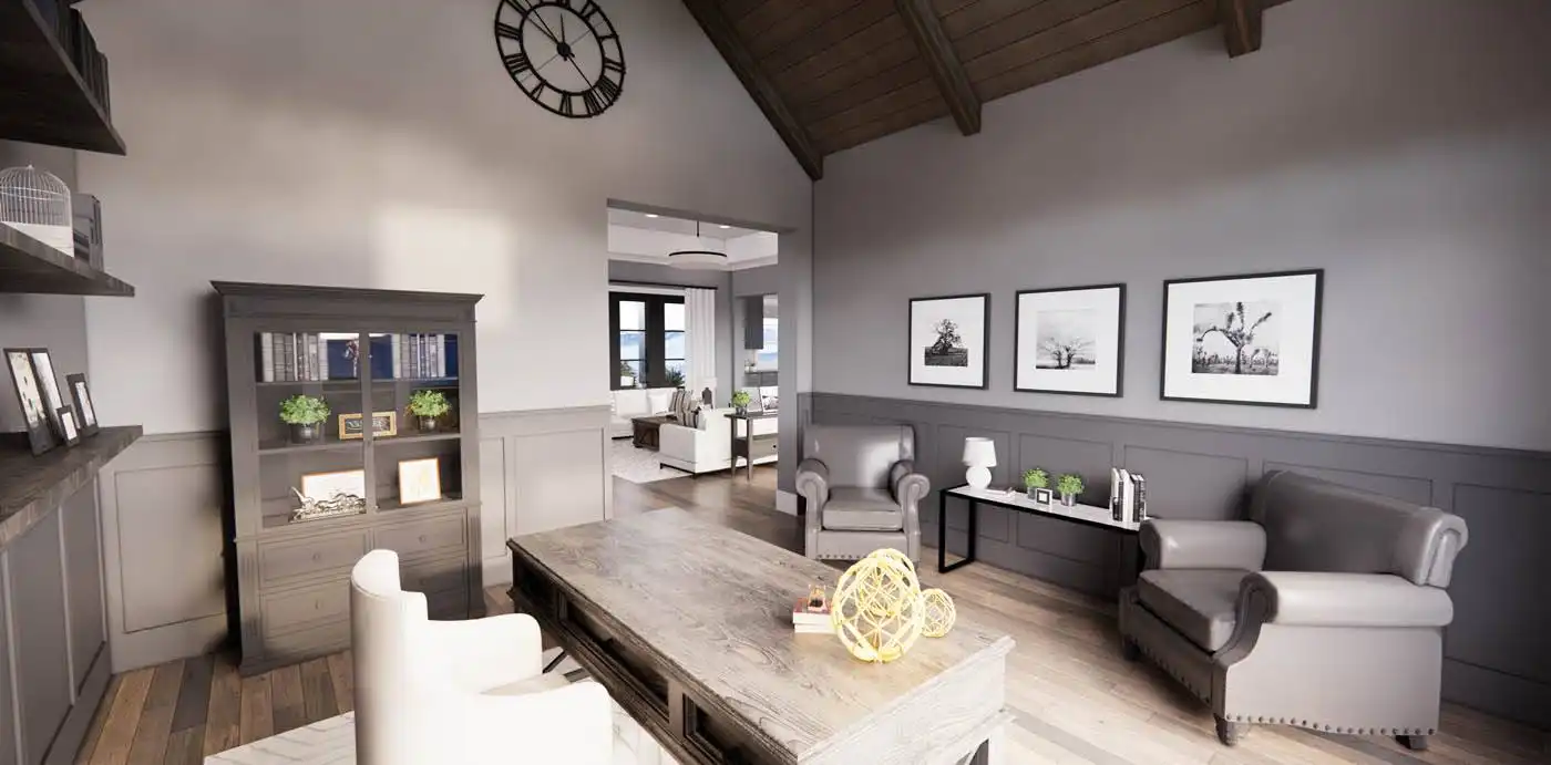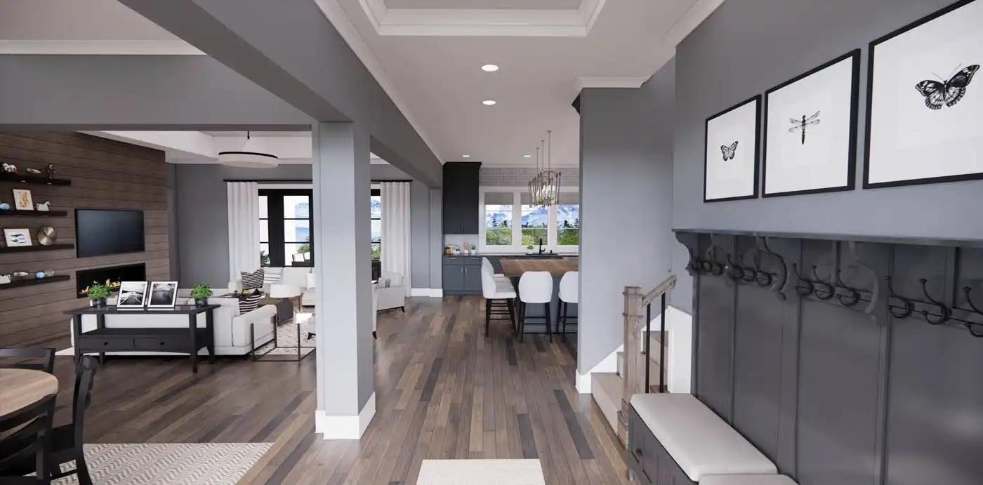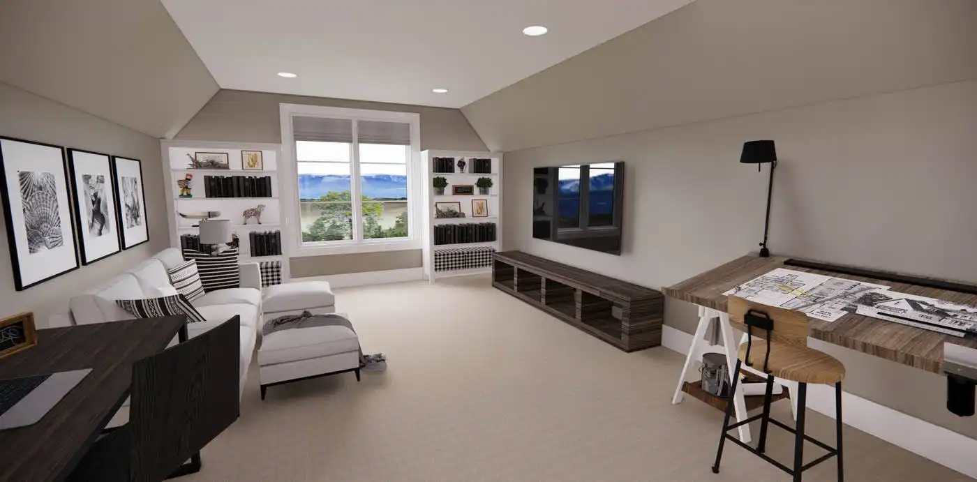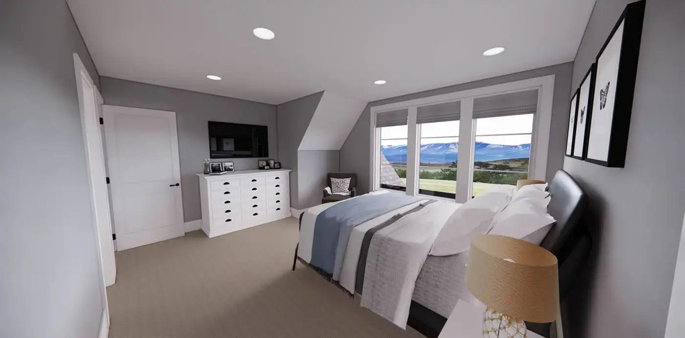 House Plan 10469 is a beautiful Modern Farmhouse with great curb appeal and a spacious, family-friendly layout. This 3,295 sq. ft. home features 5 bedrooms, 4.5 bathrooms, a 2-car garage, and a 287 sq. ft. bonus space on the upper level. The use of steel construction and wood accents adds rustic charm, while natural lighting and open sight lines provide a modern feel. The main level includes a convenient master suite and guest room, along with a prep kitchen, pantry, large center island with seating for six, walk-in closets in every bedroom, and a vaulted office. Perfect for gatherings, the great room with a built-in fireplace, semi-formal dining room, and covered rear porch—accessible from both the great room and master bedroom—create welcoming spaces for family and friends.