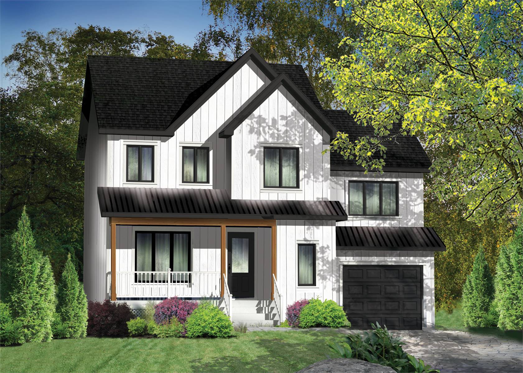 House Plan 10481 is a modest two-story farmhouse with 1,525 square feet, three bedrooms, one-and-a-half bathrooms, and a one-car garage. The uniquely split layout places the garage on the same level as the powder room inside while the main level slightly above features the open-concept great room and the airlock entry in front. Head upstairs and you'll find the loft and the laundry room on the next plateau, and then all the bedrooms and a large bath to share. What a nifty design!