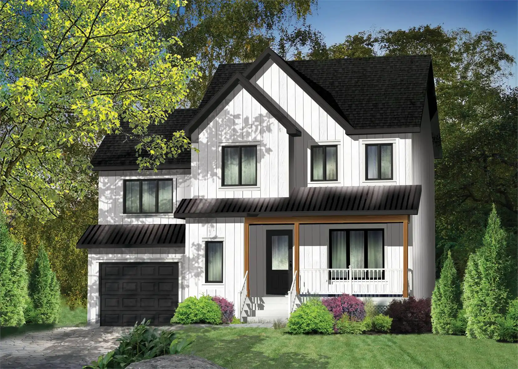 House Plan 10481 is a modest two-story farmhouse with 1,525 square feet, three bedrooms, one-and-a-half bathrooms, and a one-car garage. The uniquely split layout places the garage on the same level as the powder room inside while the main level slightly above features the open-concept great room and the airlock entry in front. Head upstairs and you'll find the loft and the laundry room on the next plateau, and then all the bedrooms and a large bath to share. What a nifty design!