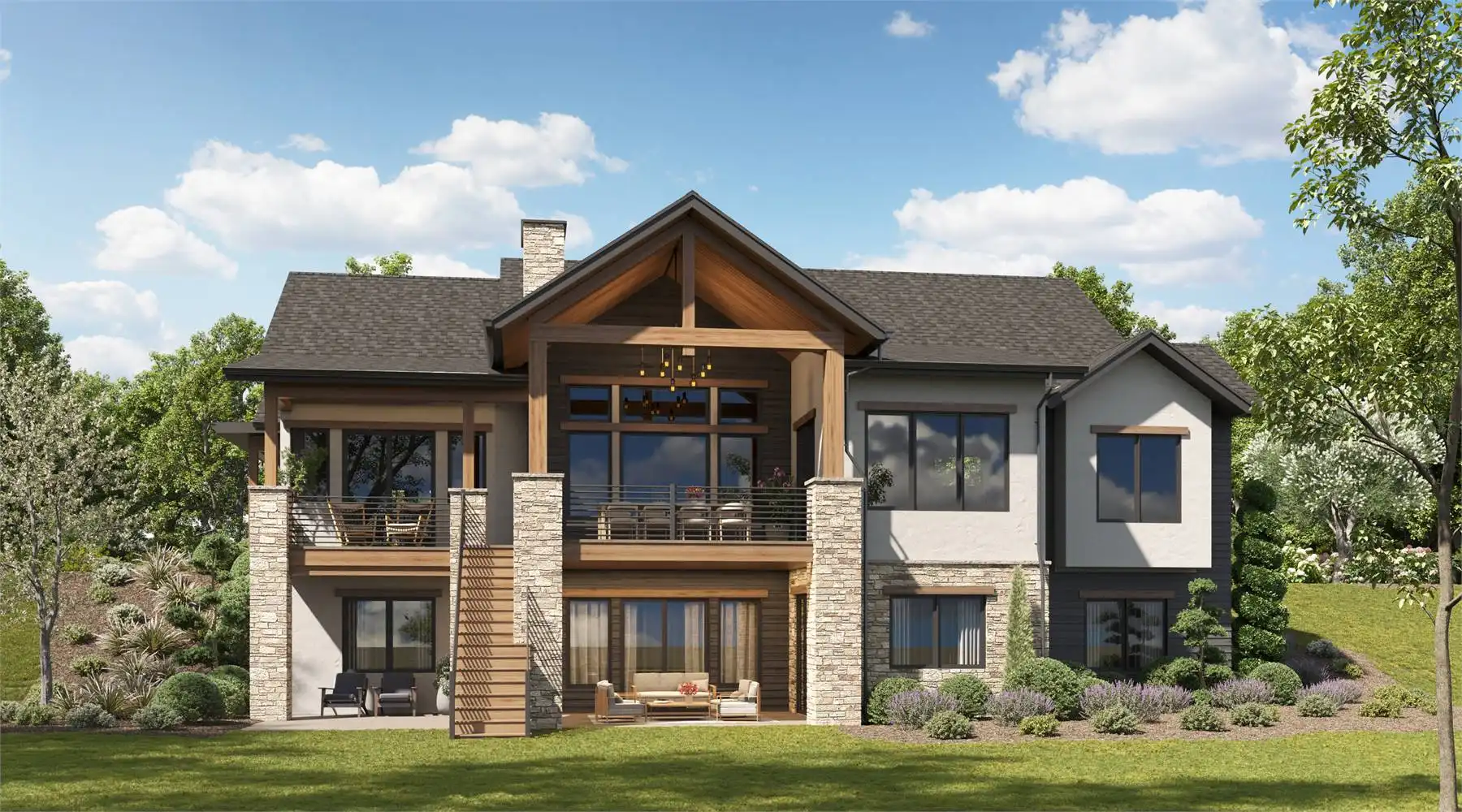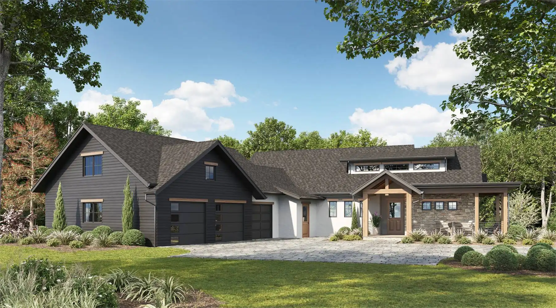 House Plan 10485 is a charming 2,156-square-foot Craftsman-style home designed for comfort and functionality. The main level offers two bedrooms in a private split-bedroom layout, 2.5 baths, and a versatile study or optional third bedroom with a shared Jack and Jill bathroom. A welcoming wraparound front porch leads to the great room with vaulted ceilings, a cozy fireplace, and access to a rear covered deck. The well-appointed L-shaped kitchen features a large island, walk-in pantry, and dining area, perfect for family meals and entertaining. A three-car garage adds convenience and ample storage. The optional 2,156-square-foot lower level includes two additional bedrooms, a family room, a media area, and a kitchen space—ideal for guest independence or a rental suite. House Plan 10485 combines Craftsman charm with practical, modern living.