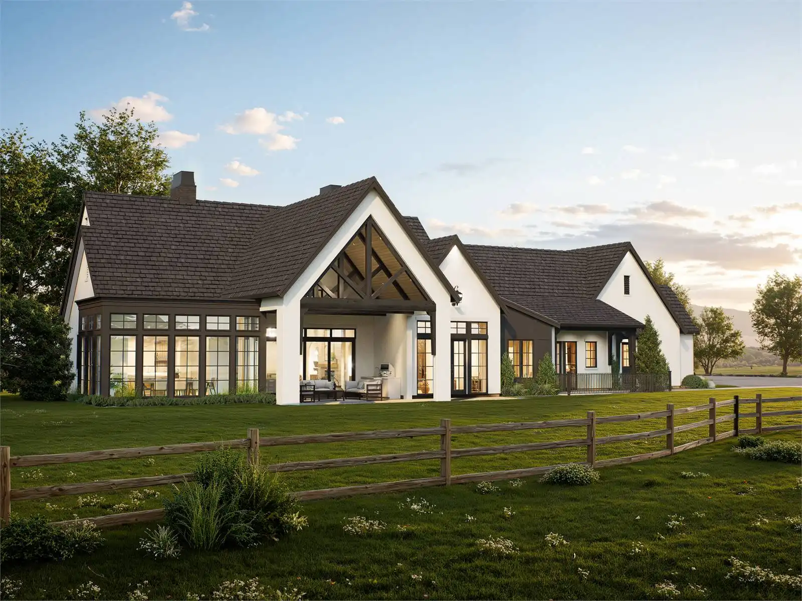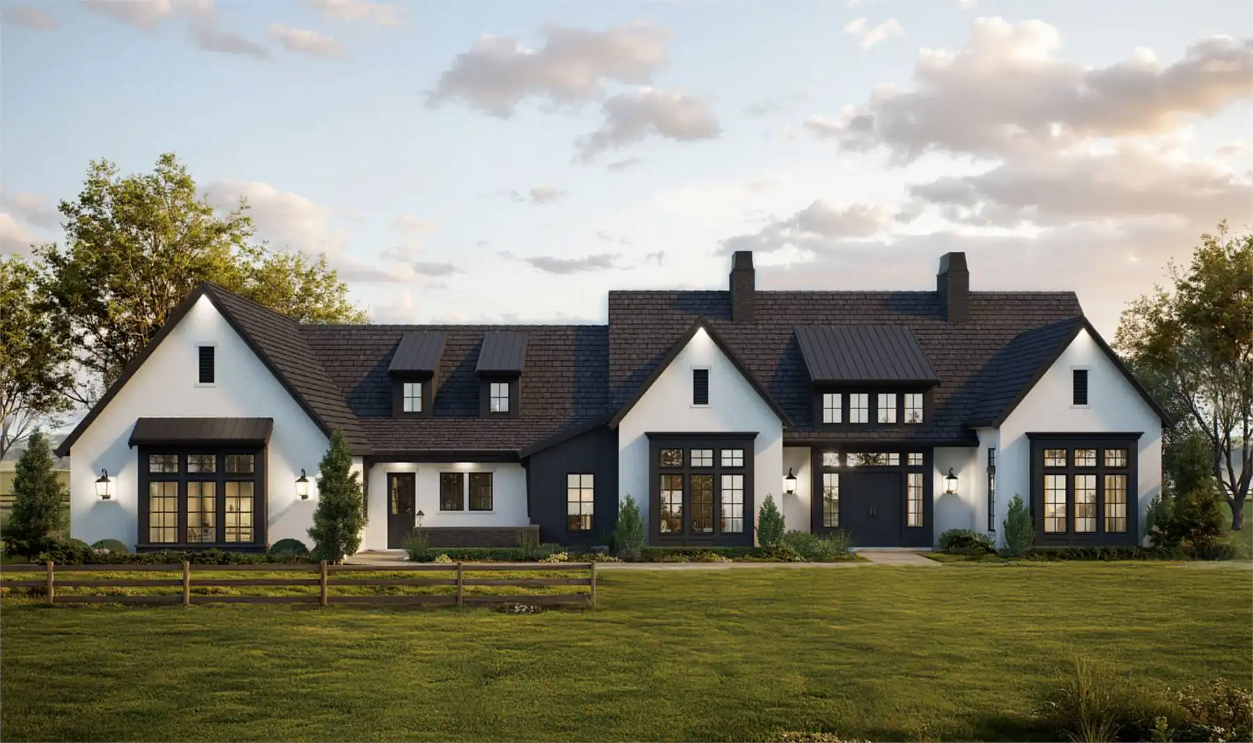 House Plan 10486 is a stunning 3,598-square-foot Transitional-style home designed for luxurious, modern living. The main floor offers two bedrooms, including a lavish primary suite, a guest suite, and 2.5 baths. Spacious living areas include a den, TV room, and an open-concept great room that flows into a chef’s kitchen—ideal for entertaining. Outdoor living spaces and a three-car garage add convenience and style. Choosing the optional lower level expands the home to 7,198 square feet, adding three more bedrooms and impressive recreational areas. House Plan 10486 perfectly balances elegance, comfort, and functionality.