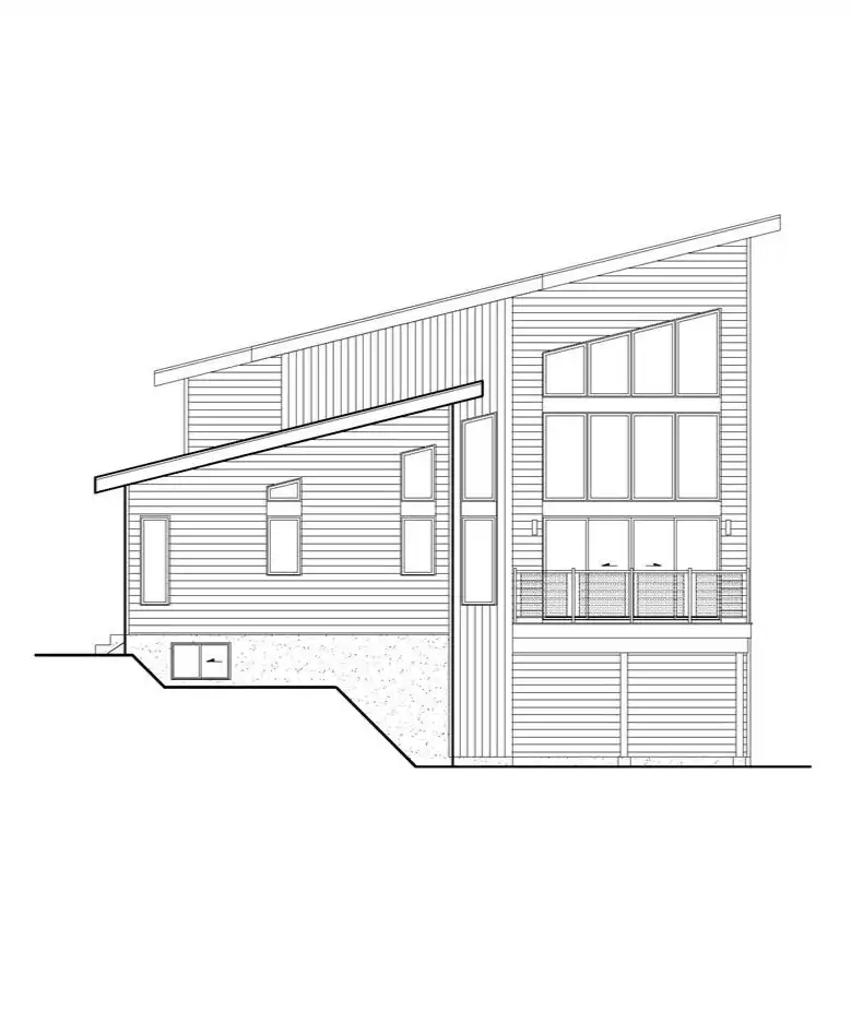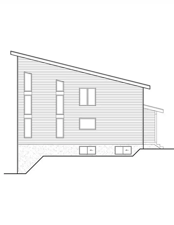 Wow! House Plan 10491 is an ultimate vacation home for a sloped lot with 2,814 square feet, five bedrooms, and three-and-a-half bathrooms spread across three levels. Just check out the walls of glass in back that are meant to be pointed toward views! On the main level, you'll enjoy an island kitchen, two-story living and dining areas, a five-piece primary suite, and a powder room with laundry. Upstairs, there's a lofted game room. Downstairs, you'll find a four-piece suite, three additional bedrooms, a hall bath, and the family room. This home is stacked to the brim with contemporary appeal yet comes in at a fairly modest size for what it has to offer!