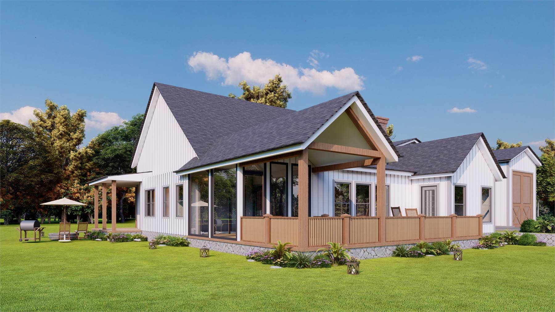 House Plan 10493 offers 2,407 sq. ft. of beautifully arranged living space wrapped in country charm and practical appeal. This 3-bedroom, 2.5-bathroom ranch-style layout keeps everything on one level, with the primary suite thoughtfully placed for privacy and convenience—complete with a luxurious en-suite bath and a walk-in closet that links directly to the mudroom. The main living area invites you in with a bright and airy great room, which flows into the dining space and a spacious kitchen outfitted with a large center island and wide passthrough opening. From casual family dinners to entertaining guests, the open concept design handles it all with ease. Outside, you’ll find multiple covered porches for year-round enjoyment, while the oversized garage includes both front and rear doors plus a full RV bay—a rare and valuable addition. Need more room? An optional bonus suite above the garage adds 432 sq. ft., perfect for guests or a rental opportunity. Whether you're looking for flexibility, function, or flair, this plan delivers on all fronts.