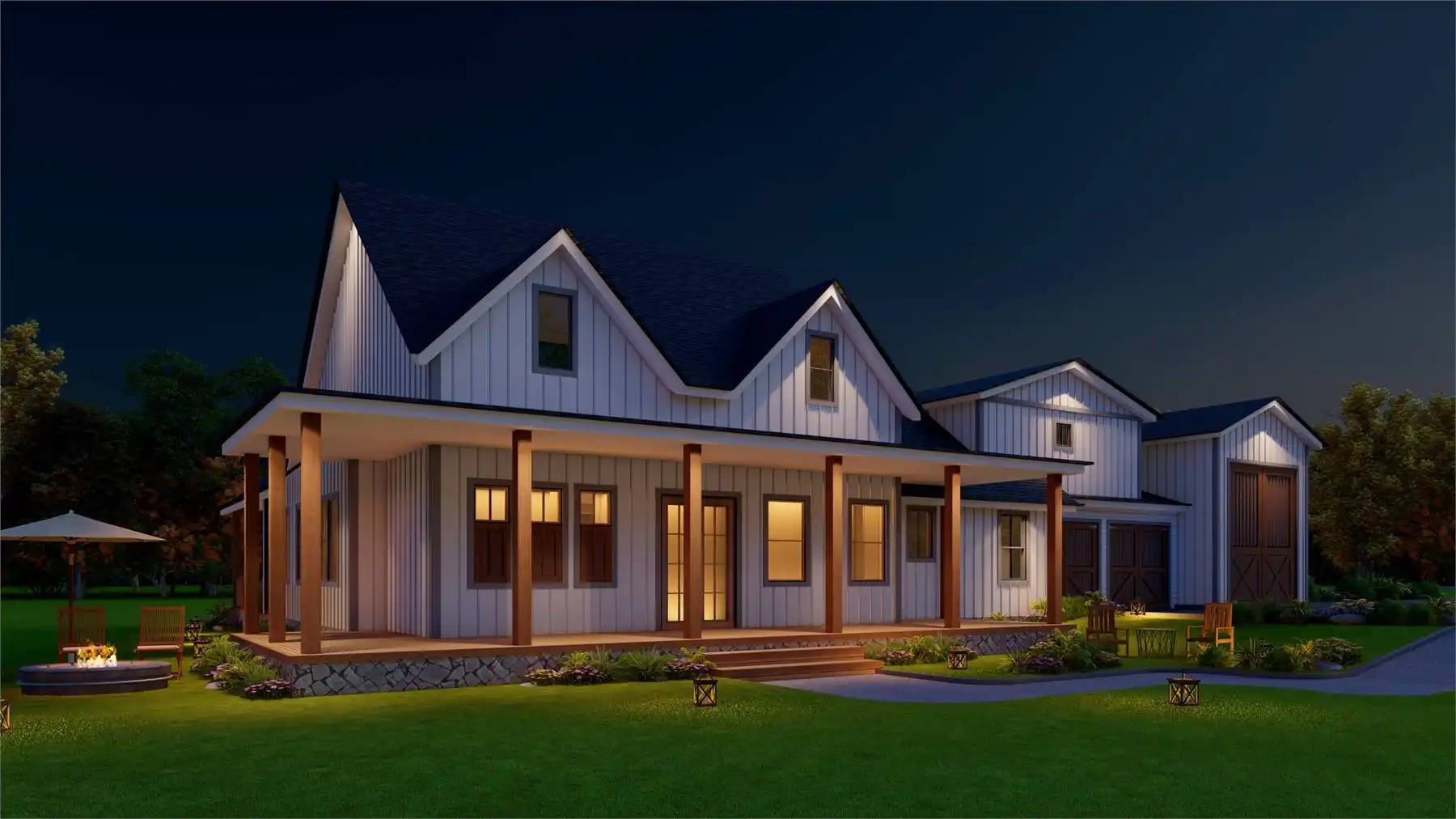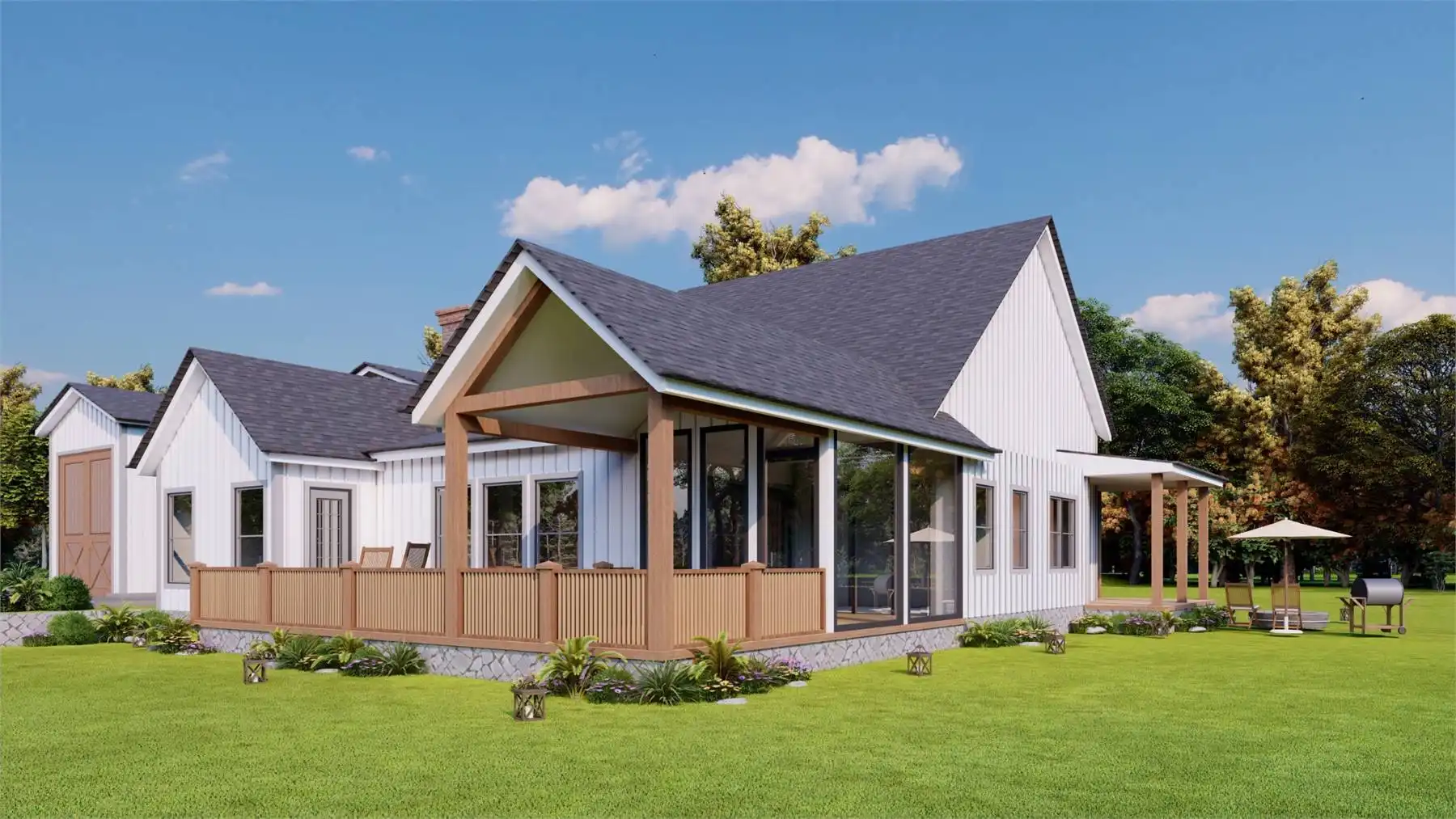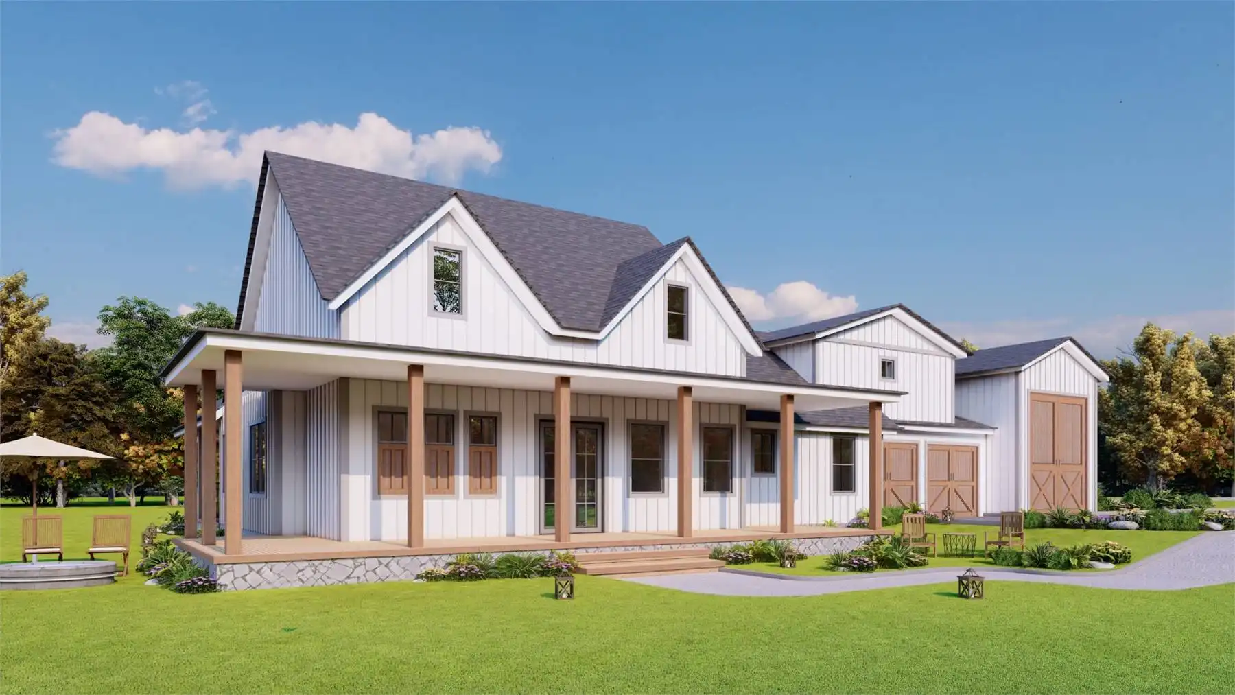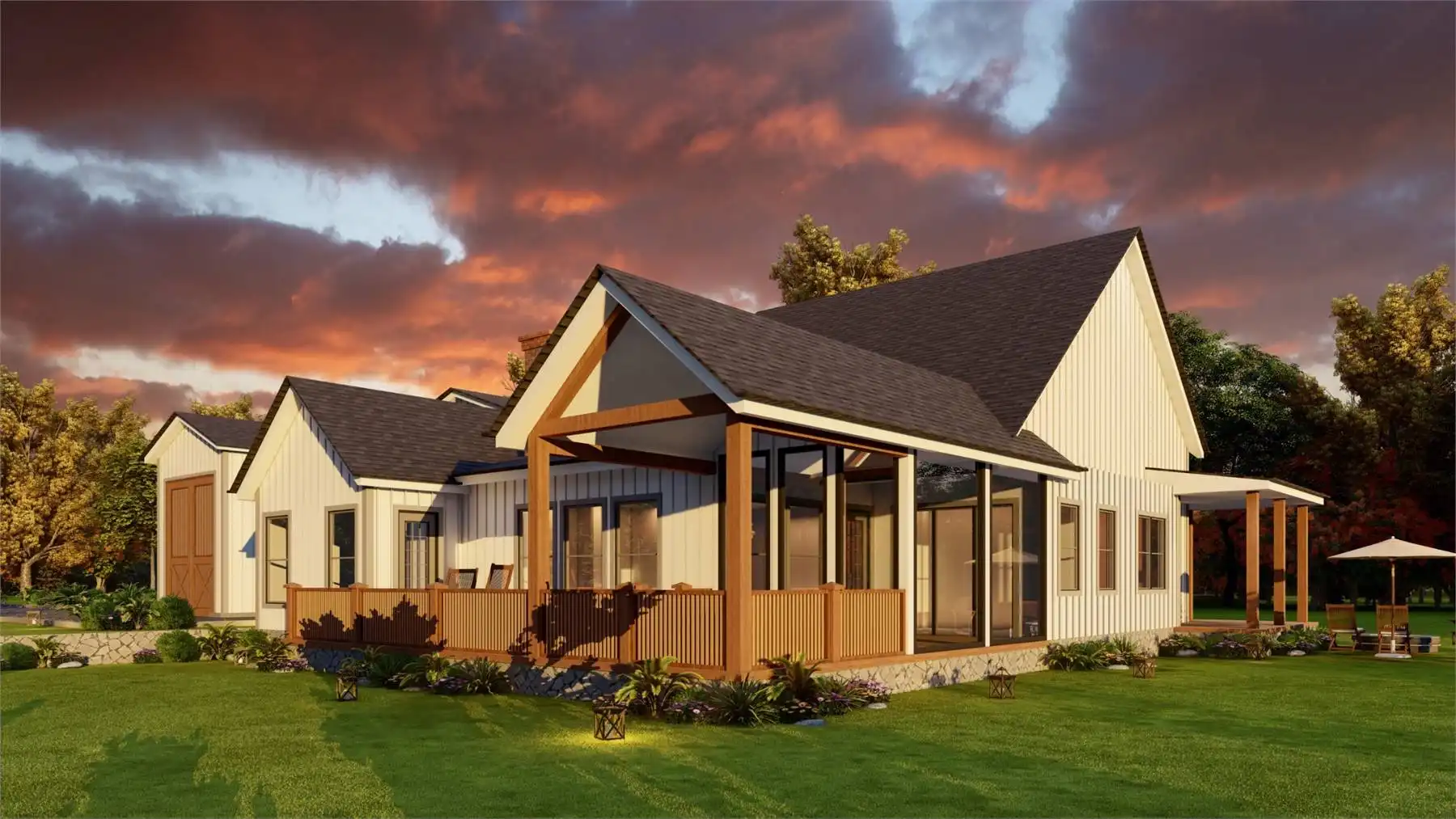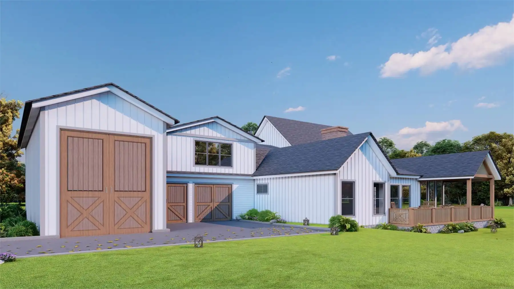 House Plan 10493 offers 2,407 sq. ft. of beautifully arranged living space wrapped in country charm and practical appeal. This 3-bedroom, 2.5-bathroom ranch-style layout keeps everything on one level, with the primary suite thoughtfully placed for privacy and convenience—complete with a luxurious en-suite bath and a walk-in closet that links directly to the mudroom. The main living area invites you in with a bright and airy great room, which flows into the dining space and a spacious kitchen outfitted with a large center island and wide passthrough opening. From casual family dinners to entertaining guests, the open concept design handles it all with ease. Outside, you’ll find multiple covered porches for year-round enjoyment, while the oversized garage includes both front and rear doors plus a full RV bay—a rare and valuable addition. Need more room? An optional bonus suite above the garage adds 432 sq. ft., perfect for guests or a rental opportunity. Whether you're looking for flexibility, function, or flair, this plan delivers on all fronts.
