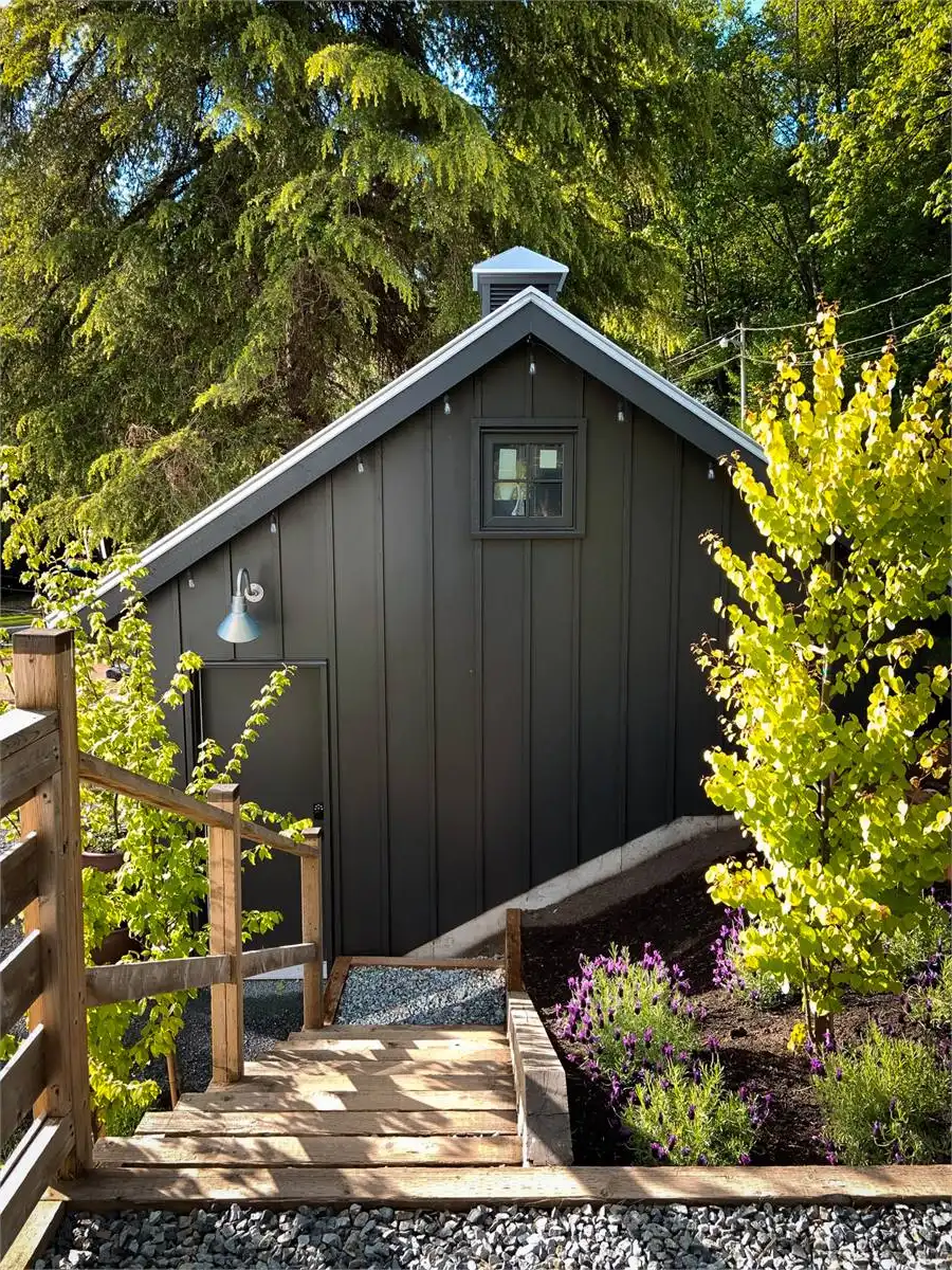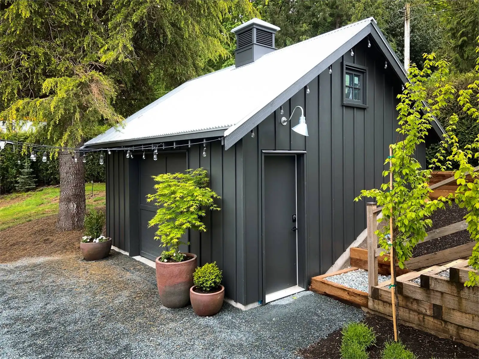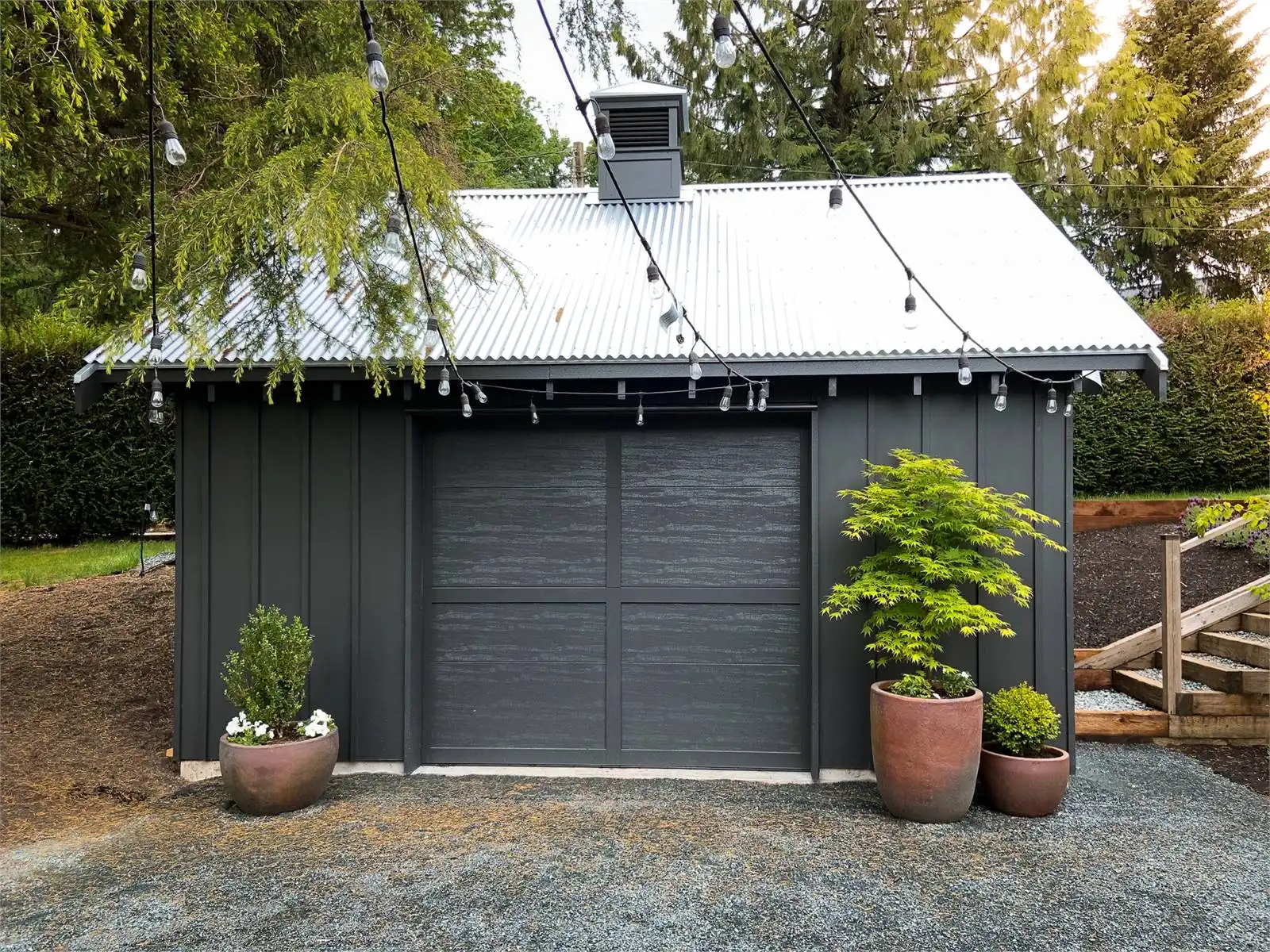 Plan 10502 is a 272-square-foot shed with a rectangular footprint and a gable roof. It has a garage door in front and a swinging door on the side. Complete your yard and add nifty storage with a shed plan like this!