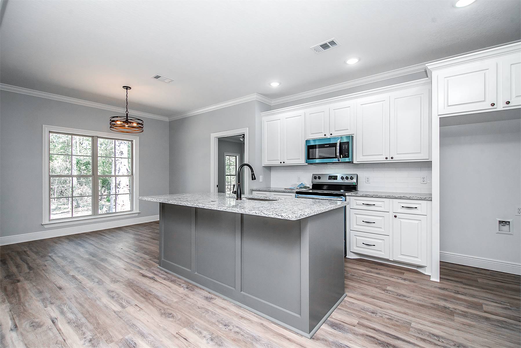 House Plan 10504 showcases a 1,798 sq. ft. contemporary-style home designed for both style and efficiency. This single-story home includes 4 bedrooms and 2 bathrooms, with a primary suite offering a luxurious bath, walk-in closet, and direct access to the laundry room for added convenience. The central living area features a spacious great room with a cozy fireplace that seamlessly connects to the kitchen and dining space, fostering an open and welcoming environment. The kitchen is equipped with a large island with seating, a walk-in pantry, and ample cabinetry, adding to its functionality. A split-bedroom layout ensures privacy, with three additional bedrooms sharing a well-appointed bathroom on the opposite side of the home. Expansive front and rear covered porches extend the living space outdoors, offering perfect spots for relaxation and gatherings. With its contemporary aesthetics and thoughtful design, House Plan 10504 is ideal for those seeking a harmonious blend of comfort and functionality.
