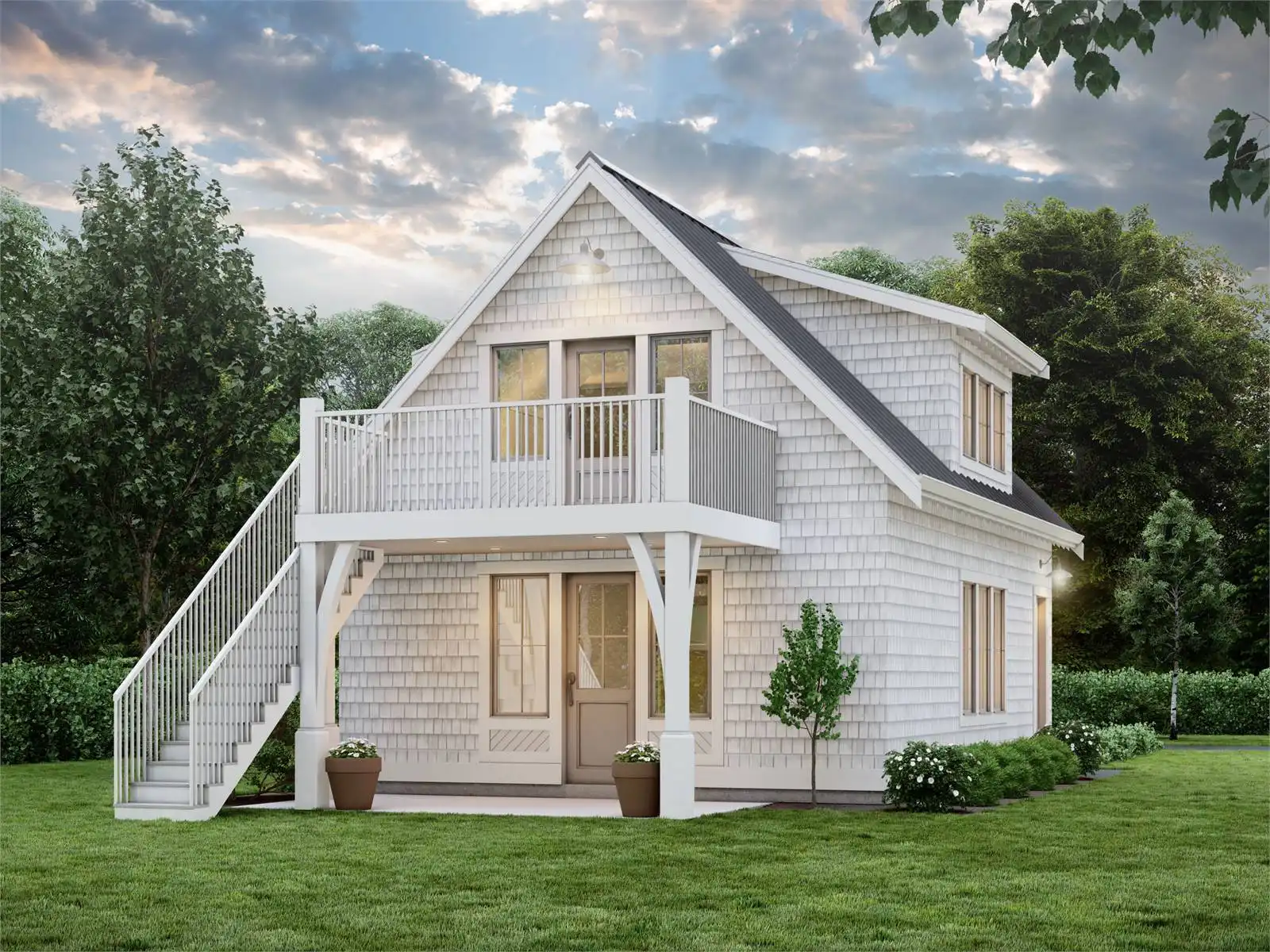 If you need to add some flexibility to your property, House Plan 10507 could be the perfect fit! This cottage-style design offers a two-car garage on the first level and a 553-square-foot ADU with one bedroom and one bathroom above. The entries are on opposite sides, so you may not notice that this is a two-in-one plan! Make sure to look at the layout of the ADU--with its cozy living, eat-in kitchen, and bedroom with a built-in wardrobe, this design packs a ton of charm.
