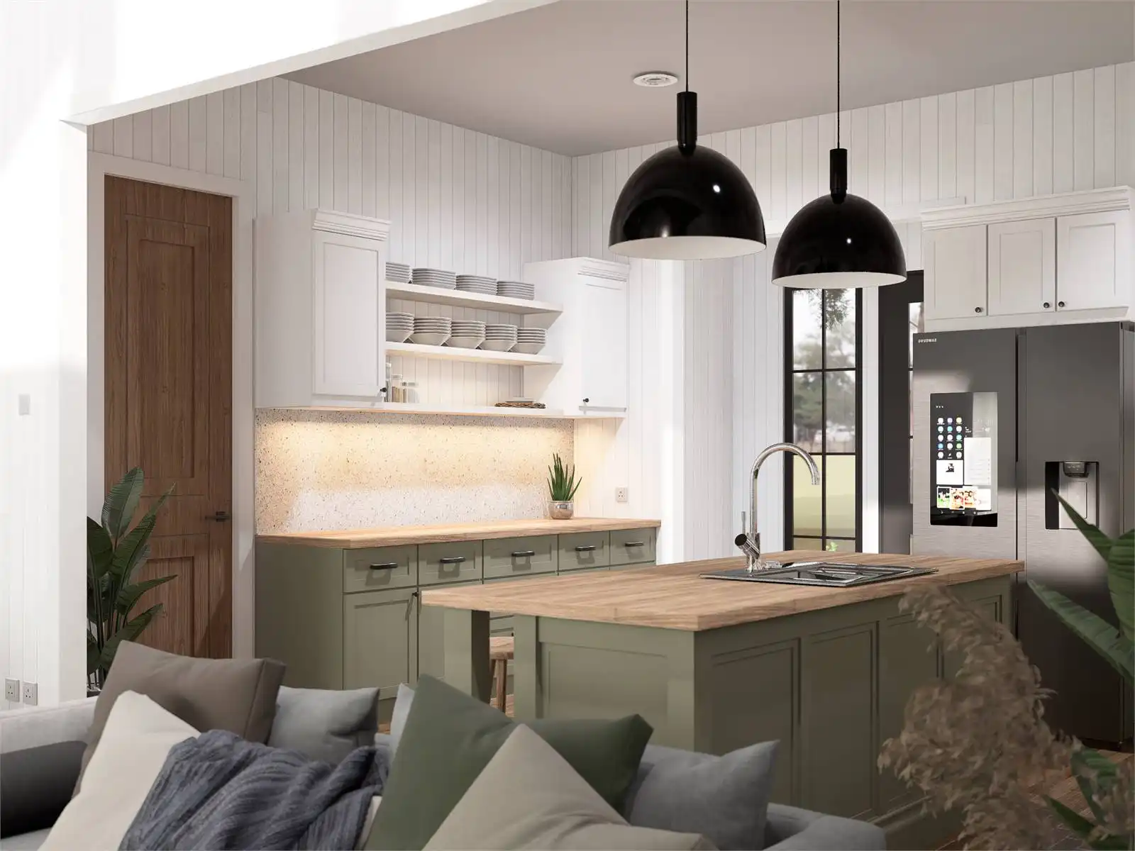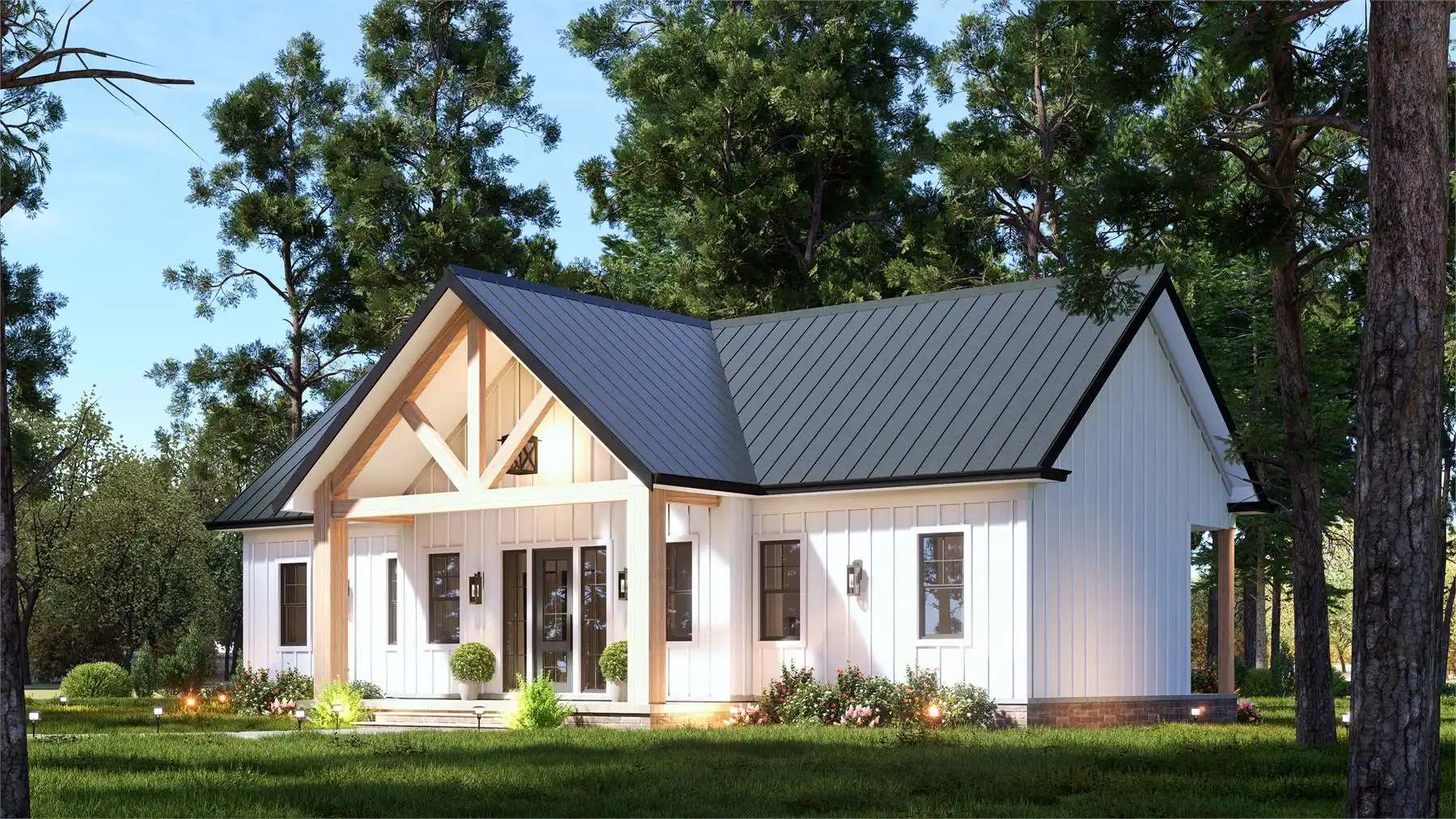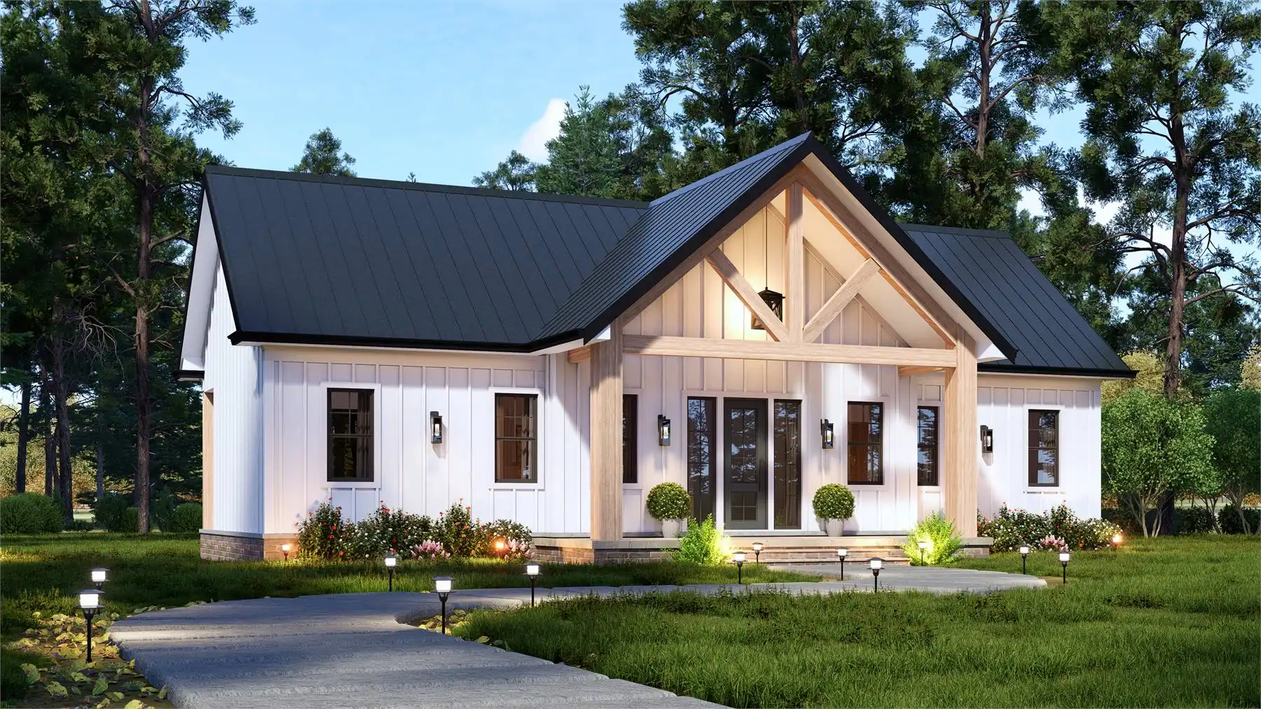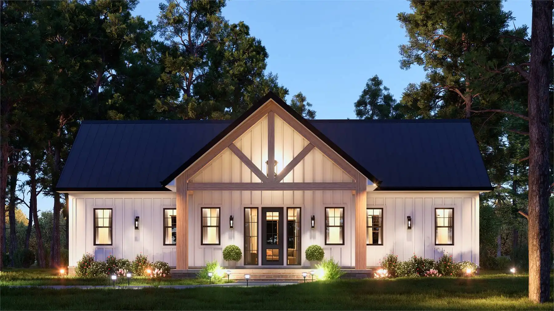 House Plan 10509 is a charming 1,392 square foot single-story ranch that blends cozy appeal with modern convenience. Featuring 2 bedrooms and 2 bathrooms, this inviting design offers an open and comfortable layout perfect for relaxed living. The keeping/family room showcases vaulted ceilings and a fireplace, creating a warm and airy atmosphere, while the kitchen impresses with a large island, walk-in pantry, and butler’s pantry for ample storage and prep space. Outdoor living shines with a covered front porch spanning 177 square feet and a spacious rear porch measuring 540 square feet, perfect for relaxing or entertaining. Built on a slab foundation with stick-framed roofing and a 10:12 roof pitch, this home measures 56 feet wide by 55 feet deep, with a building height of 21 feet 11 inches and a first-floor ceiling height of 10 feet 1 inch. House Plan 10509 offers modern living with timeless ranch-style appeal.