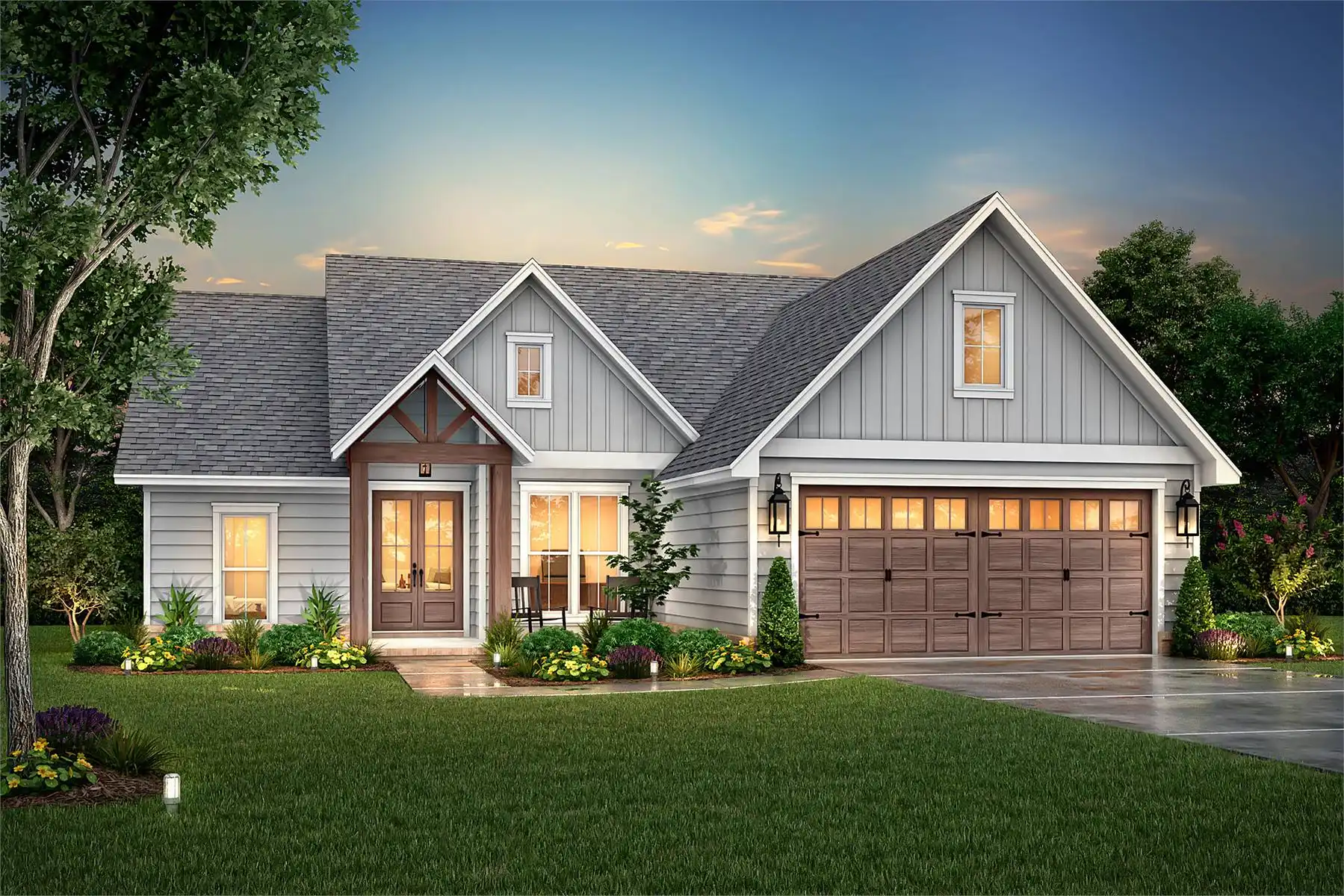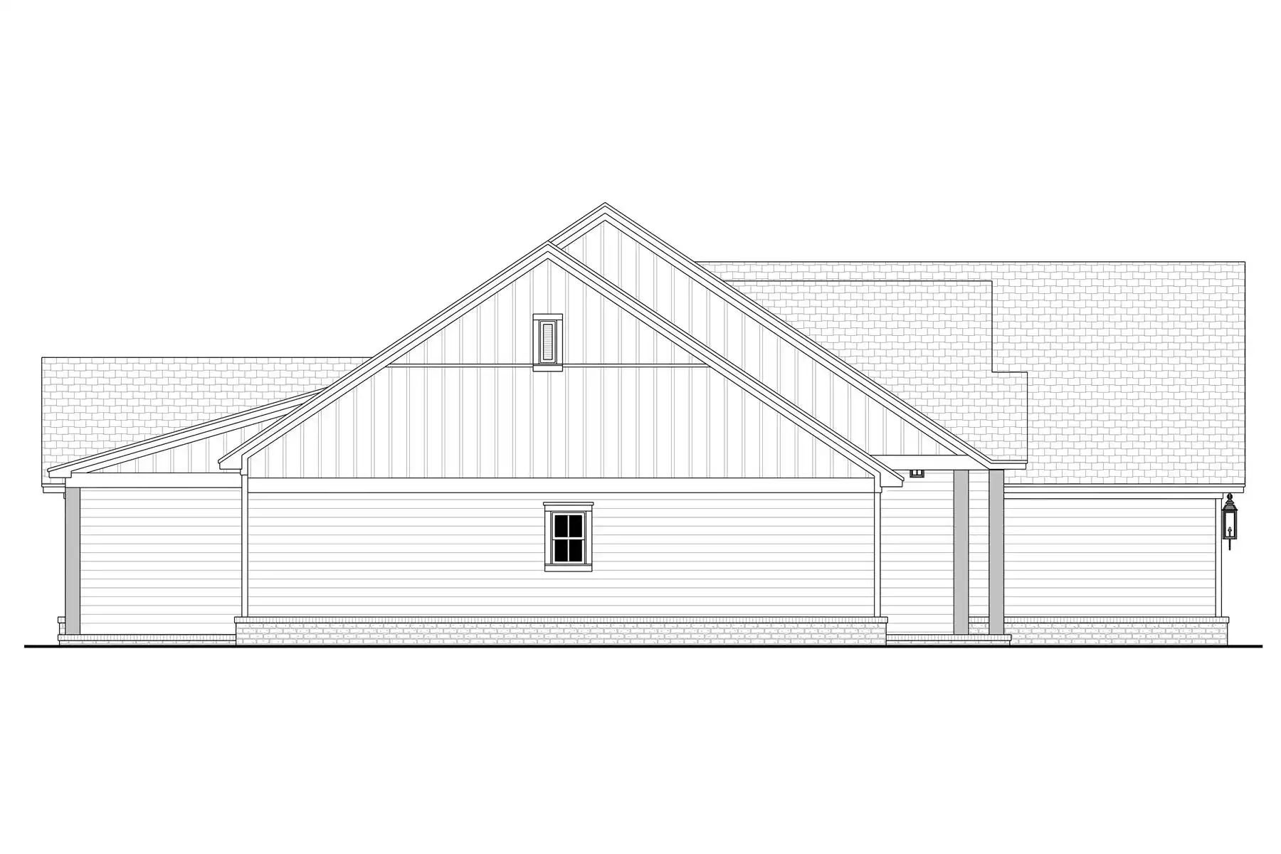 House Plan 10521 showcases a 1,828 sq. ft. contemporary farmhouse designed for both style and efficiency. This single-story home includes 3 bedrooms and 2.5 bathrooms, with a primary suite offering a luxurious bath and walk-in closet. The central living area features a spacious great room with a cozy fireplace that seamlessly connects to the kitchen and dining space, fostering an open and welcoming environment. The kitchen boasts a large island with seating, dual sinks, and a walk-in pantry, adding to its functionality. A dedicated home office near the entrance provides a private space for work or study. The split-bedroom layout ensures privacy, with two additional bedrooms sharing a well-appointed bathroom on the opposite side of the home. Expansive front and rear covered porches extend the living space outdoors, offering perfect spots for relaxation and gatherings. With its contemporary farmhouse aesthetics and thoughtful design, House Plan 10521 is ideal for those seeking a harmonious blend of comfort and functionality.