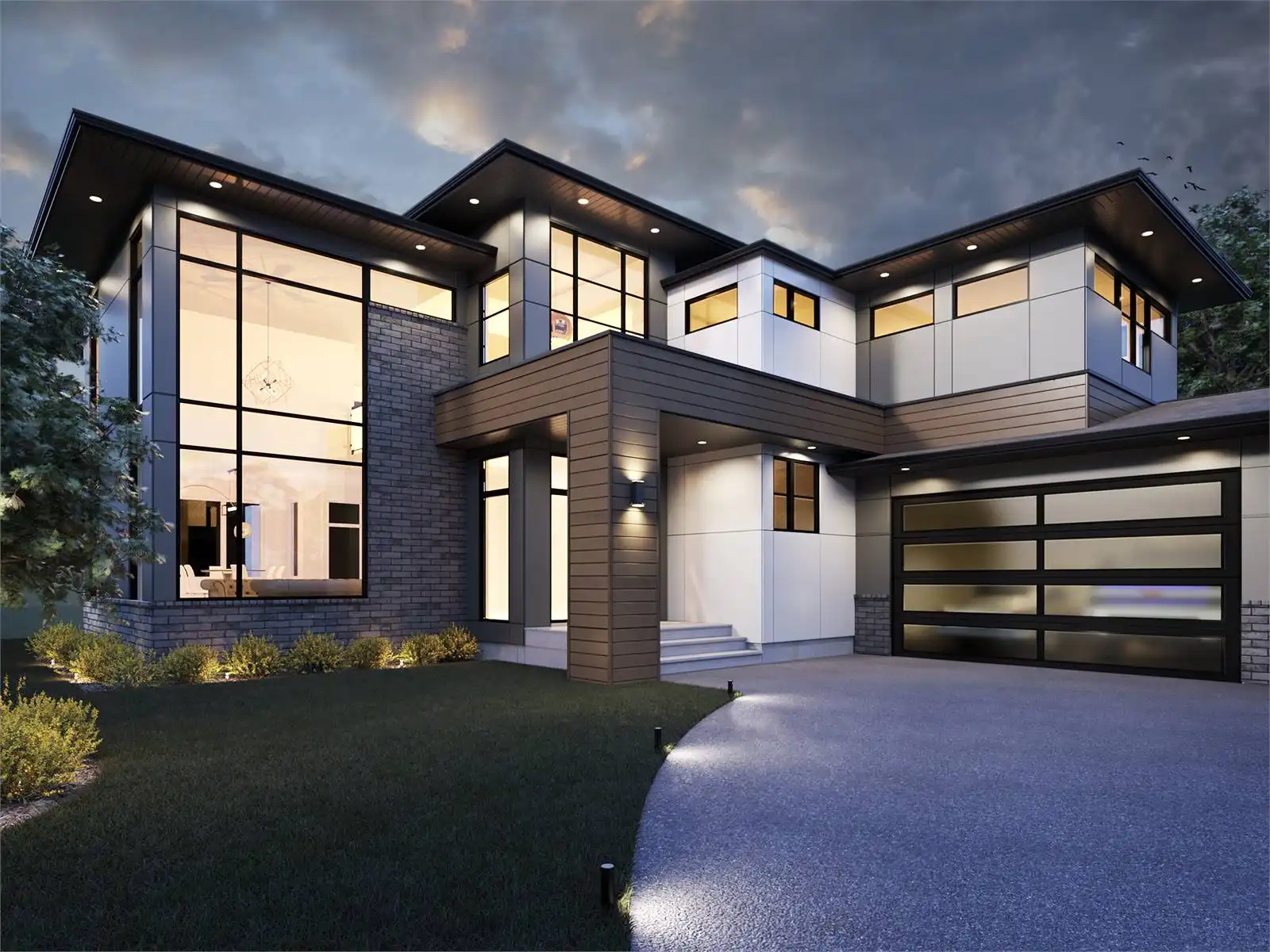 House Plan 10524 is a 2,946 square foot Contemporary design that offers both elegance and adaptability. A 3-car front-facing garage opens to a generous mudroom, complete with a convenient coat closet and stackable laundry unit. The main level boasts an open layout that connects the living room, dining area, and a stylish kitchen featuring an impressive 11-foot island. A quiet den and access to the covered deck make this home ideal for relaxing or entertaining. Upstairs includes three spacious bedrooms, a bonus room, and a full laundry room. The luxurious primary suite is bathed in natural light and offers a 5-piece bath and walk-in closet. Expand your living space by finishing the lower level, gaining 1,210 square feet with two more bedrooms, a game/rec room with wet bar, and extra storage.