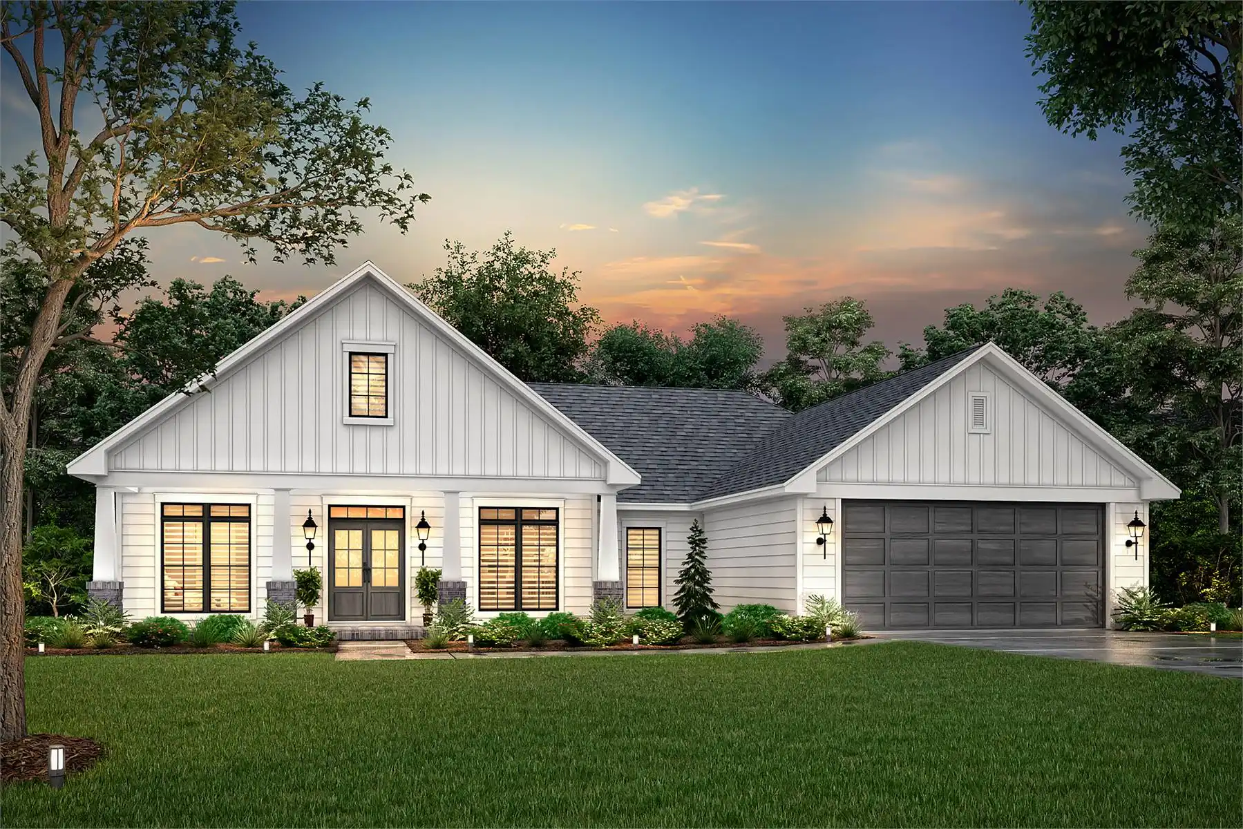 House Plan 10527 offers a smart and inviting 1,834 sq. ft. layout, blending timeless traditional design with thoughtful modern comforts. This single-level home includes 3 bedrooms and 2 bathrooms, with a private primary suite featuring double vanities, a private toilet area, a luxurious jet tub, a separate shower, and a spacious walk-in closet. The heart of the home is the open-concept living space, where the great room with a cozy gas fireplace flows effortlessly into the kitchen and formal dining area—ideal for entertaining and everyday life. The kitchen shines with a large center island, cabinet-style pantry, and plenty of storage space. A split-bedroom layout provides privacy for the secondary bedrooms, which share a full bath tucked on the opposite side of the home. Enjoy the outdoors year-round with covered porches at the front and back, perfect for quiet mornings or evening gatherings. With its balanced layout and classic curb appeal, House Plan 10527 makes a wonderful home for families and empty nesters alike.