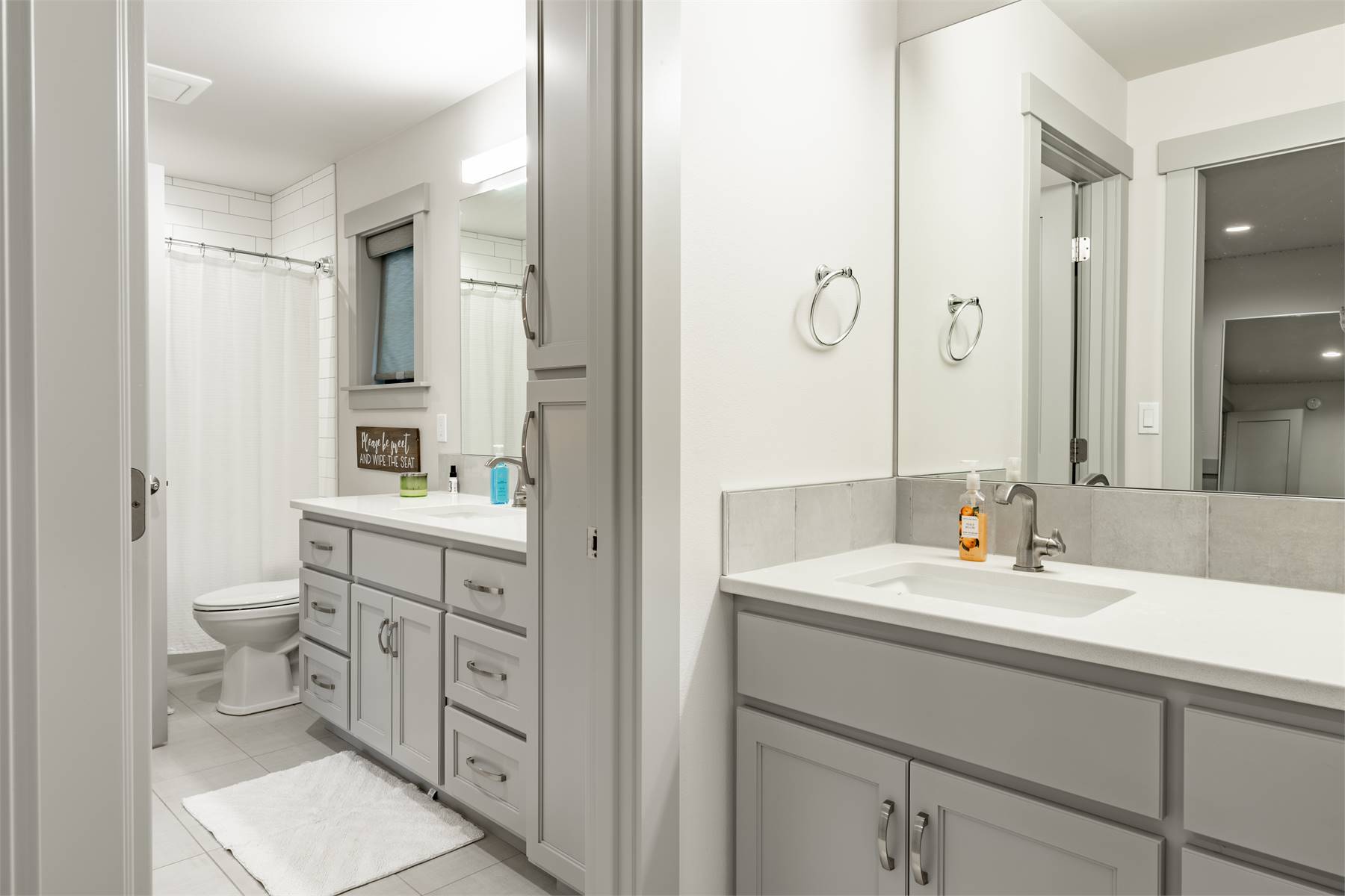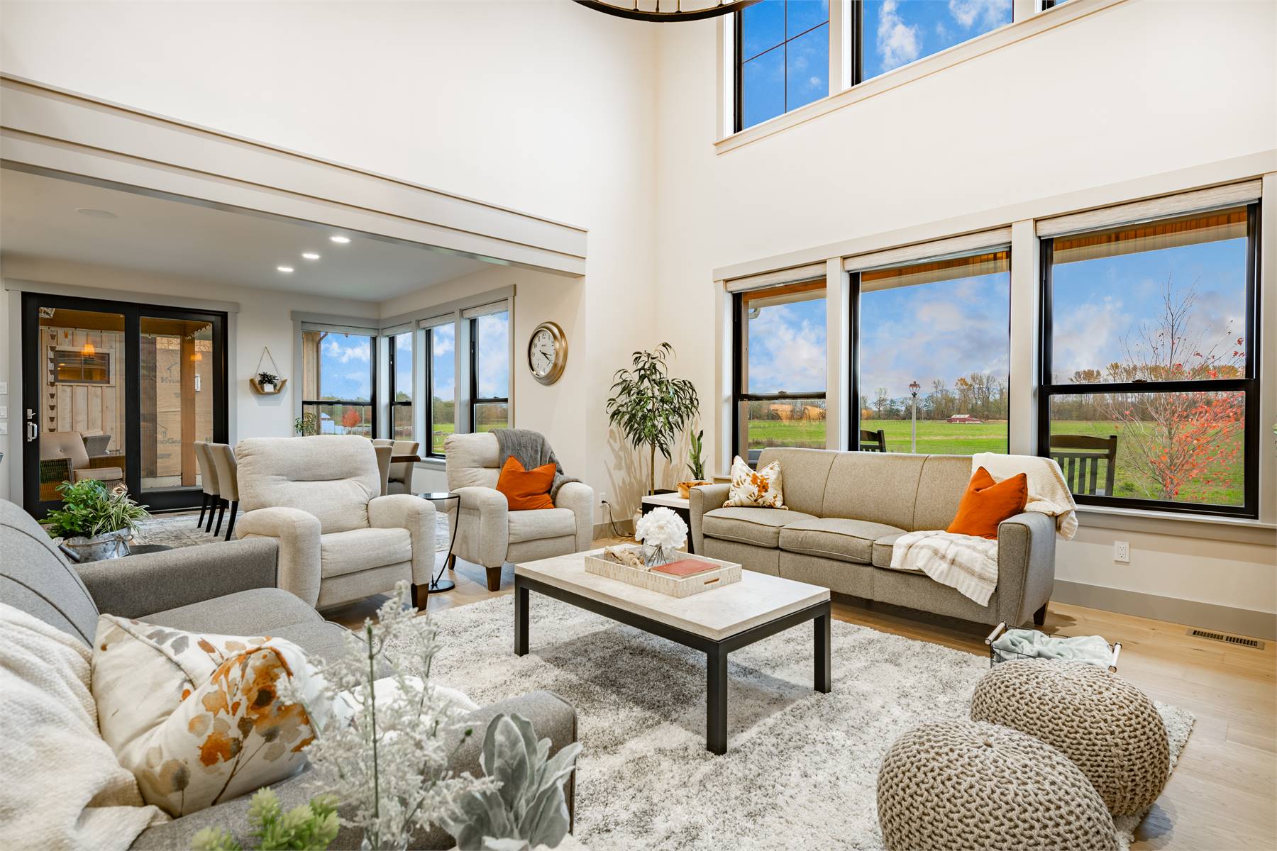 Take a peek inside and you’ll see all the sweet modern farmhouse vibes this 3,275 square foot 2-story story farmhouse plan offers! Plus, you have the option of choosing to enjoy not one, not two, but three separate porches – two of which are covered! The living room, dining space and L-shaped kitchen all enjoy an open living area. Just behind the kitchen is the laundry, mudroom and casual family room with access to the second covered porch. The first floor plan also features the master suite, which is complete with double bowl vanity and walk-in closet. A powder room down the hall from the front door is conveniently located next to the home office and third porch. The second floor features three bedrooms and one full bath.
