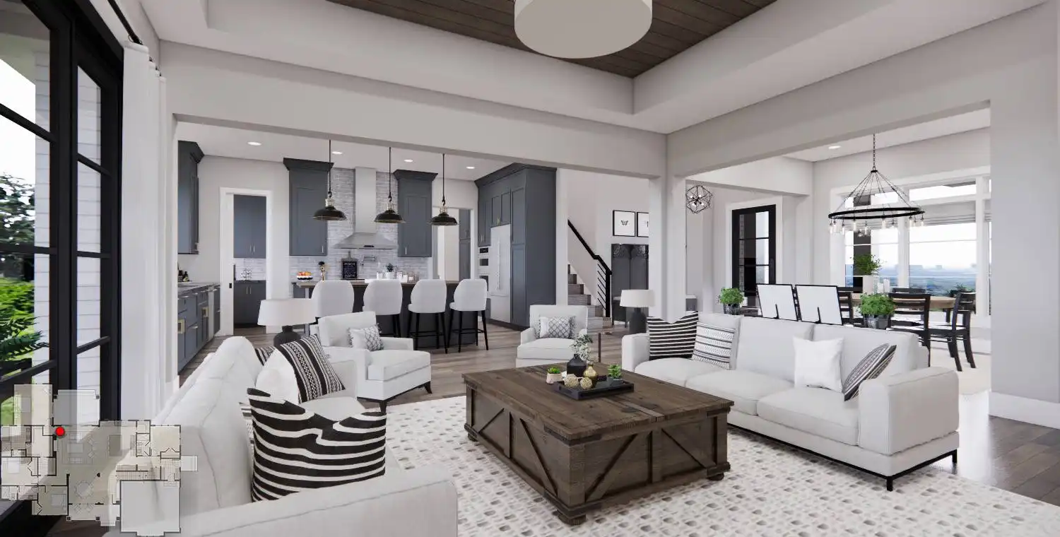 House Plan 10556 showcases a 2,336 sq. ft. modern farmhouse designed for both style and efficiency. This single-story residence includes 3 bedrooms and 2.5 bathrooms, with a private primary suite offering a luxurious bathroom and spacious walk-in closet. The central living area features a generous great room with a cozy fireplace, seamlessly connecting to the dining space and kitchen, fostering an open and welcoming environment. The kitchen boasts a large island and a walk-in pantry, enhancing its functionality. A main-floor flex room provides versatility for various needs such as a home office or playroom. A bonus room above the garage offers additional space for a guest suite, media room, or hobby area. With its farmhouse charm and thoughtful design, House Plan 10556 is ideal for those seeking a harmonious blend of comfort and functionality.