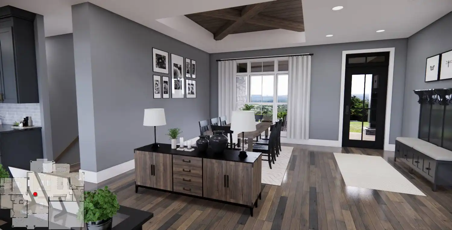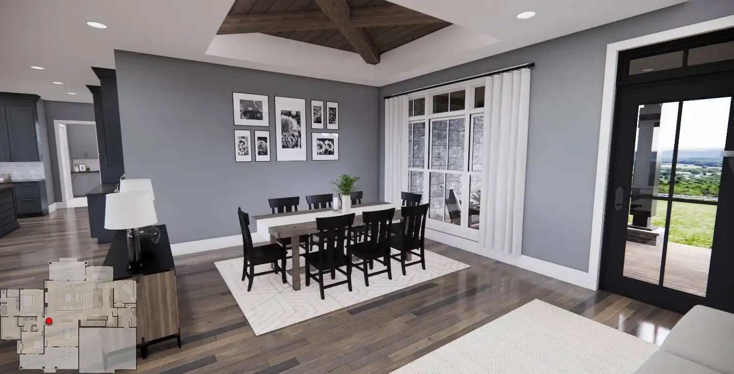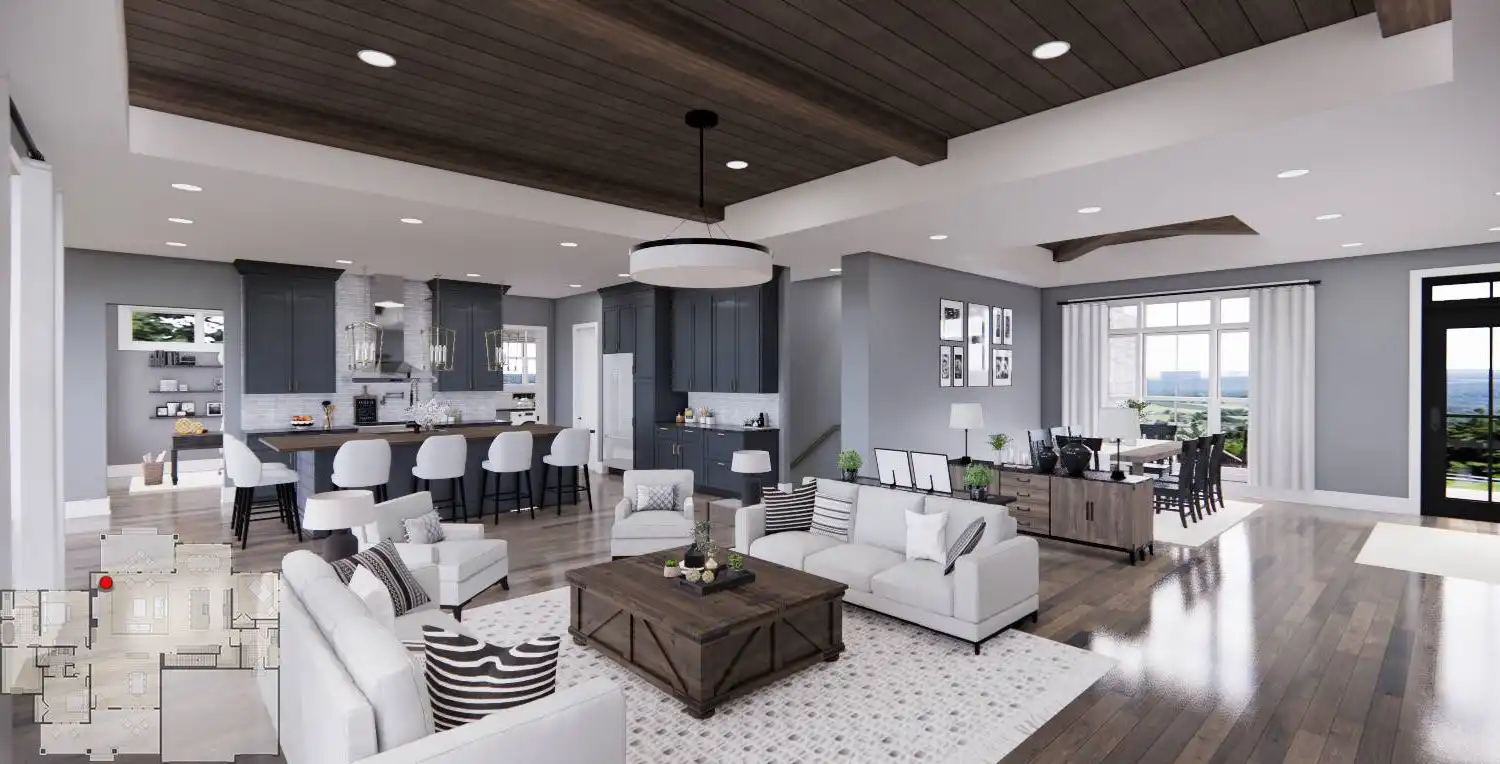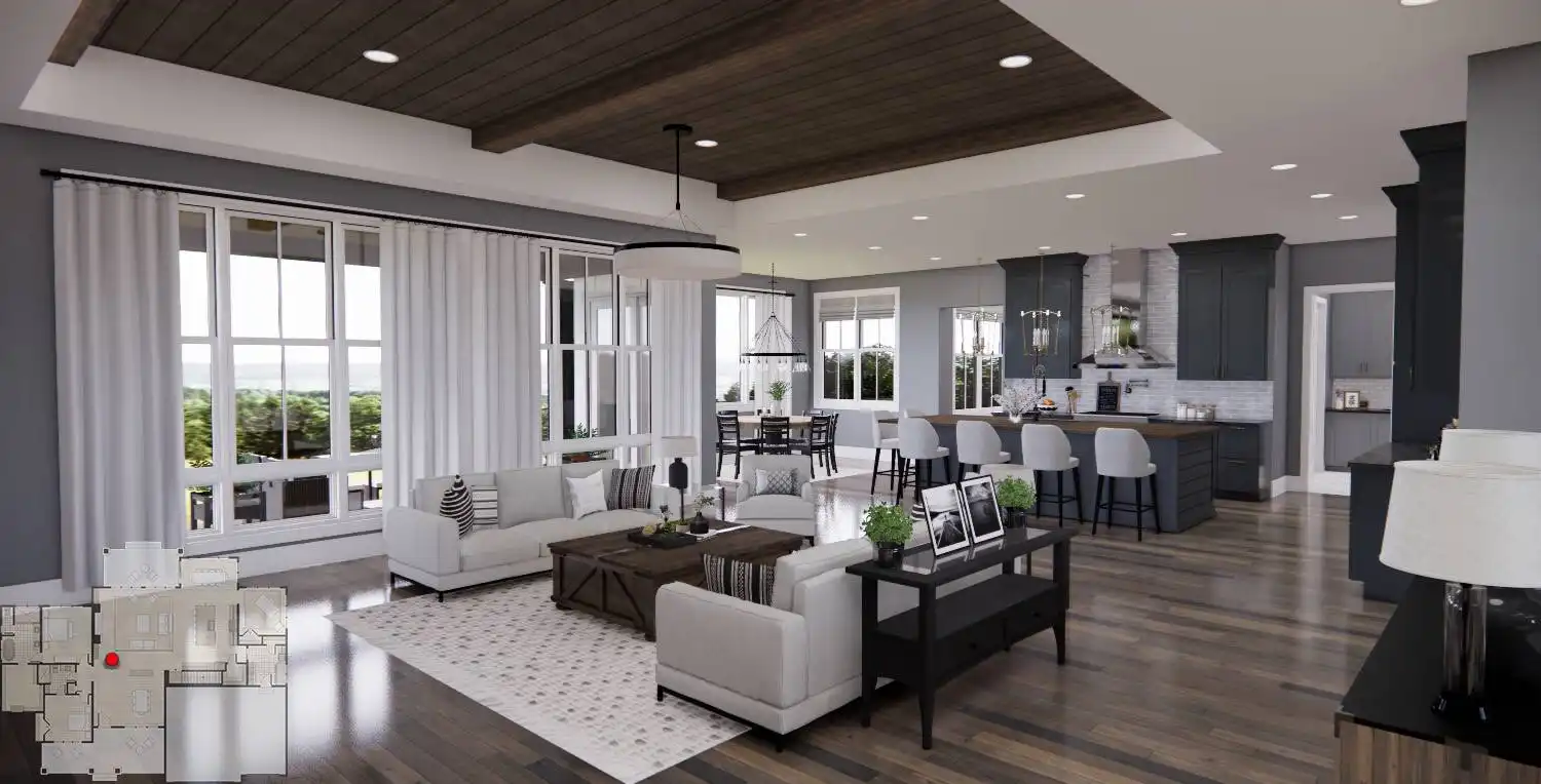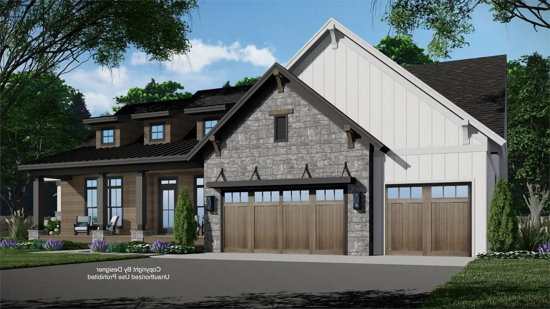 Welcome to House Plan 10544, a beautifully crafted Country-style home that combines rustic charm with modern functionality. Spanning 2,600 square feet, this design features 2 bedrooms, 2 bathrooms, and a 3-car garage. The open-concept layout is filled with natural light, showcasing an impressive kitchen with a massive island that seats seven and a walk-in pantry conveniently located near the garage entry. The great room centers around a cozy fireplace with built-ins and flows seamlessly into the dining area, which opens to a spacious rear porch—ideal for outdoor living. The main-floor master suite offers a serene retreat with a spa-like bath and generous walk-in closets. Additional highlights include a rear corner office, mudroom with storage, laundry area, and expansive covered front and rear porches perfect for enjoying scenic views.