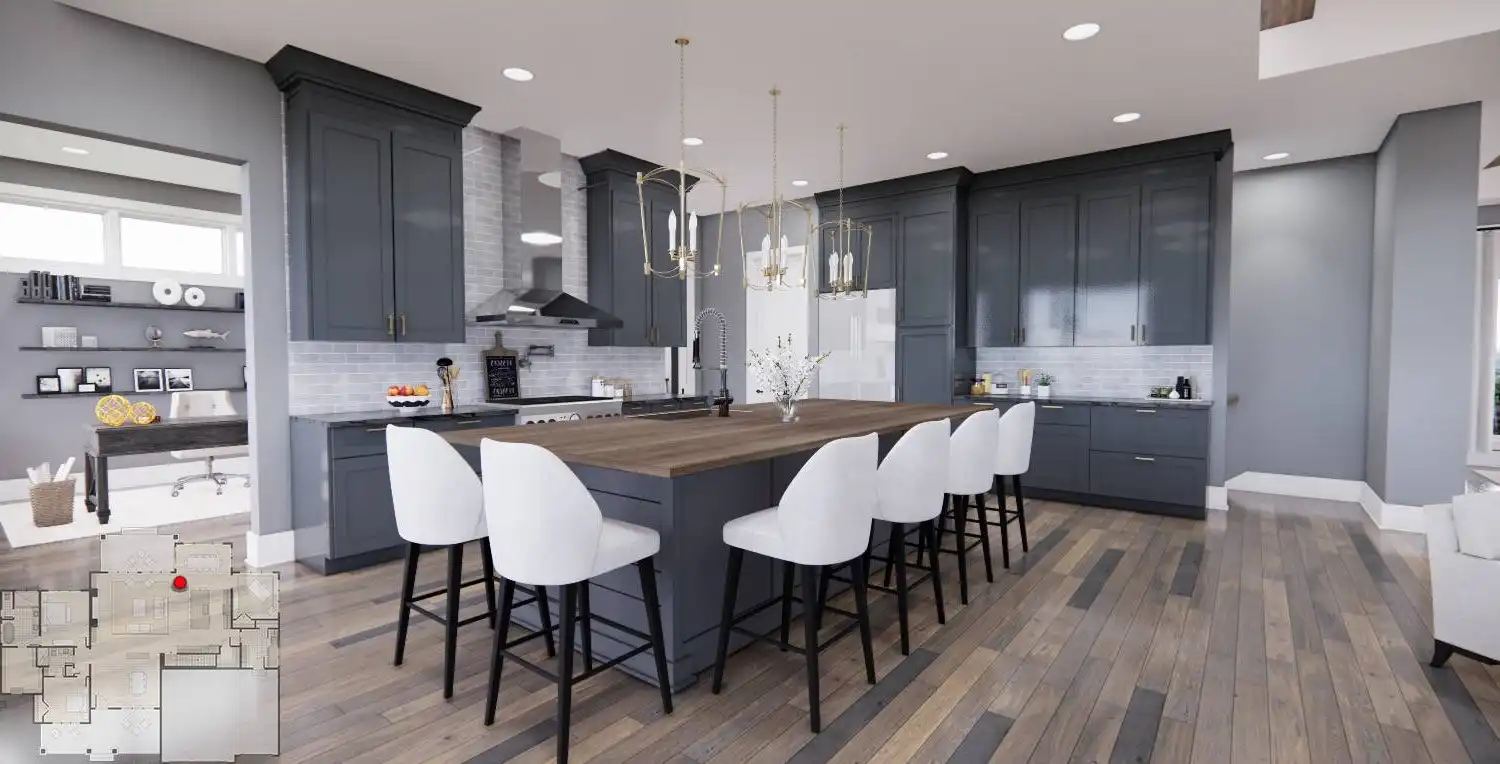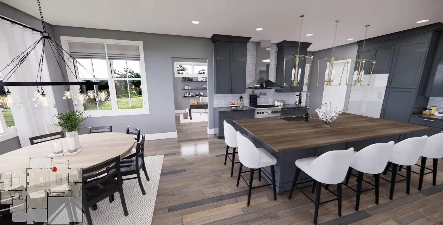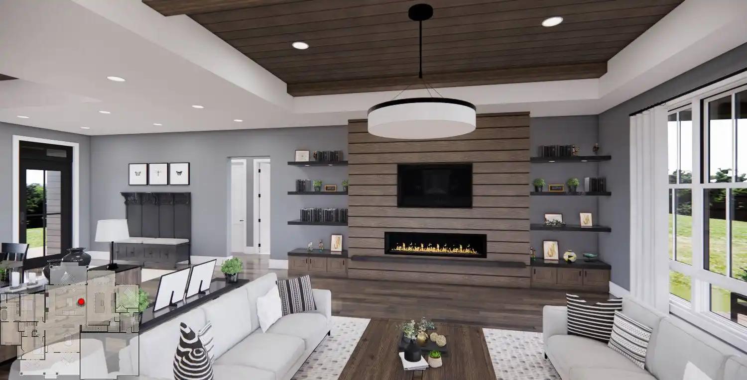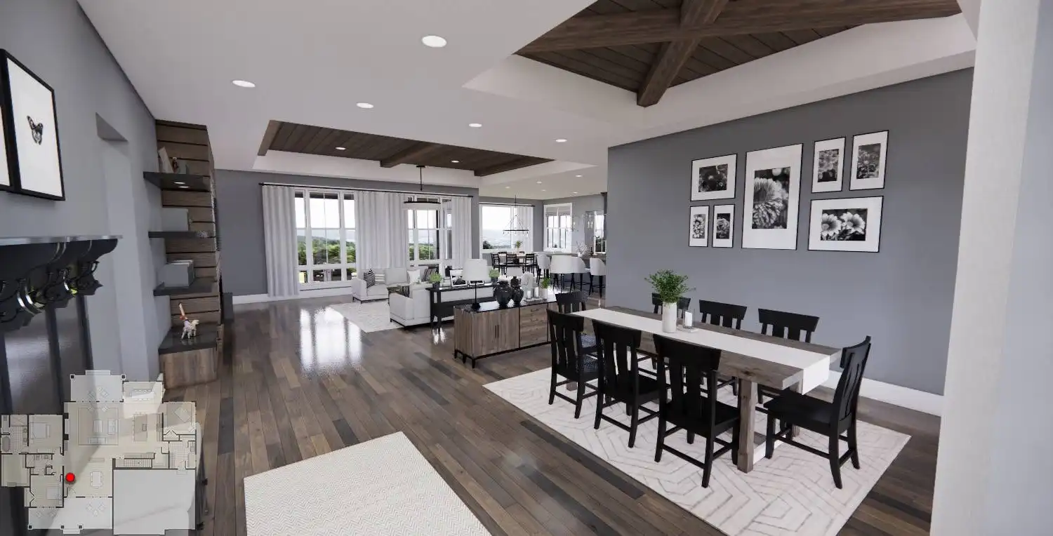 Welcome to House Plan 10544, a beautifully crafted Country-style home that combines rustic charm with modern functionality. Spanning 2,600 square feet, this design features 2 bedrooms, 2 bathrooms, and a 3-car garage. The open-concept layout is filled with natural light, showcasing an impressive kitchen with a massive island that seats seven and a walk-in pantry conveniently located near the garage entry. The great room centers around a cozy fireplace with built-ins and flows seamlessly into the dining area, which opens to a spacious rear porch—ideal for outdoor living. The main-floor master suite offers a serene retreat with a spa-like bath and generous walk-in closets. Additional highlights include a rear corner office, mudroom with storage, laundry area, and expansive covered front and rear porches perfect for enjoying scenic views.