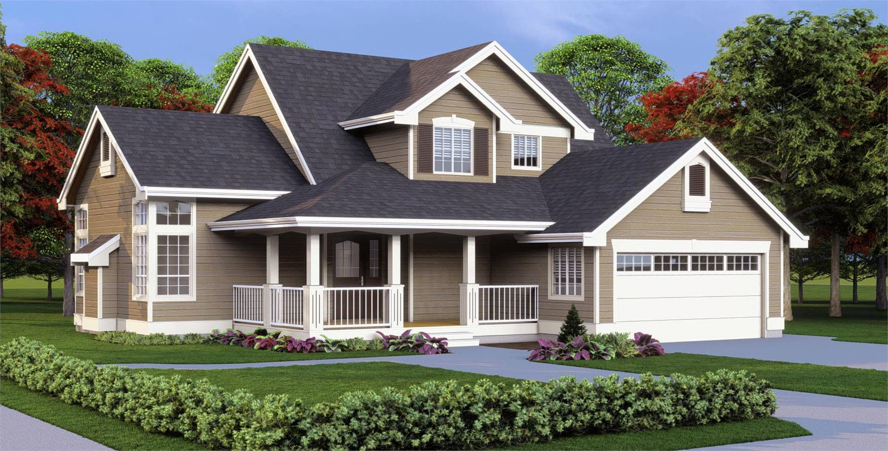 House Plan 10561 is a cozy farmhouse-style home with 1,735 square feet of family-friendly living. A charming wraparound front porch welcomes you inside, where the main floor features a vaulted great room with a fireplace, a separate dining room, and a spacious kitchen with a central island and plenty of counter space. The main-floor primary suite includes a large walk-in closet, ensuite bath, and laundry access. Upstairs, three more bedrooms and a full bath offer space for kids or guests. With 4 bedrooms, 2.5 baths, and a 2-car garage, this 1.5-story design blends comfort and classic farmhouse charm.