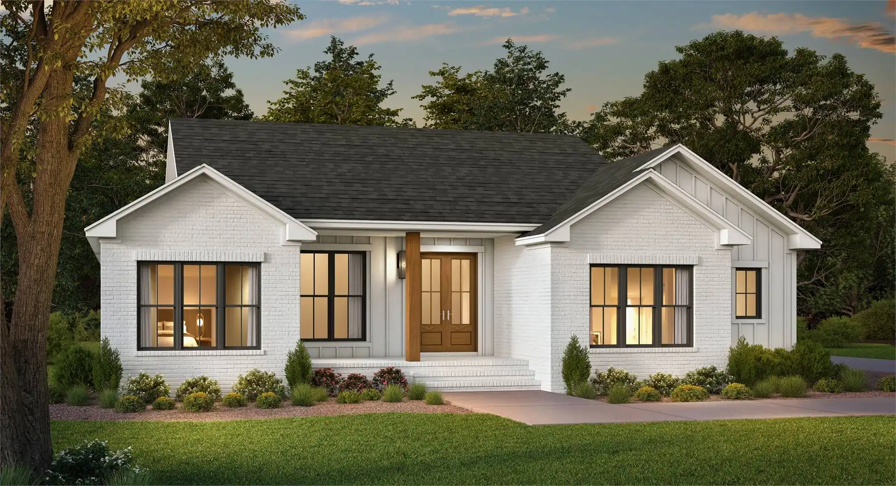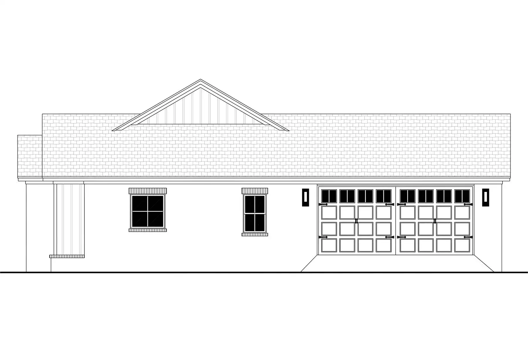 House Plan 10563 brings cozy farmhouse character to a streamlined 1,597 sq. ft. layout, perfect for modern homeowners who love timeless design with practical touches. This one-story plan features 3 bedrooms and 2.5 bathrooms, thoughtfully arranged with a split-bedroom layout that keeps the private primary suite separate—complete with a spa-style bath, freestanding tub, and walk-in closet. The heart of the home is a vaulted great room with charming ceiling beams, flowing into a bright kitchen and dining area that make everyday living and hosting feel effortless. A large kitchen island and walk-in pantry add function and flair. Secondary bedrooms share a full bath across the home, offering privacy and quiet. You’ll also find smart extras like a mudroom locker drop zone, a well-appointed utility room, and an oversized 2-car garage with space for a small workshop or storage. House Plan 10563 offers comfort, charm, and livability in a right-sized footprint.