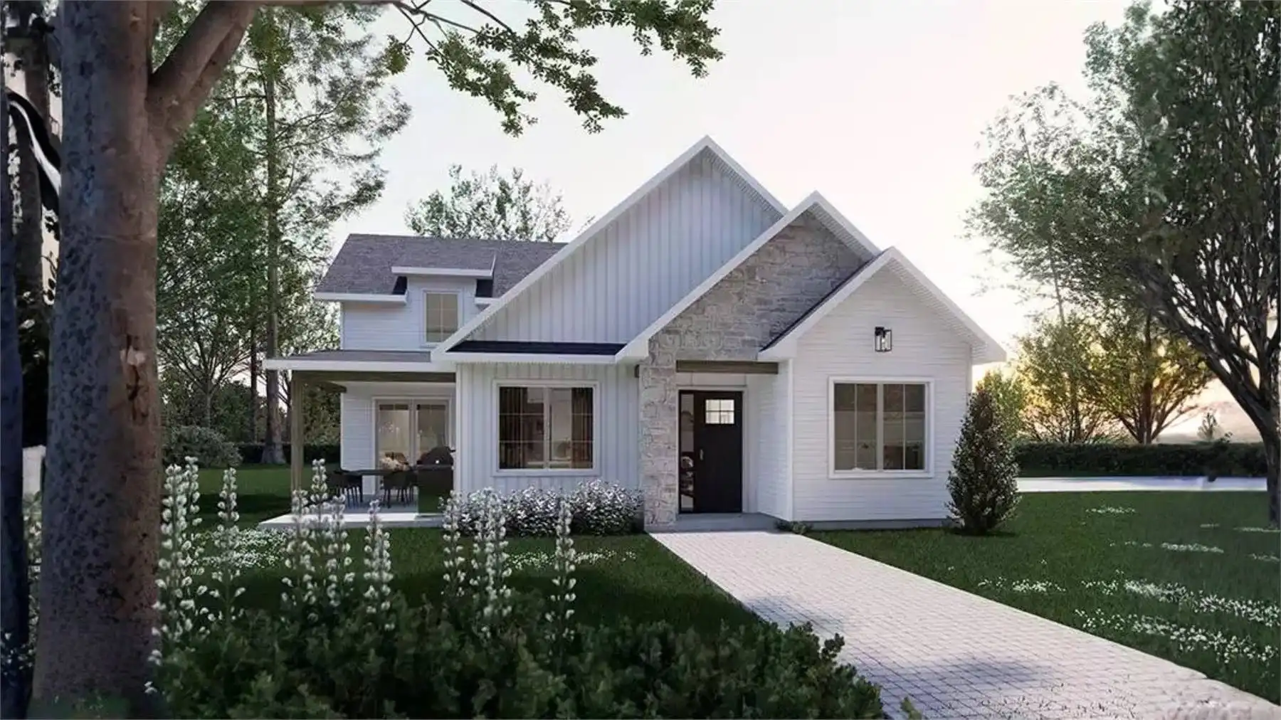 Designed with efficiency in mind, this home features 650 square feet of heated space with 1 bedroom and an open, easy-flowing layout. The family room and dining area are seamlessly connected, making the most of the home’s compact footprint. A kitchen island anchors the kitchen and adds practical workspace. The main-floor primary bedroom offers comfort and convenience for daily living. A bonus room allows for added versatility, whether used for storage or personal projects. First-floor laundry enhances functionality without interrupting the living areas. With a covered front porch and a rear-entry garage that includes workshop space, this home blends practicality with everyday comfort in a thoughtfully designed layout.